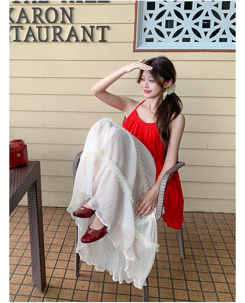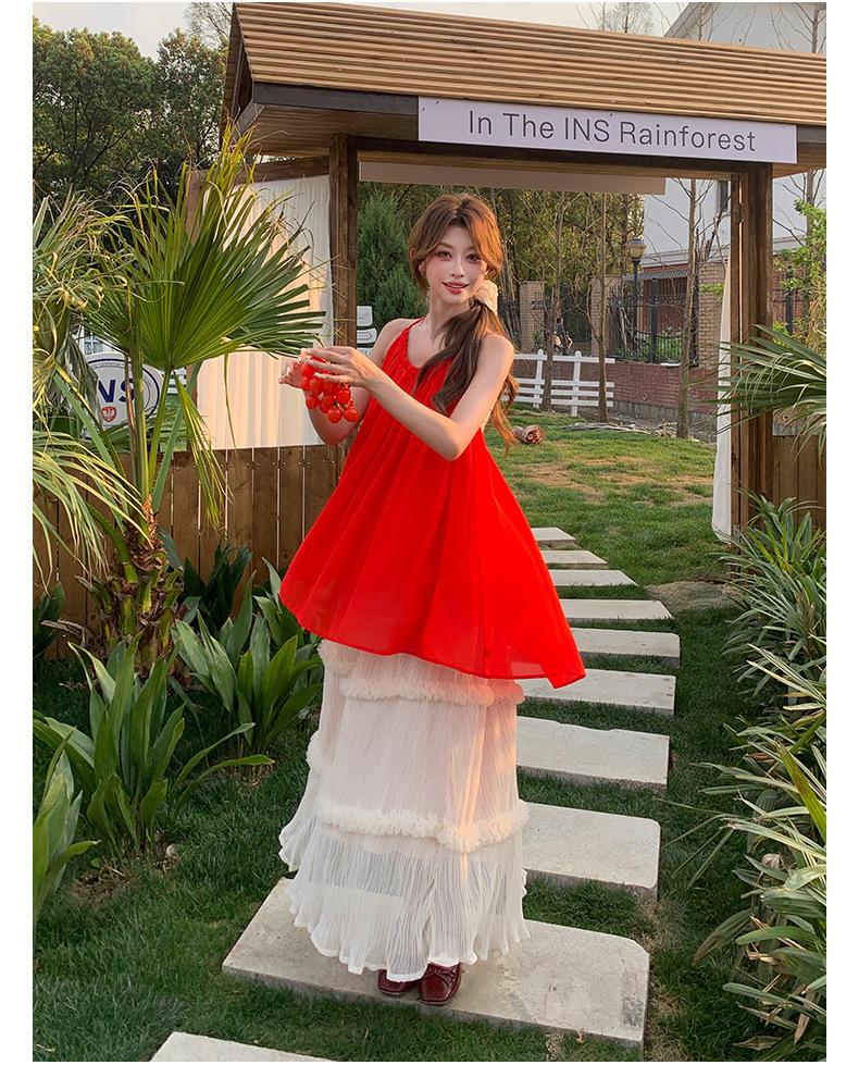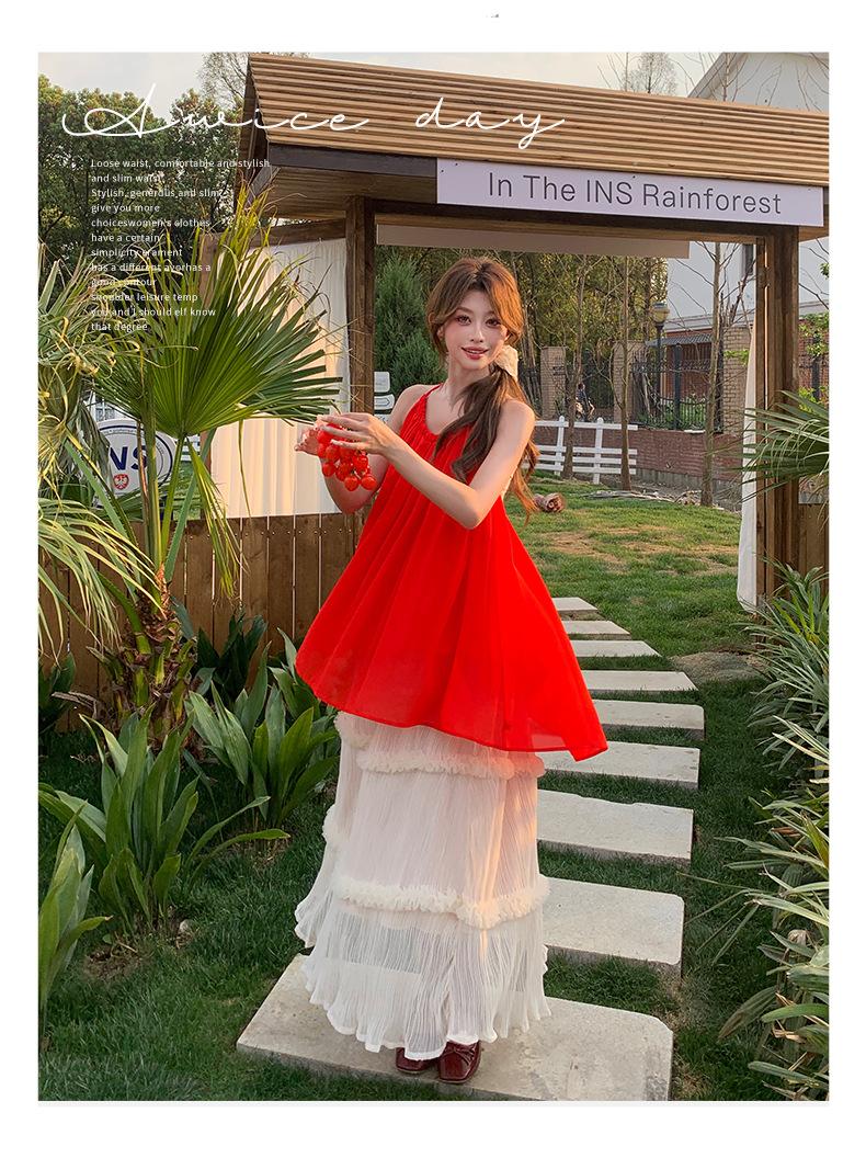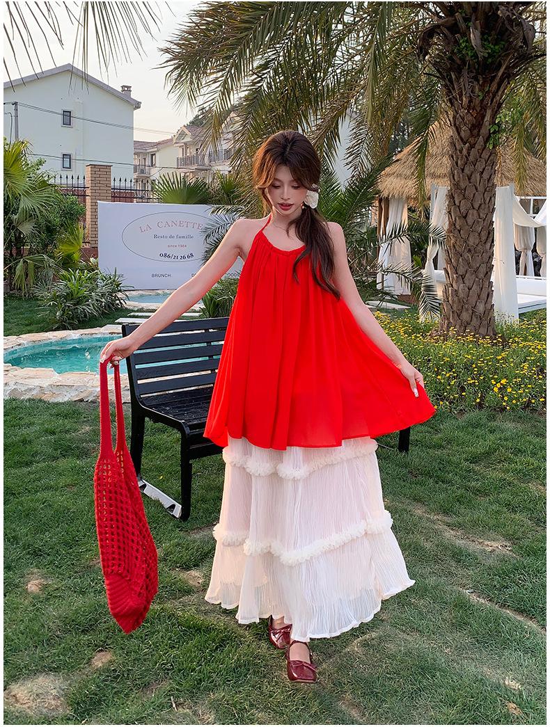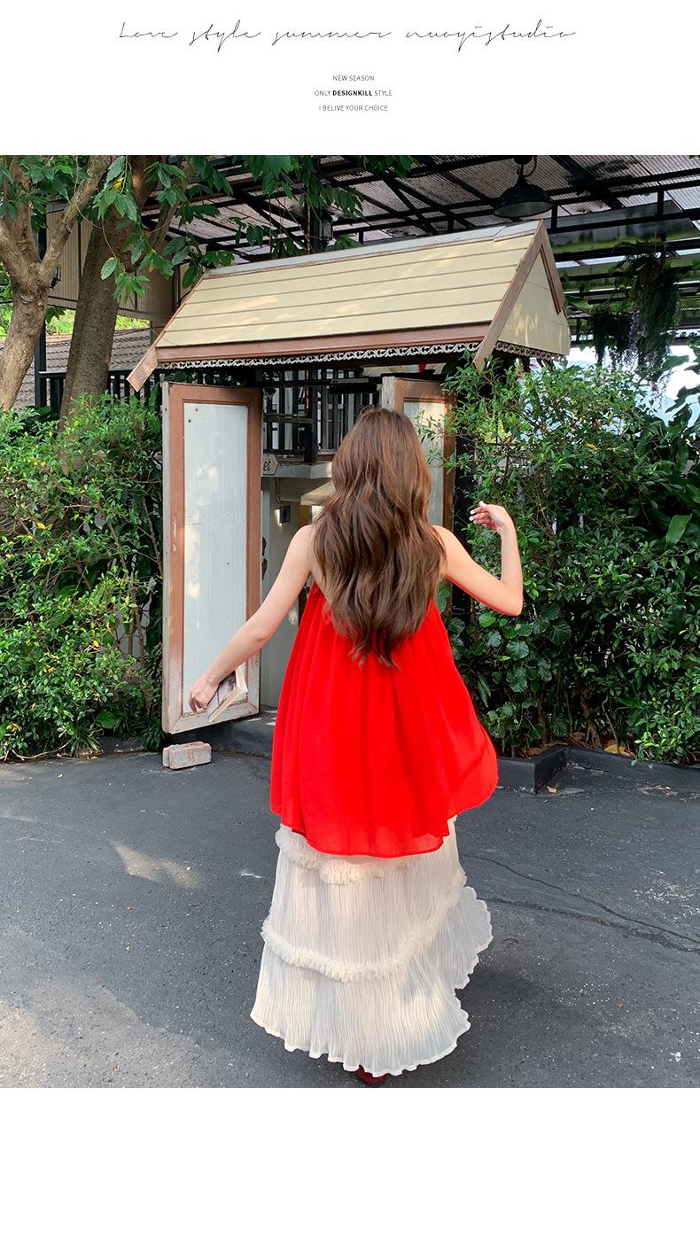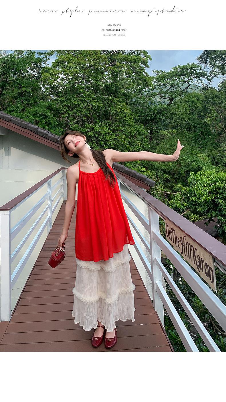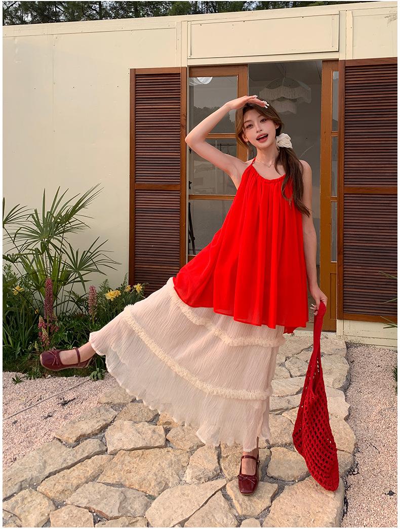 2025 Nueva Moda de Verano Versátil Casual Reductor de Edad Cómodo Tirantes + Falda Estilo Vacacional Traje de Color Contrastante