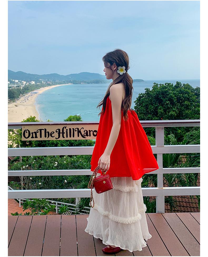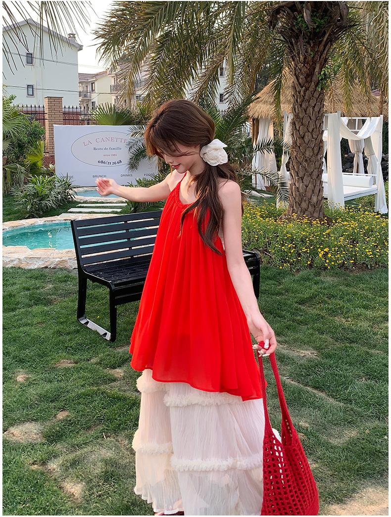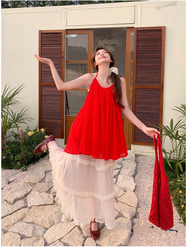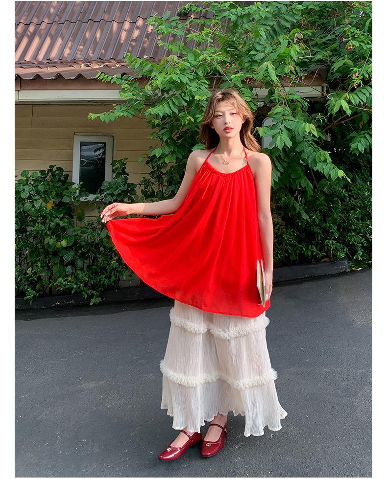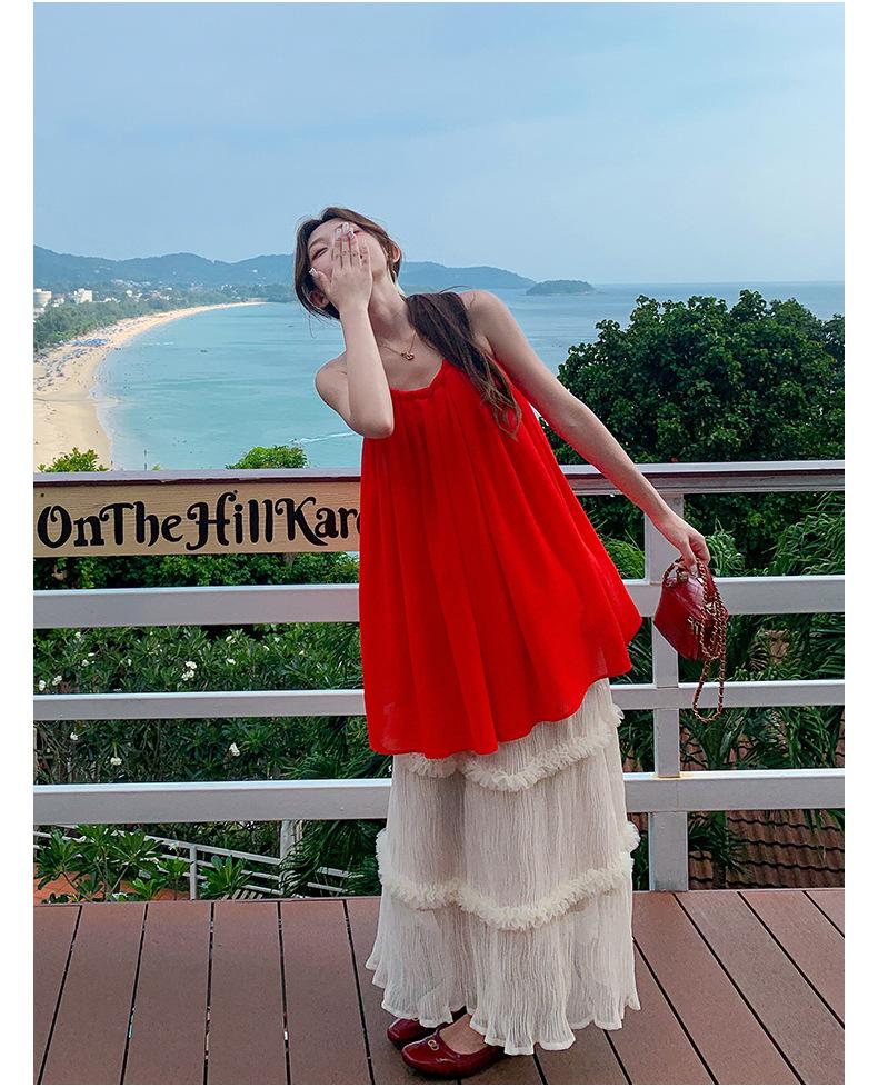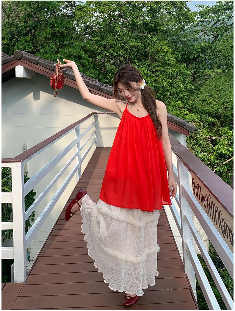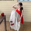 2025 Nueva Moda de Verano Versátil Casual Reductor de Edad Cómodo Tirantes + Falda Estilo Vacacional Traje de Color Contrastante