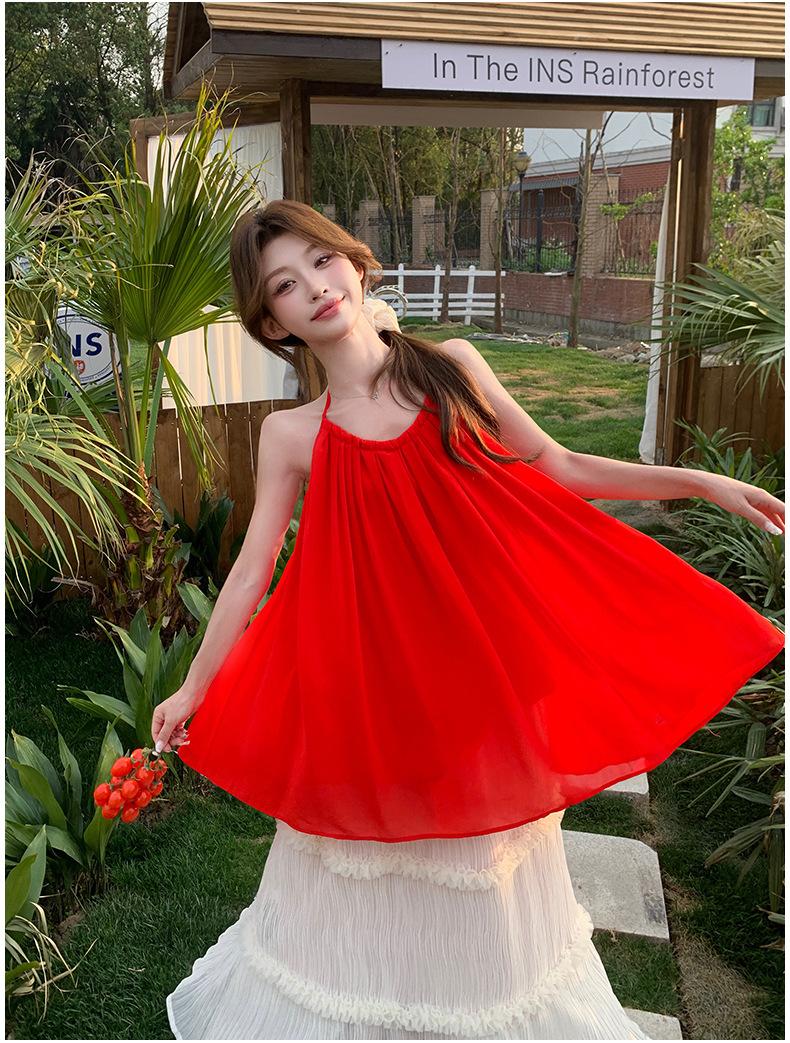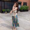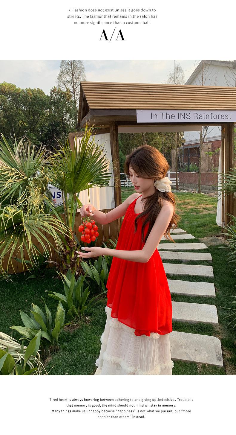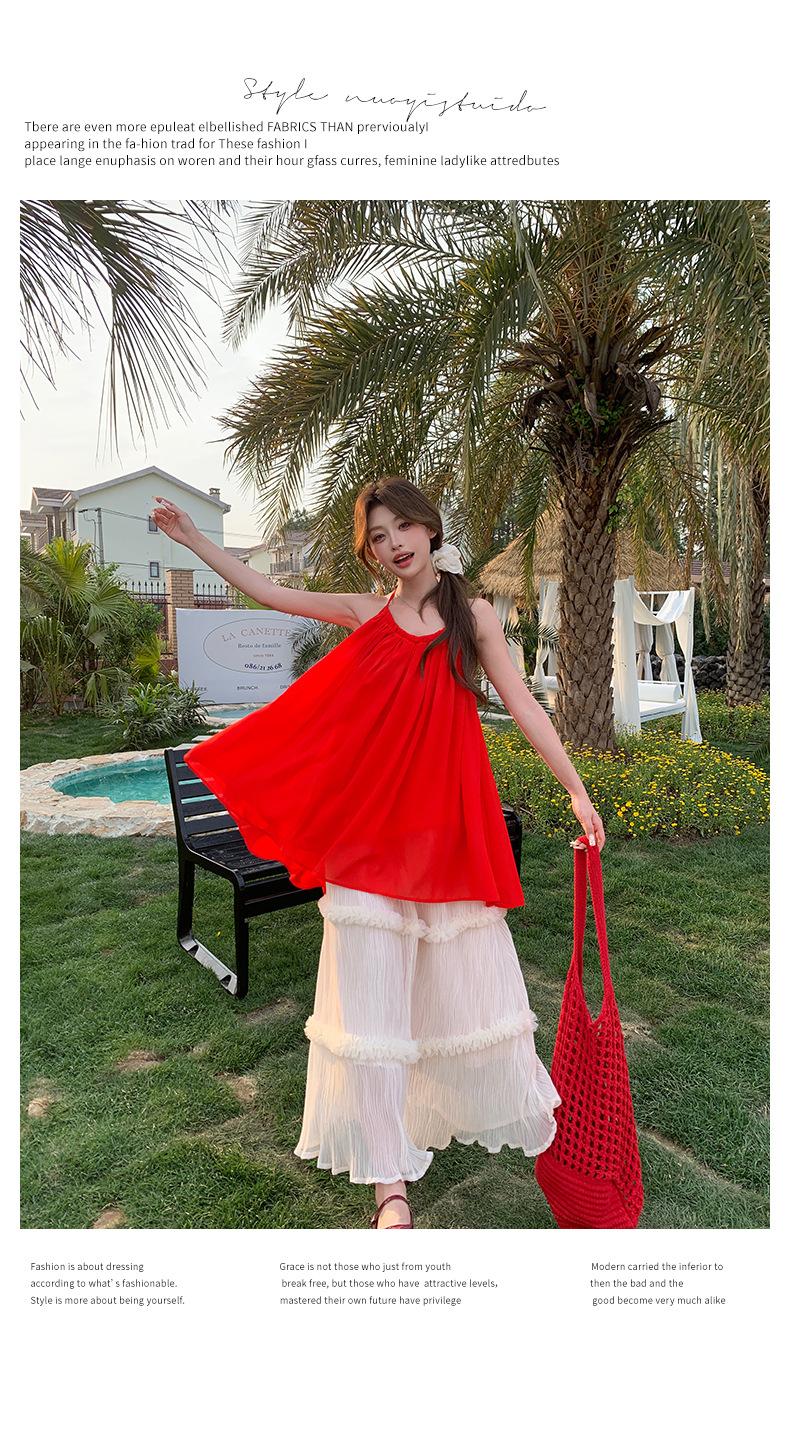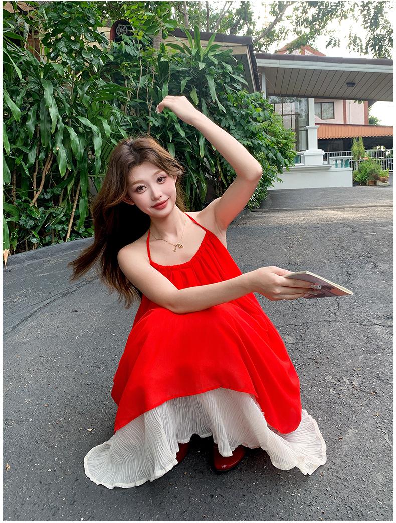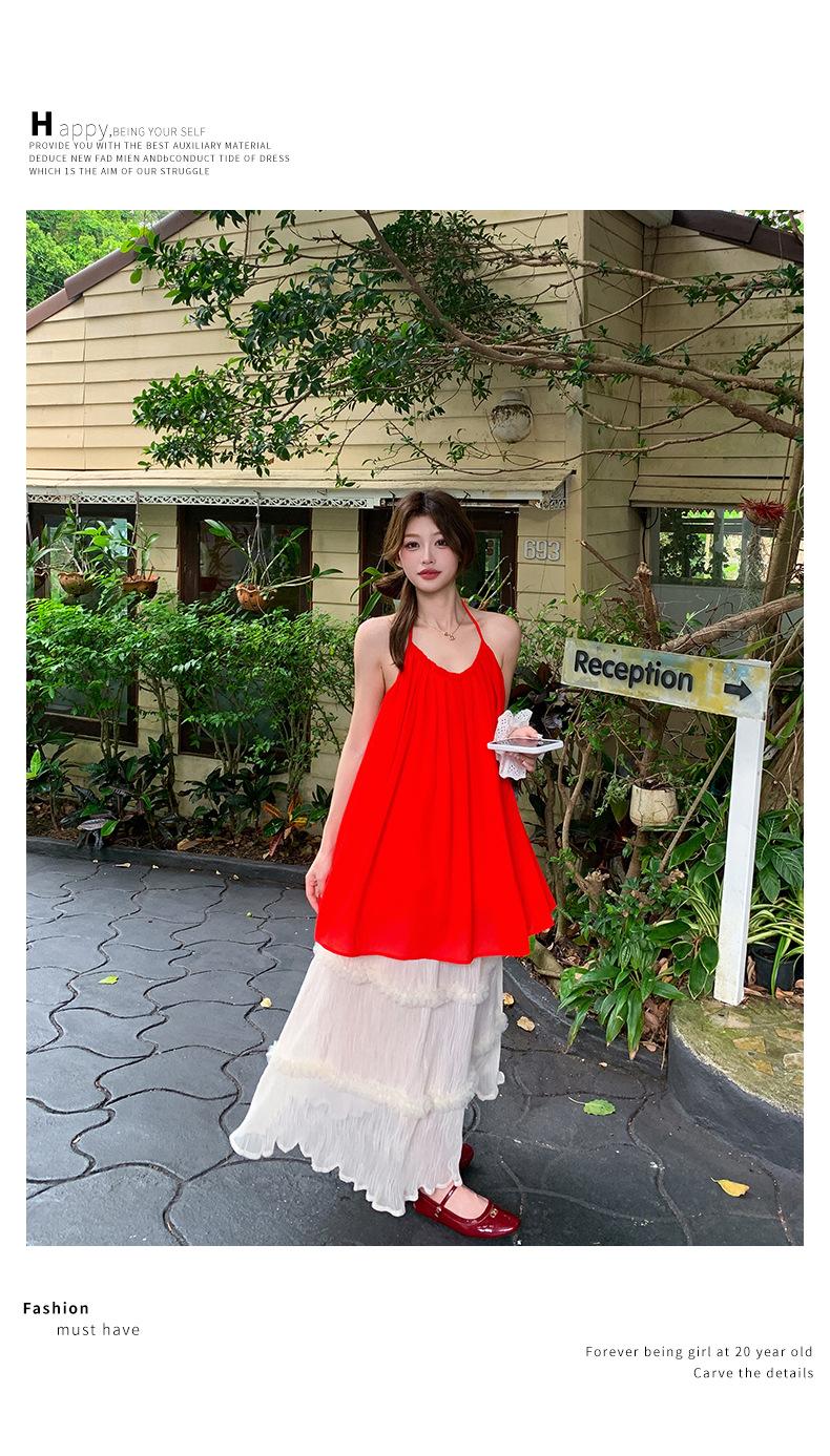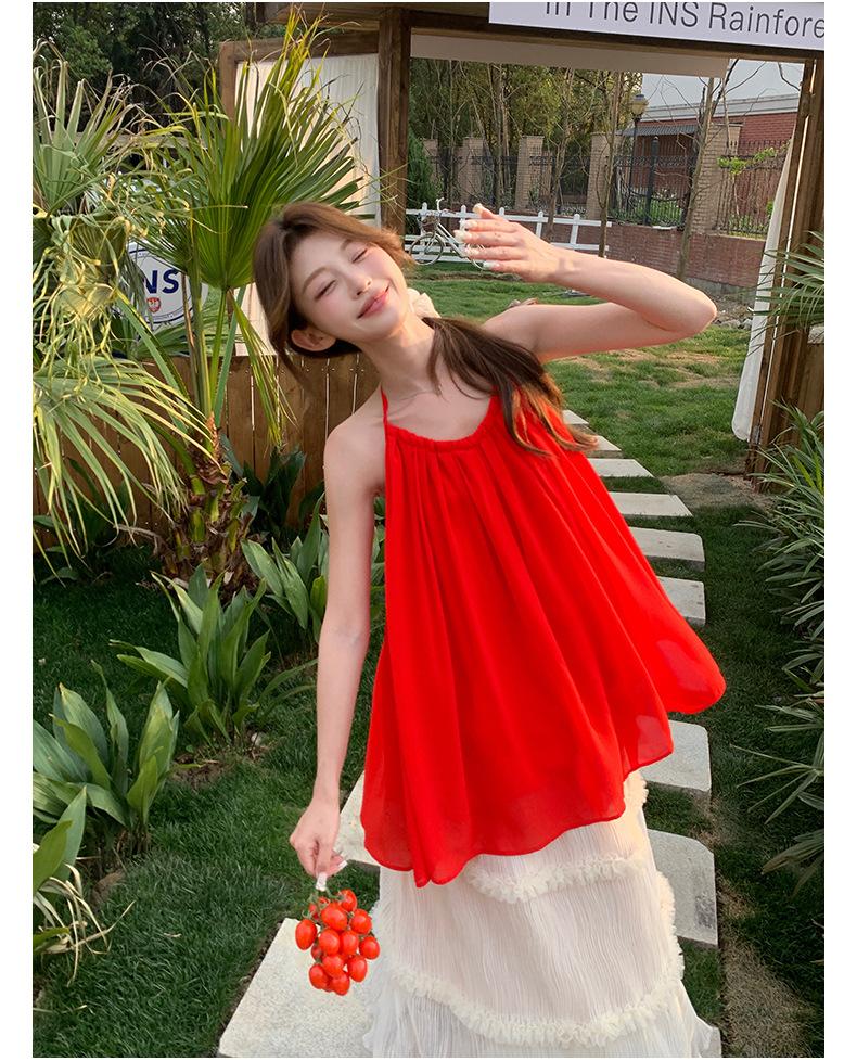 2025 Nueva Moda de Verano Versátil Casual Reductor de Edad Cómodo Tirantes + Falda Estilo Vacacional Traje de Color Contrastante