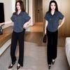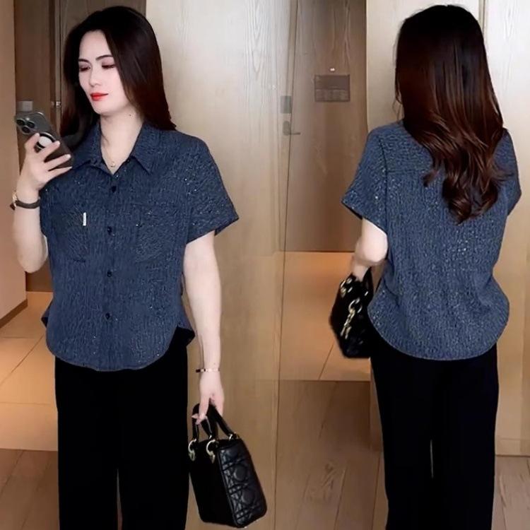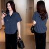 Camisa de Moda para Mujer 2025 Verano Nueva Llegada Estilo Occidental Corte Holgado Slim Pequeña Casual Versátil Manga Corta Camisa Top