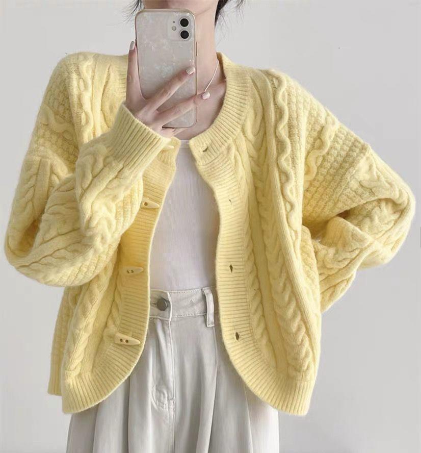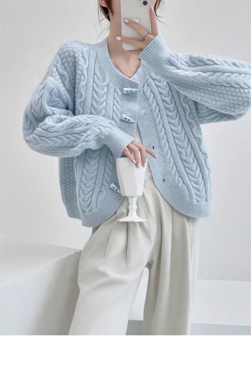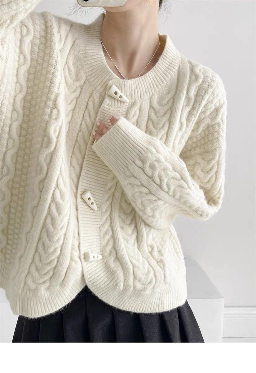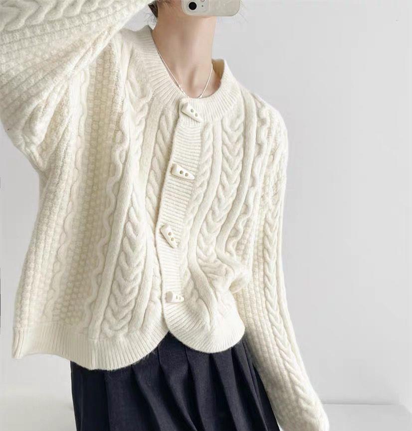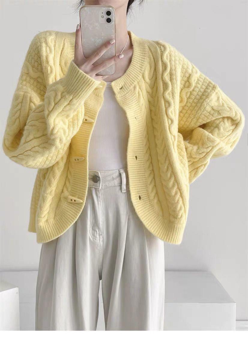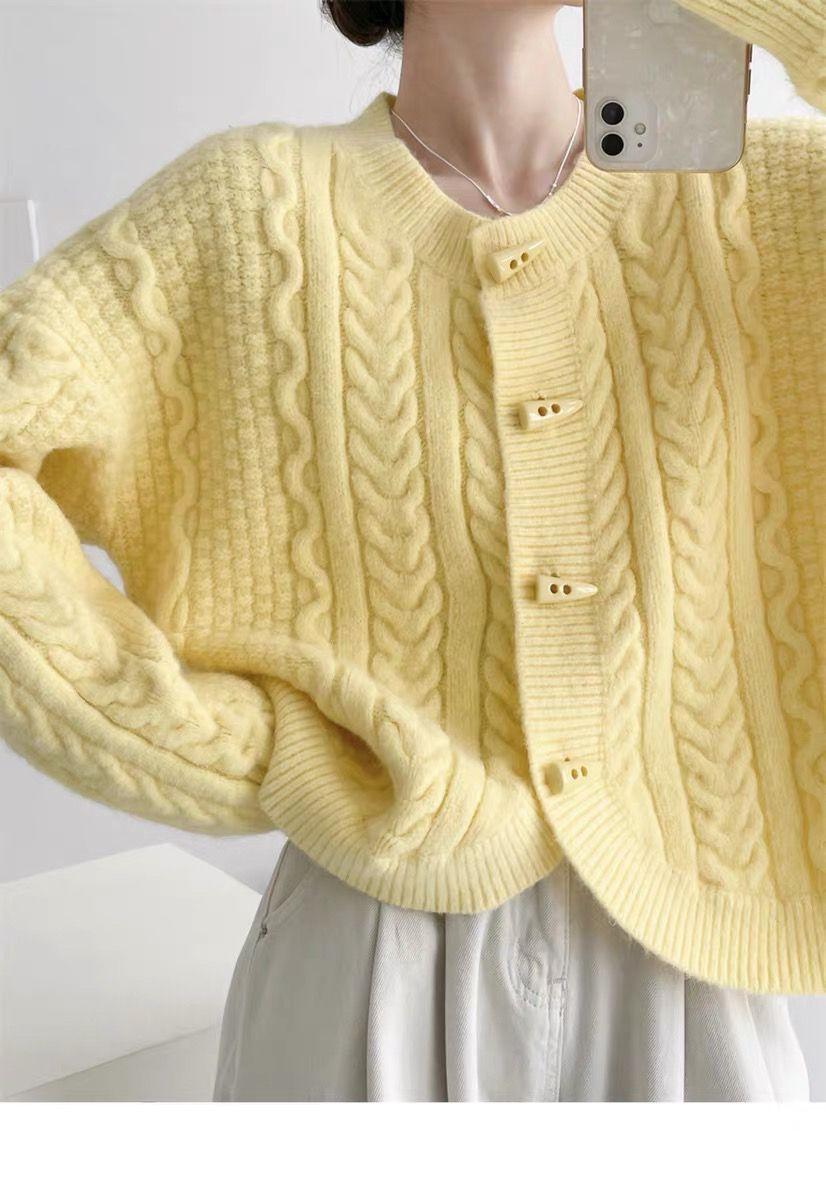 Cárdigan de Punto con Botones de Cuerno Estilo Otoño 2025 Comercio Exterior Nuevo Estilo Versátil Cuello Redondo Manga Larga