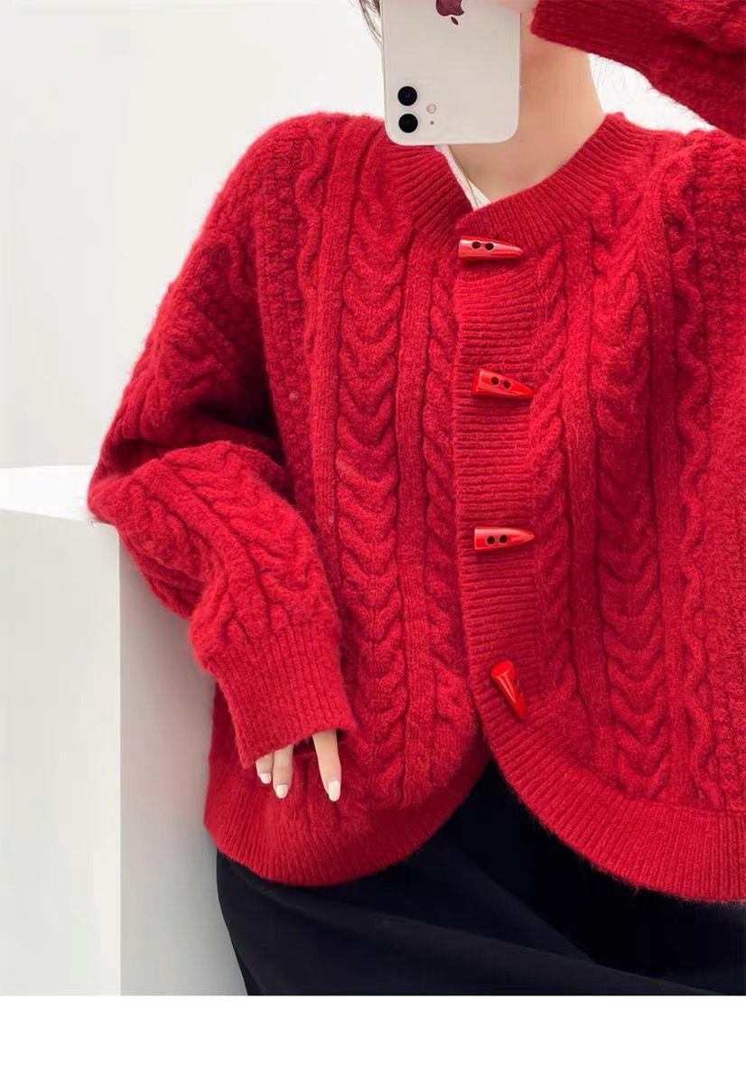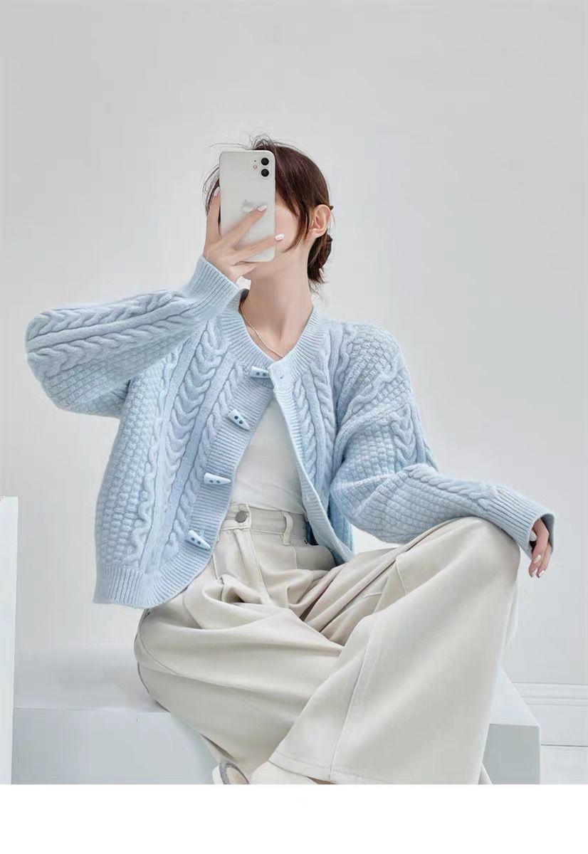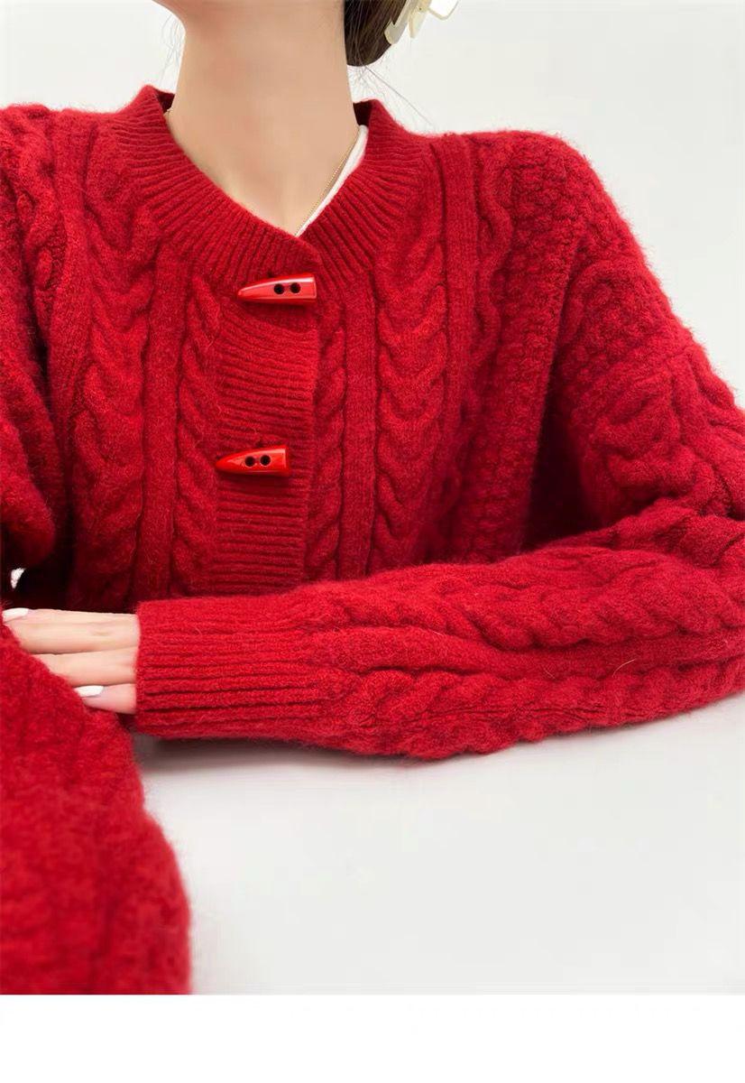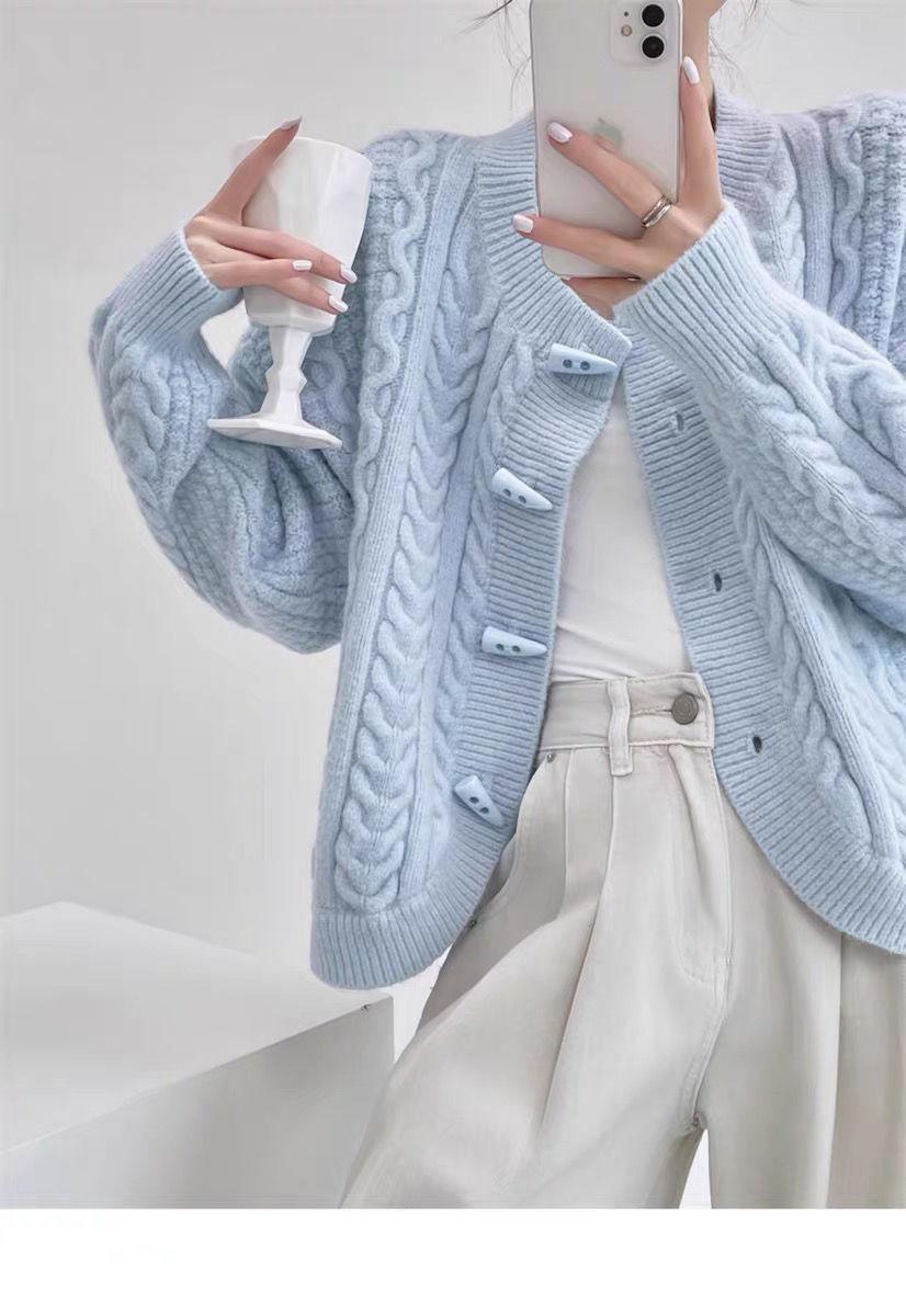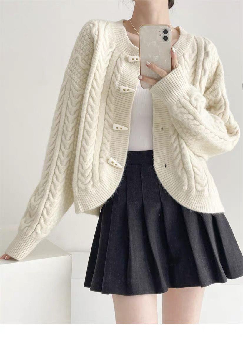 Cárdigan de Punto con Botones de Cuerno Estilo Otoño 2025 Comercio Exterior Nuevo Estilo Versátil Cuello Redondo Manga Larga