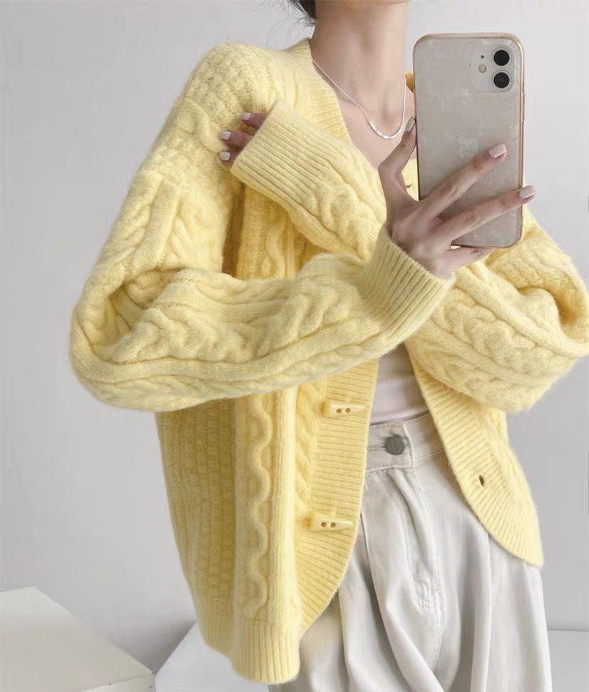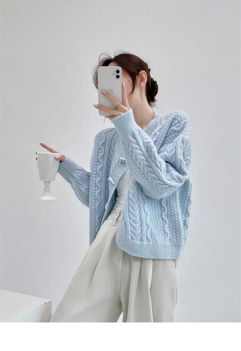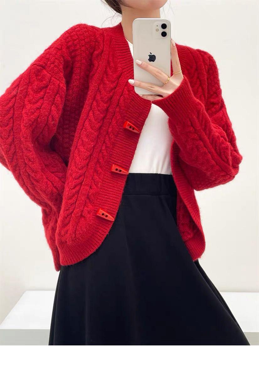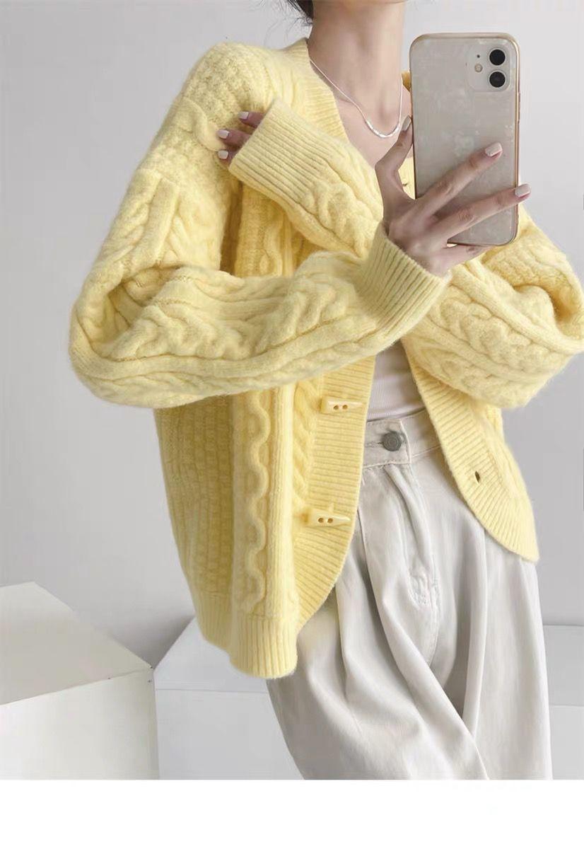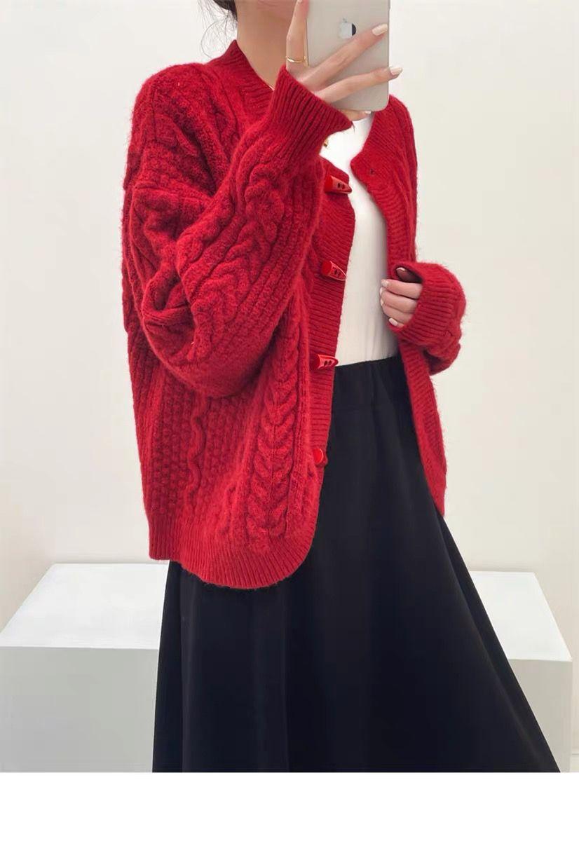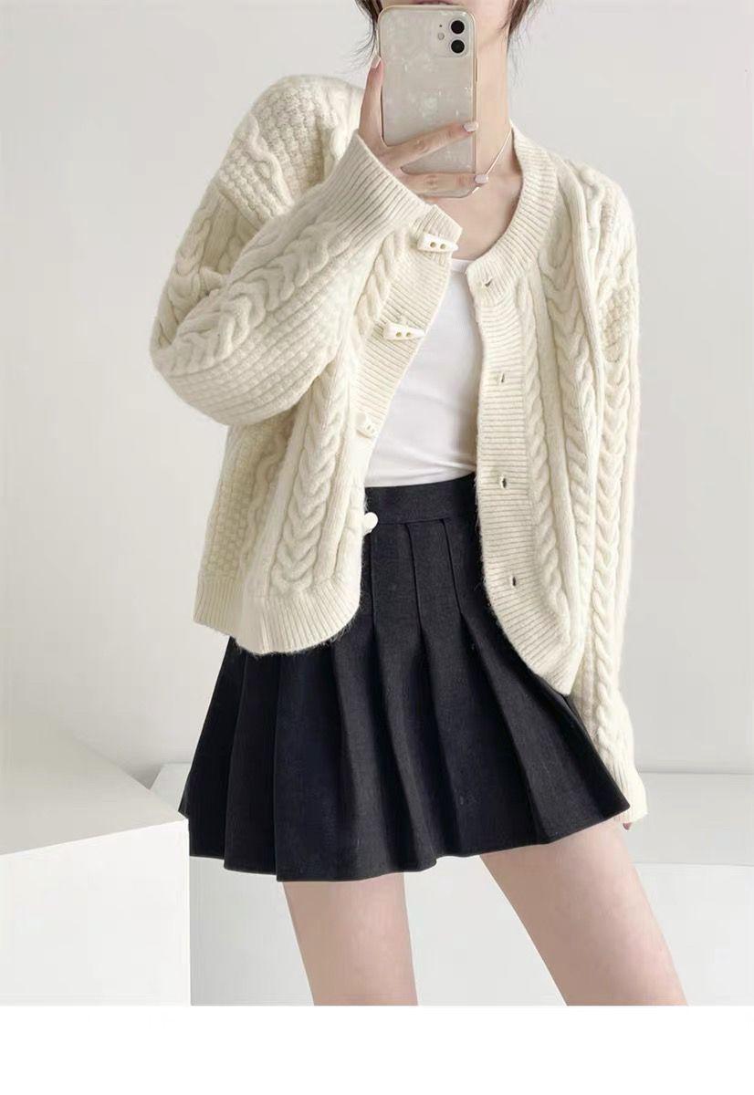 Cárdigan de Punto con Botones de Cuerno Estilo Otoño 2025 Comercio Exterior Nuevo Estilo Versátil Cuello Redondo Manga Larga