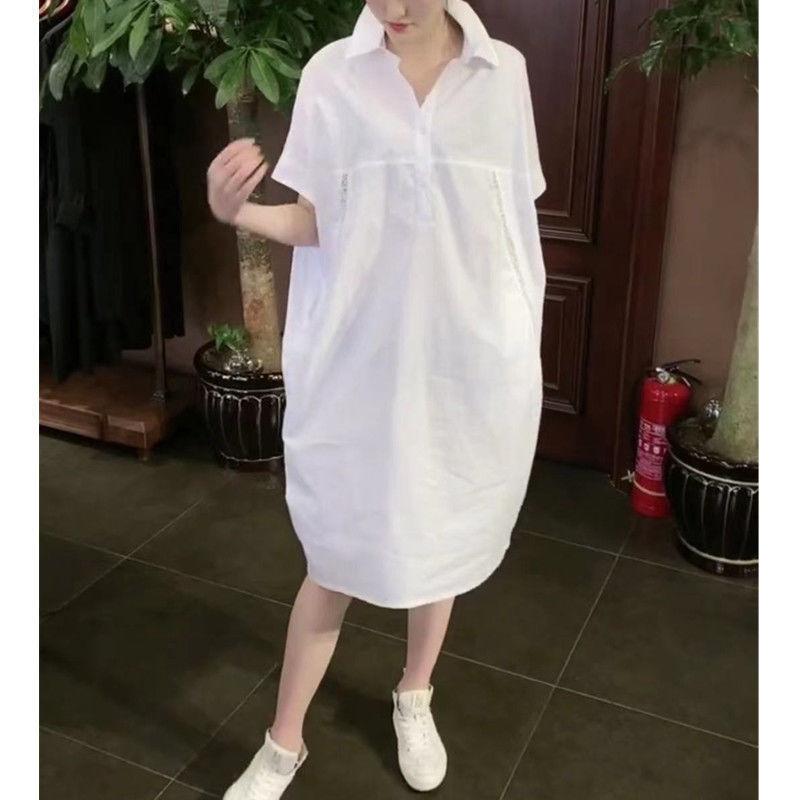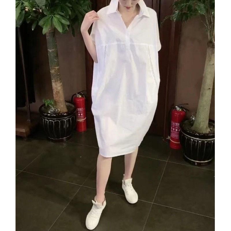 9705 Vestido Big Aimei Yiyuan 2025 Verano Nuevo Blanco Solapa Vestido Midi Holgado Slim Moderno