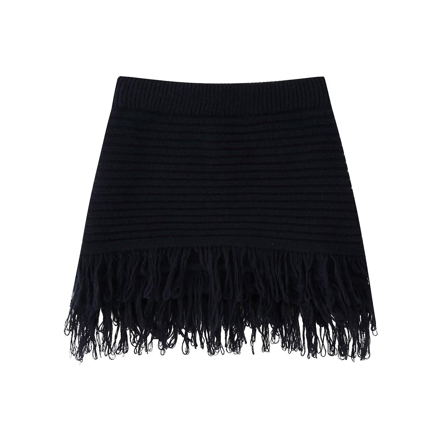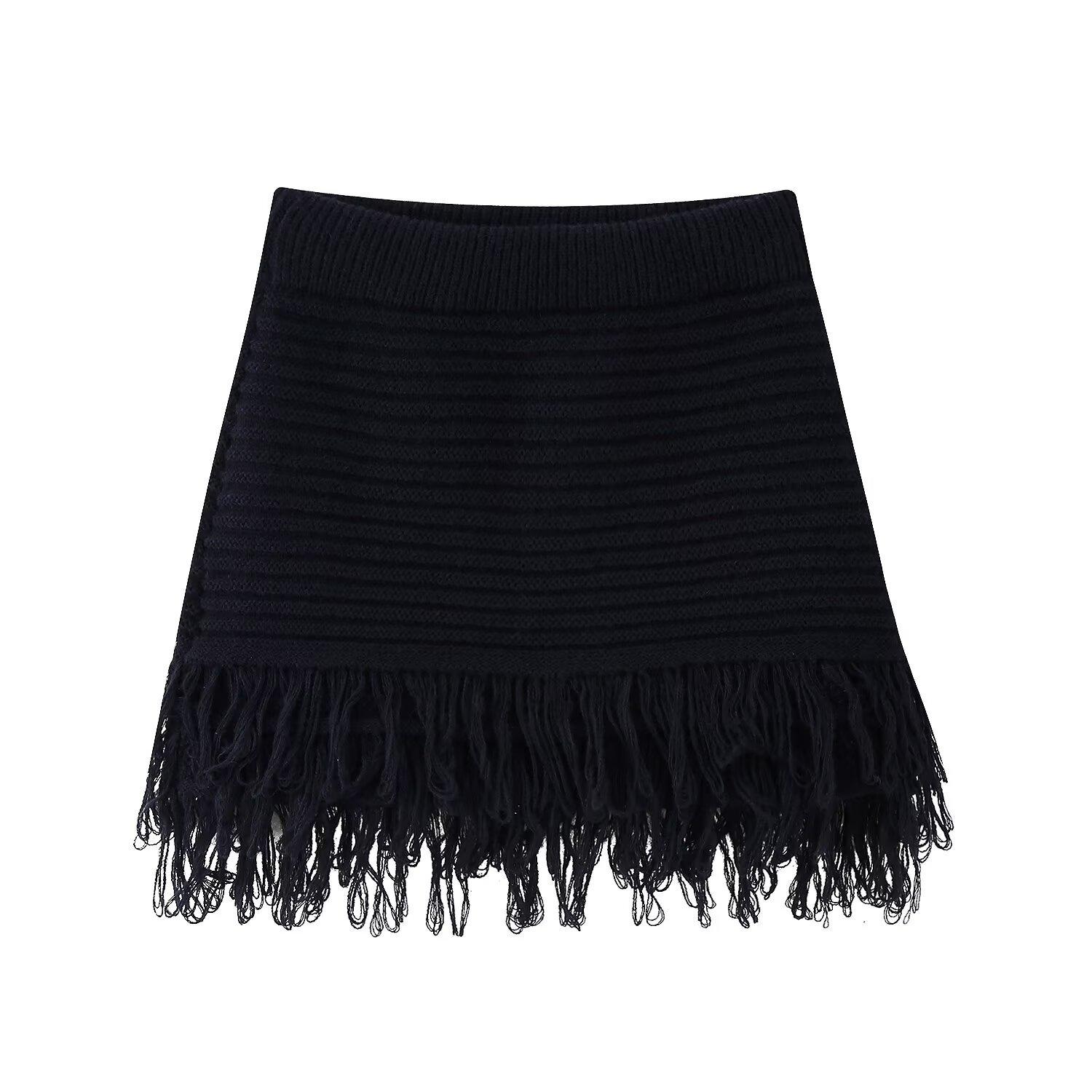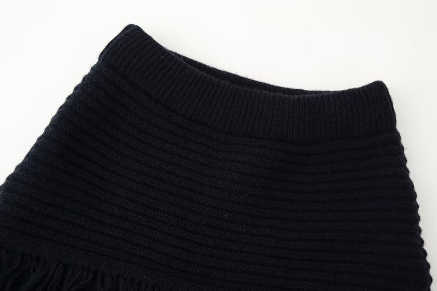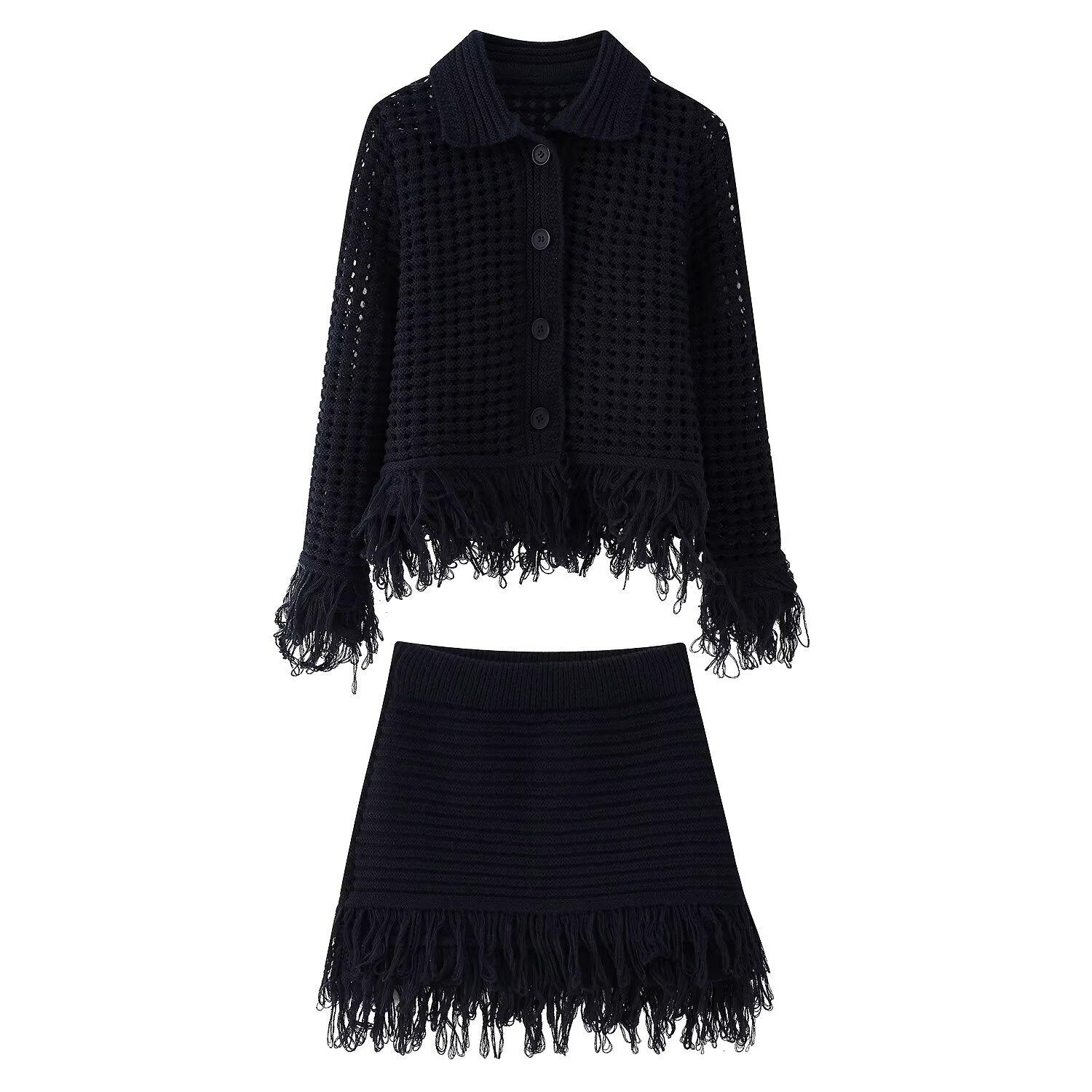 Ropa de Mujer Estilo Europeo y Americano Comercio Exterior Popular Transfronterizo Chaqueta de Punto de Manga Larga con Solapa Decorada con Borlas + Falda de Punto