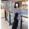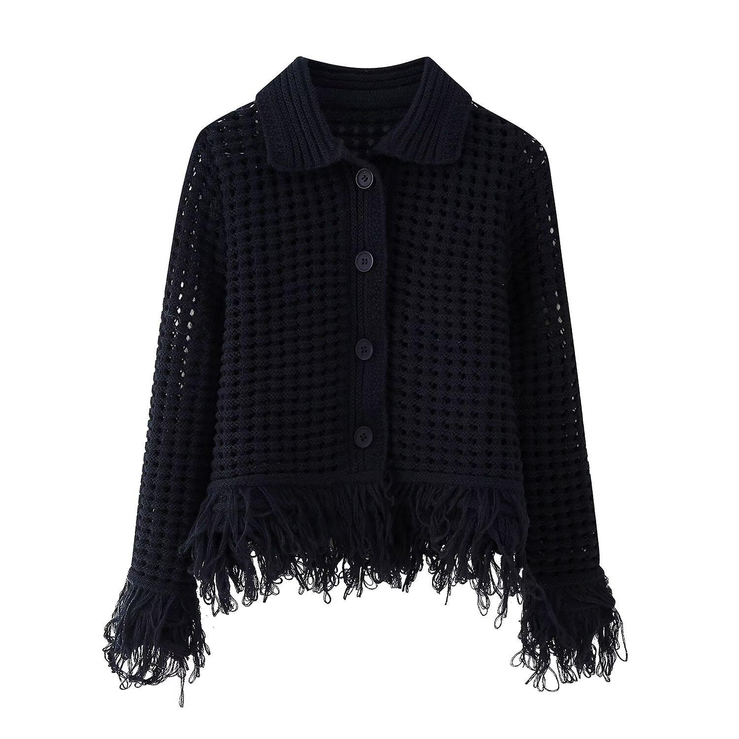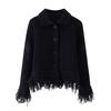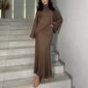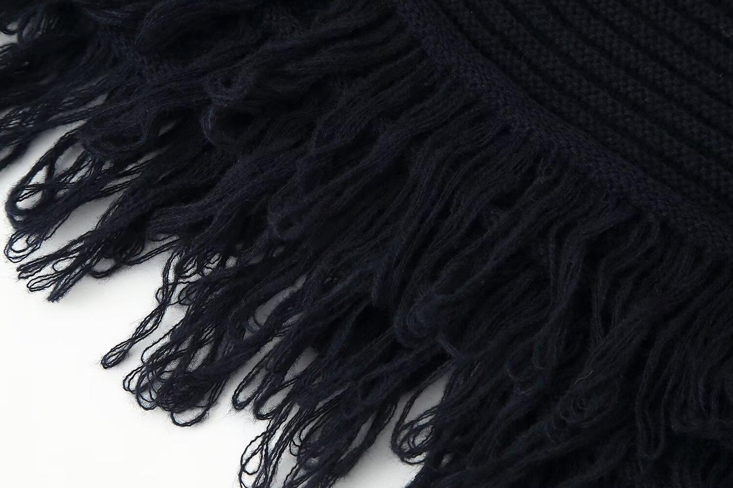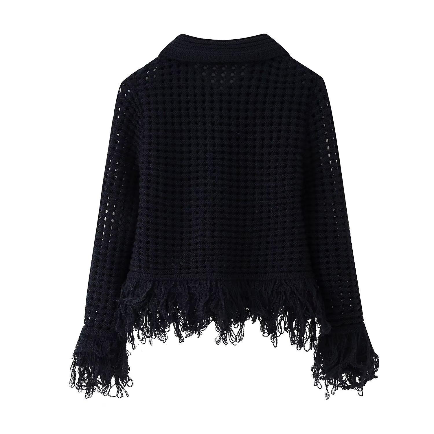Ropa de Mujer Estilo Europeo y Americano Comercio Exterior Popular Transfronterizo Chaqueta de Punto de Manga Larga con Solapa Decorada con Borlas + Falda de Punto