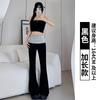 Pantalones Micro-awei de Cintura Baja Estilo Americano con Borde Rizado para Mujer, Primavera y Otoño, Nuevos, Costuras, Ajustados, Adelgazantes, Deportivos, Casuales, para Yoga