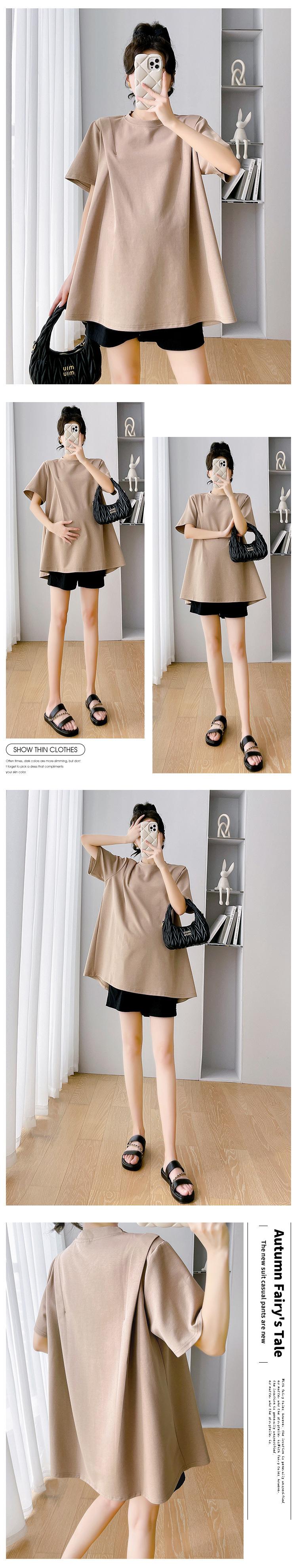 Vestido de maternidad de verano nuevo, elegante, informal, cuello redondo, pequeño, suelto, talla grande, vestido de maternidad tipo camiseta