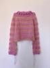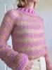 Otoño e Invierno Transfronterizo 2025 Moda Europea y Americana Textura Rayada Rosa con Diseño Suéter Tejido de Cuello Redondo