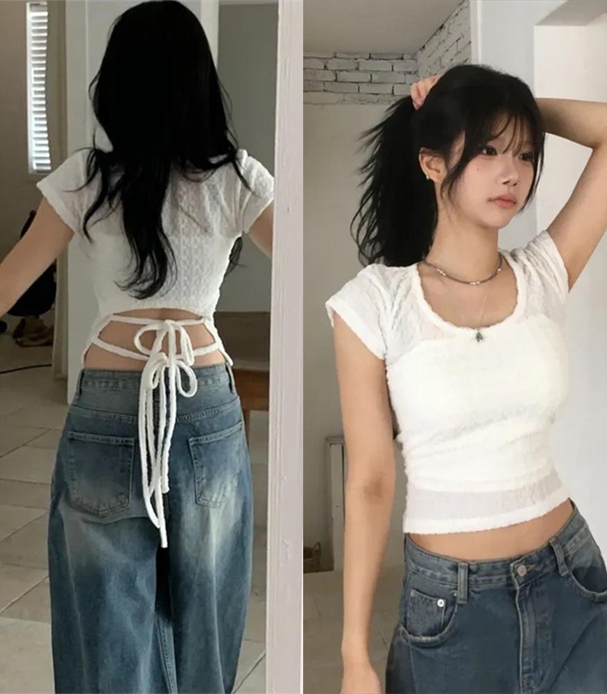 El escote en V + el diseño de cinta añade un sentido de estilo,