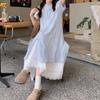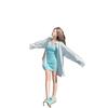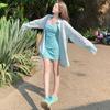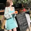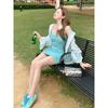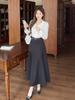 Traje Elegante de Dama para Mujer de Talla Grande Camisa Fina Nueva de Primavera para Protección Solar + Falda Azul con Tirantes Conjunto de Dos Piezas