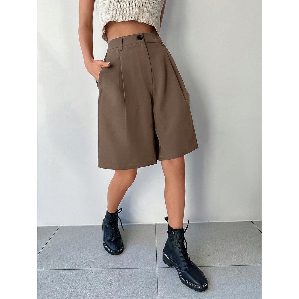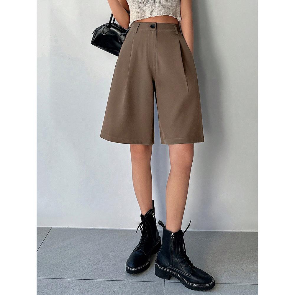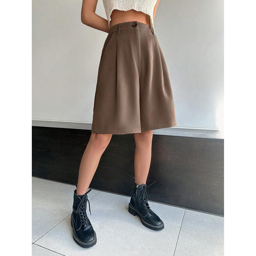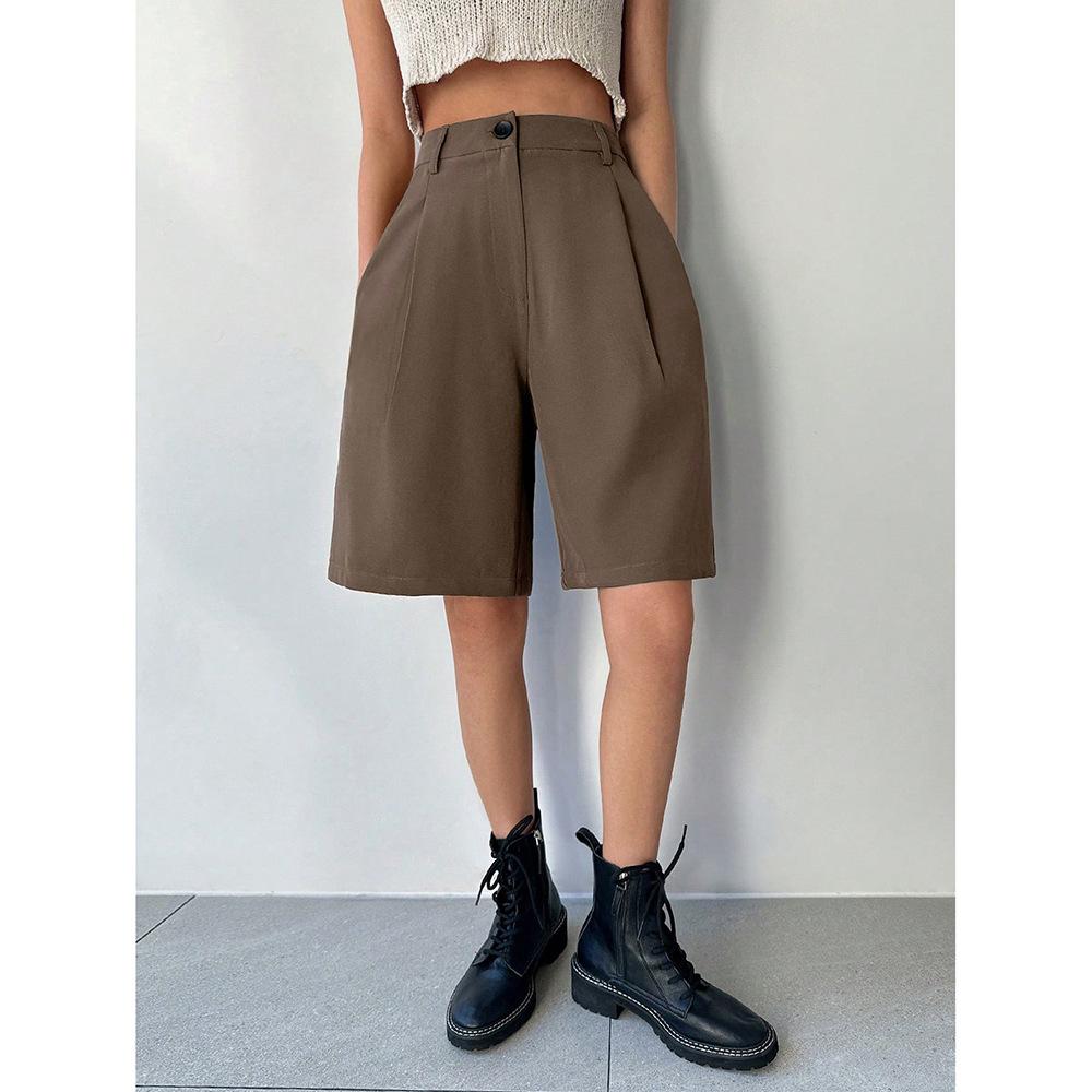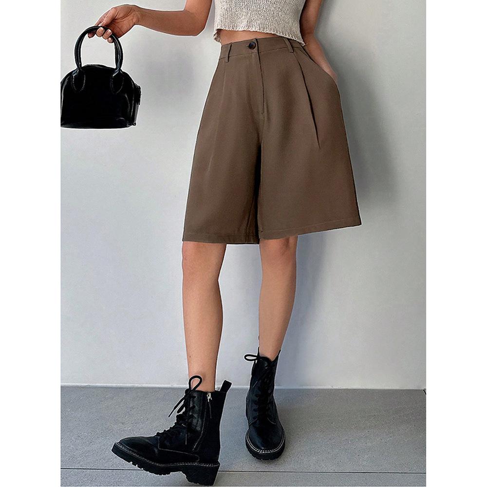 Traje de Verano Transfronterizo de Amazon Shorts para Mujer 2025 Nuevo Cintura Alta Suelto Adelgazante Pierna Ancha Shorts Casuales