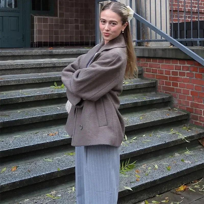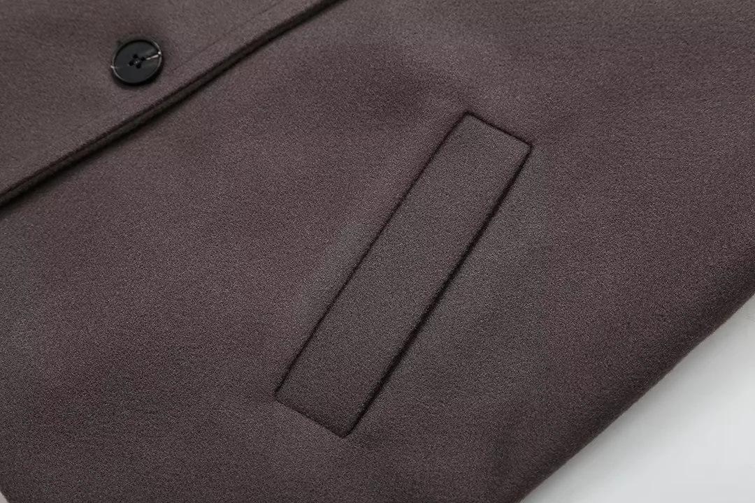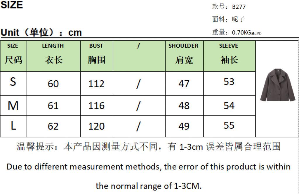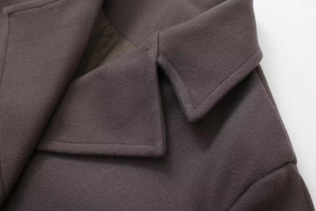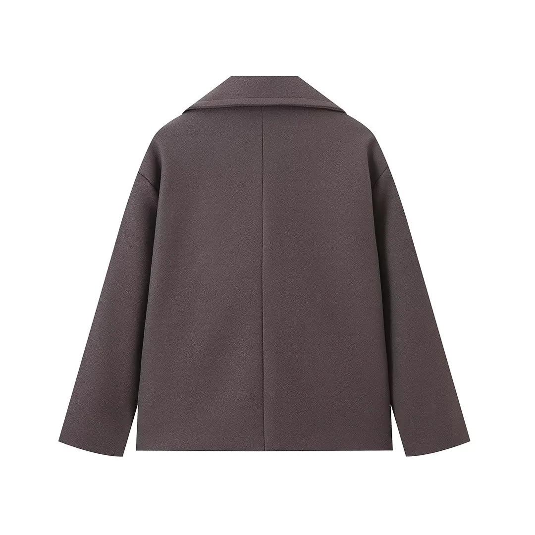 Ropa de Mujer Estilo Europeo y Americano Comercio Exterior Transfronterizo Estilo Caliente Chaqueta Corta de Lana de Doble Botonadura con Solapa y Manga Larga