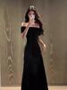 Vestido Yujie Style Sexy de Hombro y Manga Corta para Mujer Verano 2025 Nuevo Ajustado Adelgazante Falda Larga con Cuello de Hombro