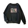 Ropa de Mujer de Comercio Exterior 2025 Primavera y Otoño Nuevo Estilo Coreano Estampado de Dibujos Animados Estudiante Chaqueta Holgada Sudadera de Cuello Redondo con Forro Polar Tendencia para Mujer