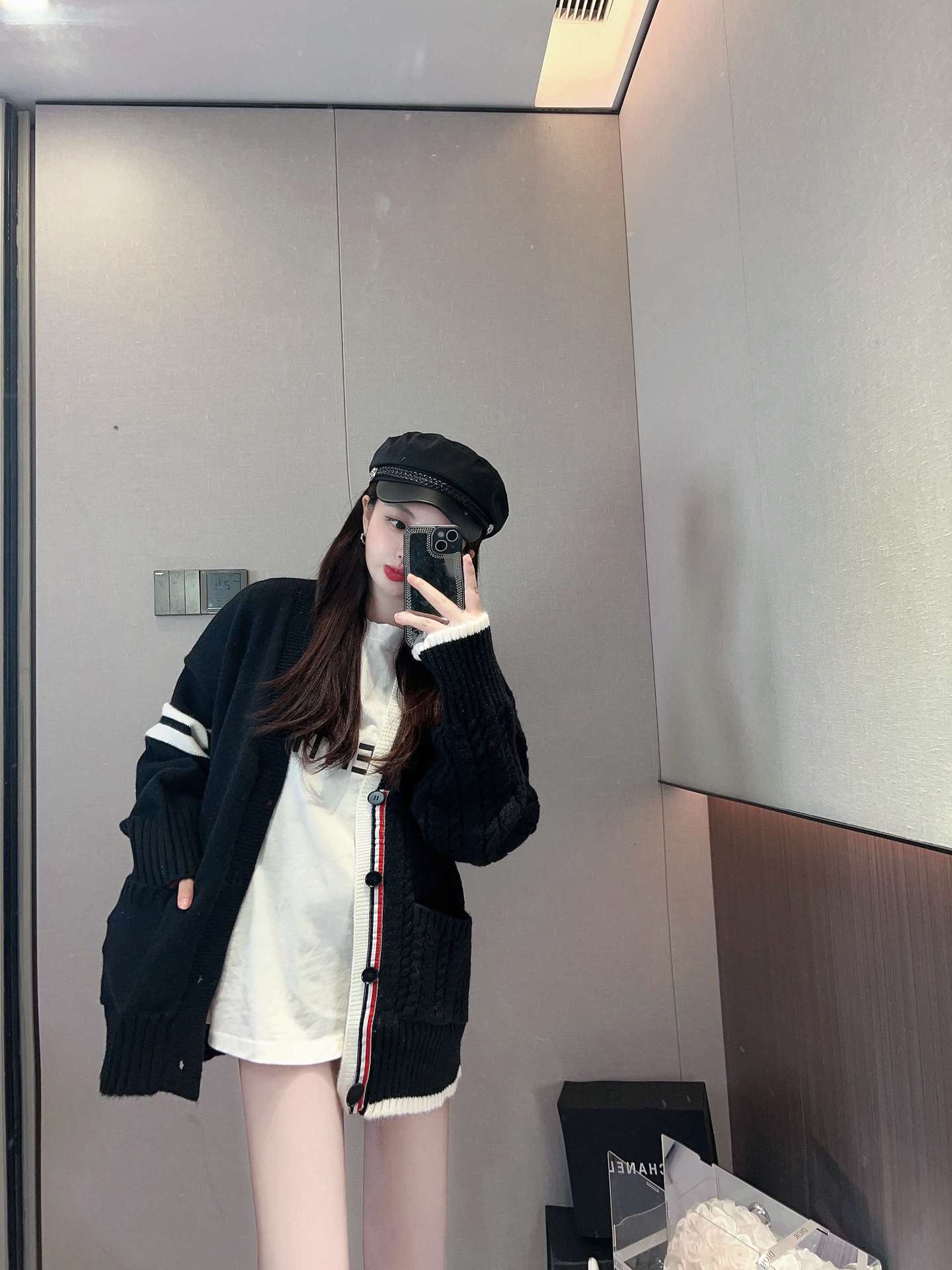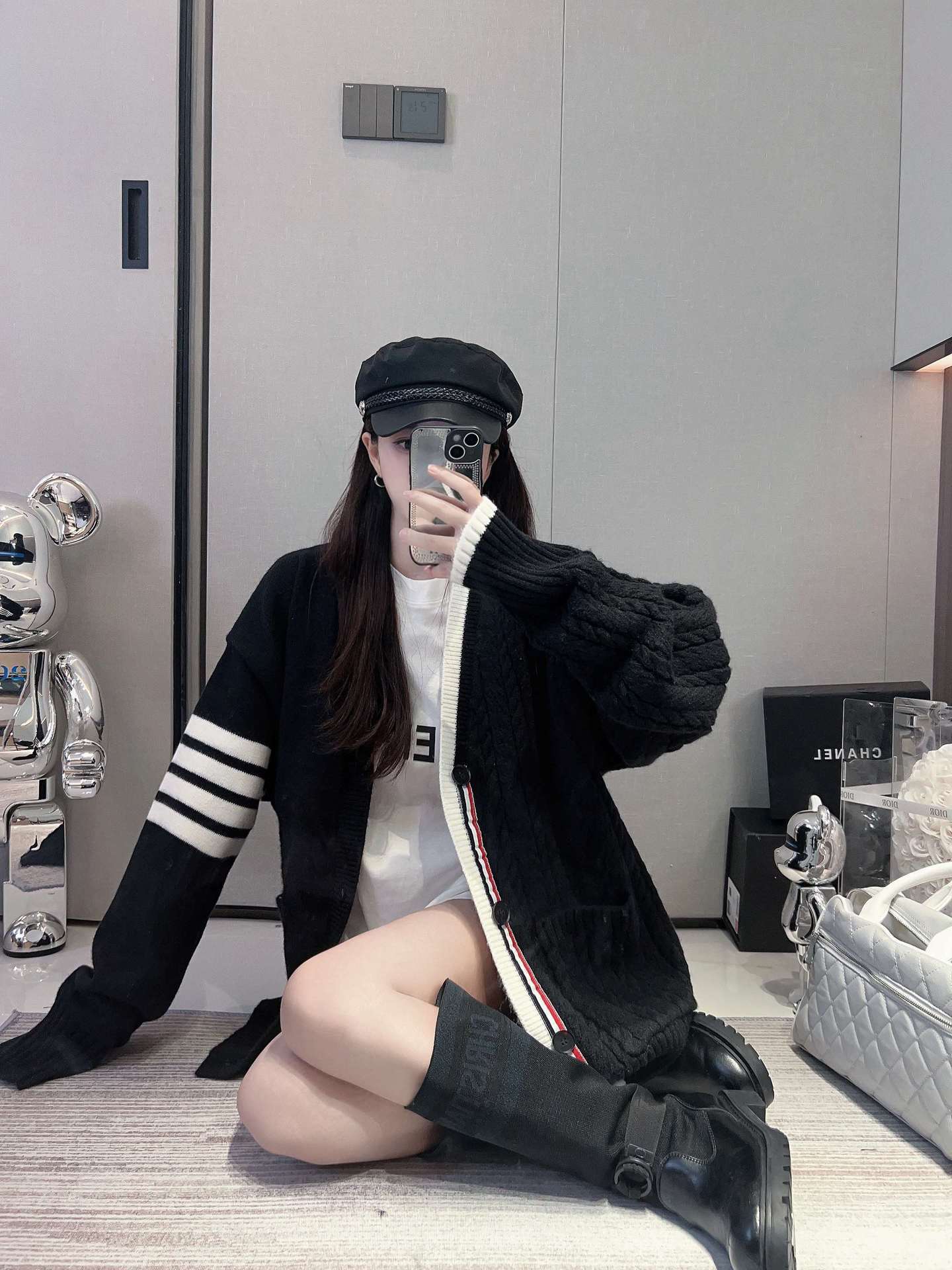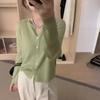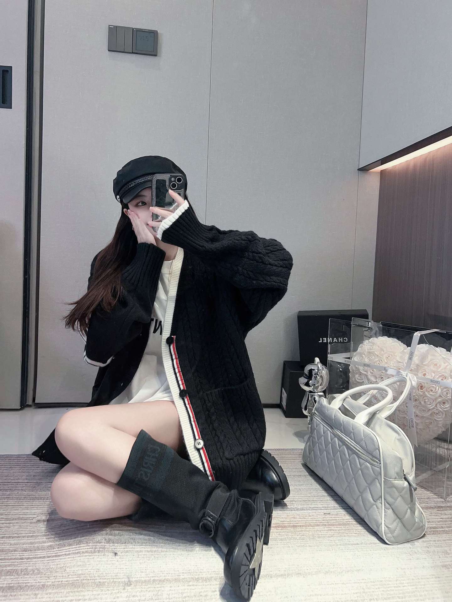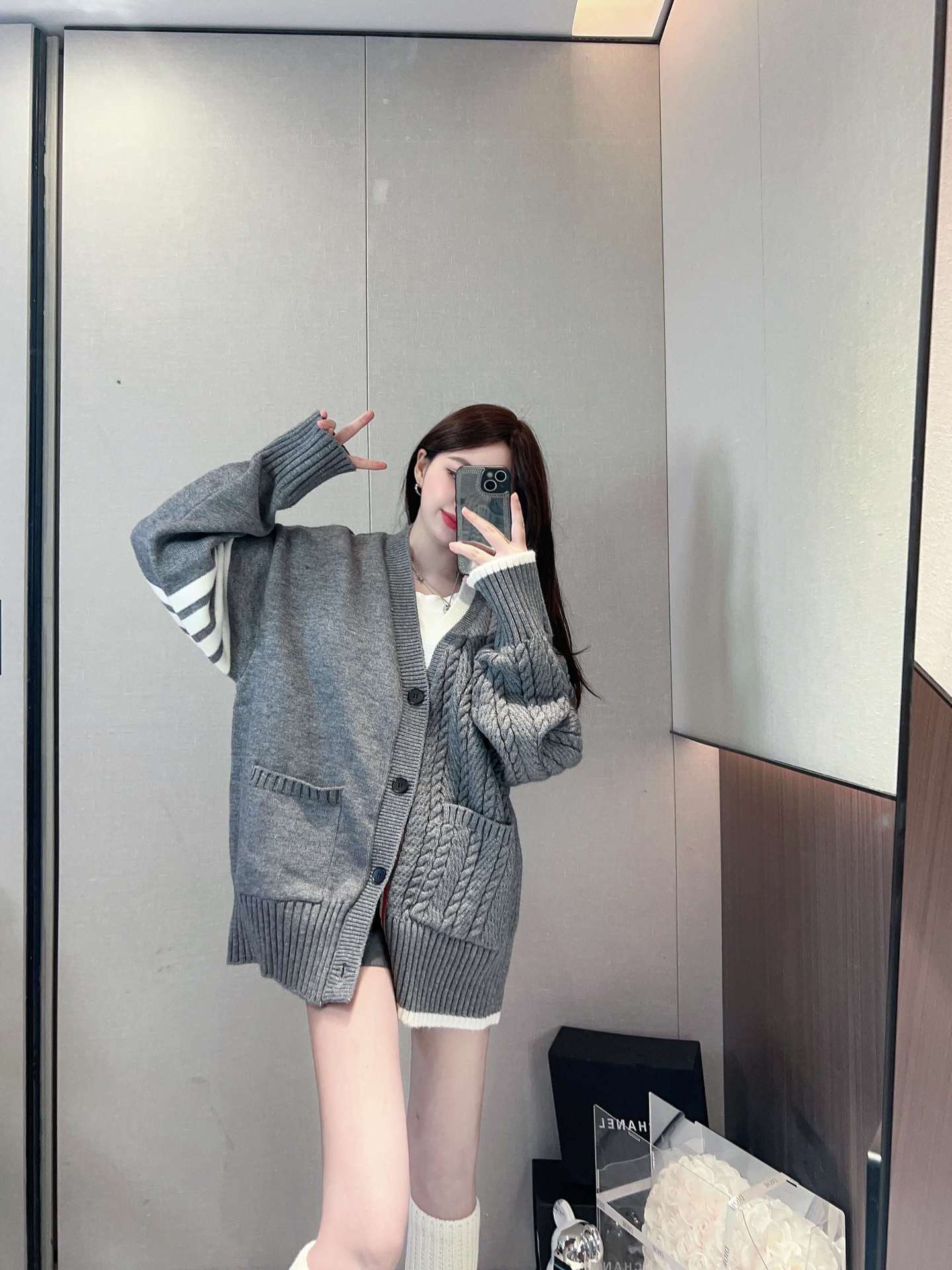 Cárdigan de Punto con Cuello en V de Color Contrastante para Mujer 2025 Principios de Otoño Nuevo Estilo Holgado y Relajado Chaqueta Suéter de Manga Larga