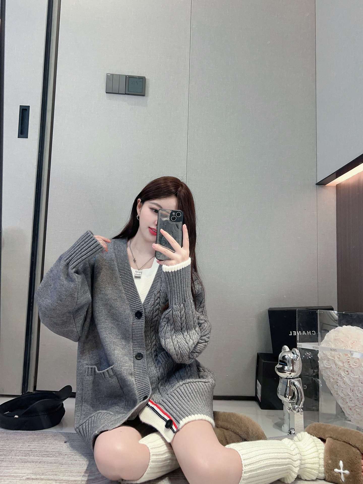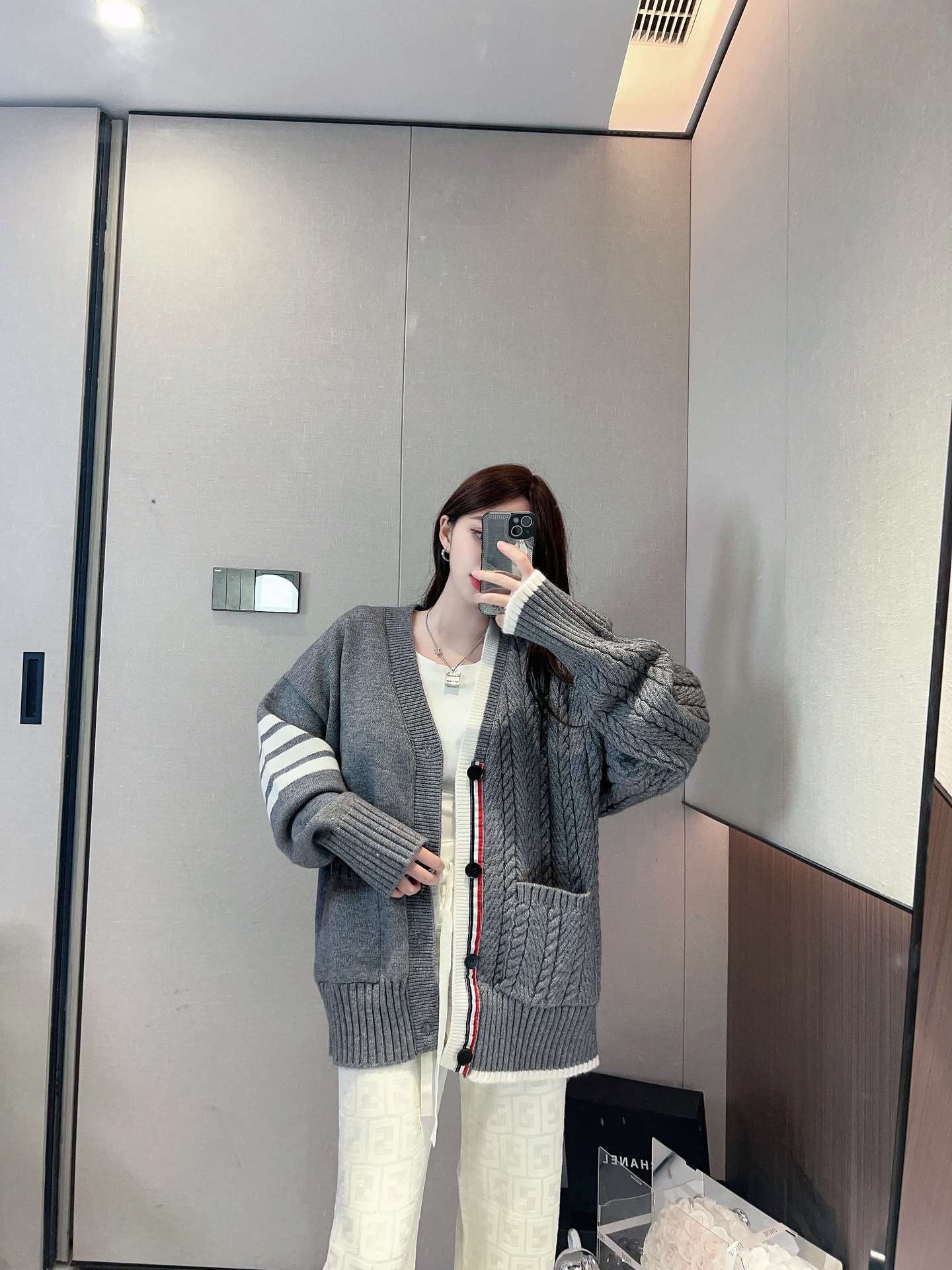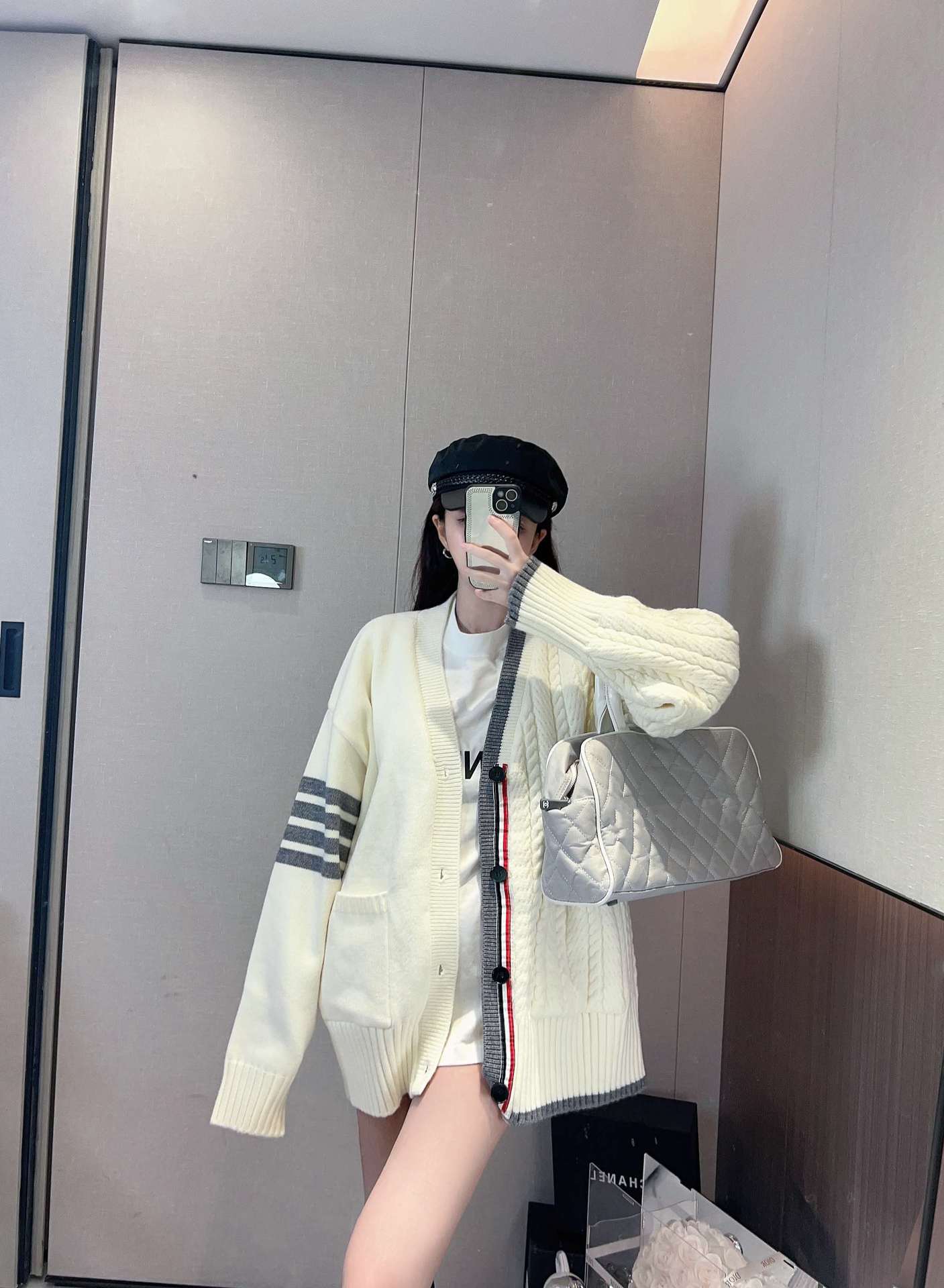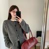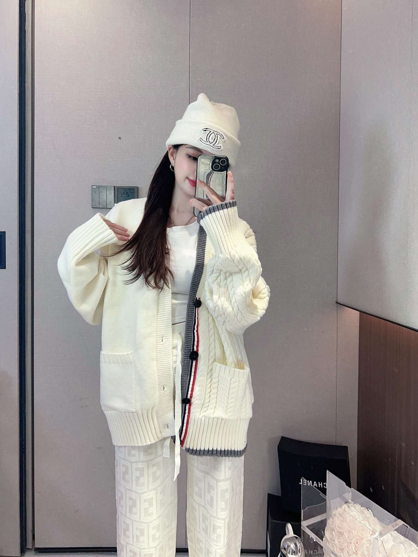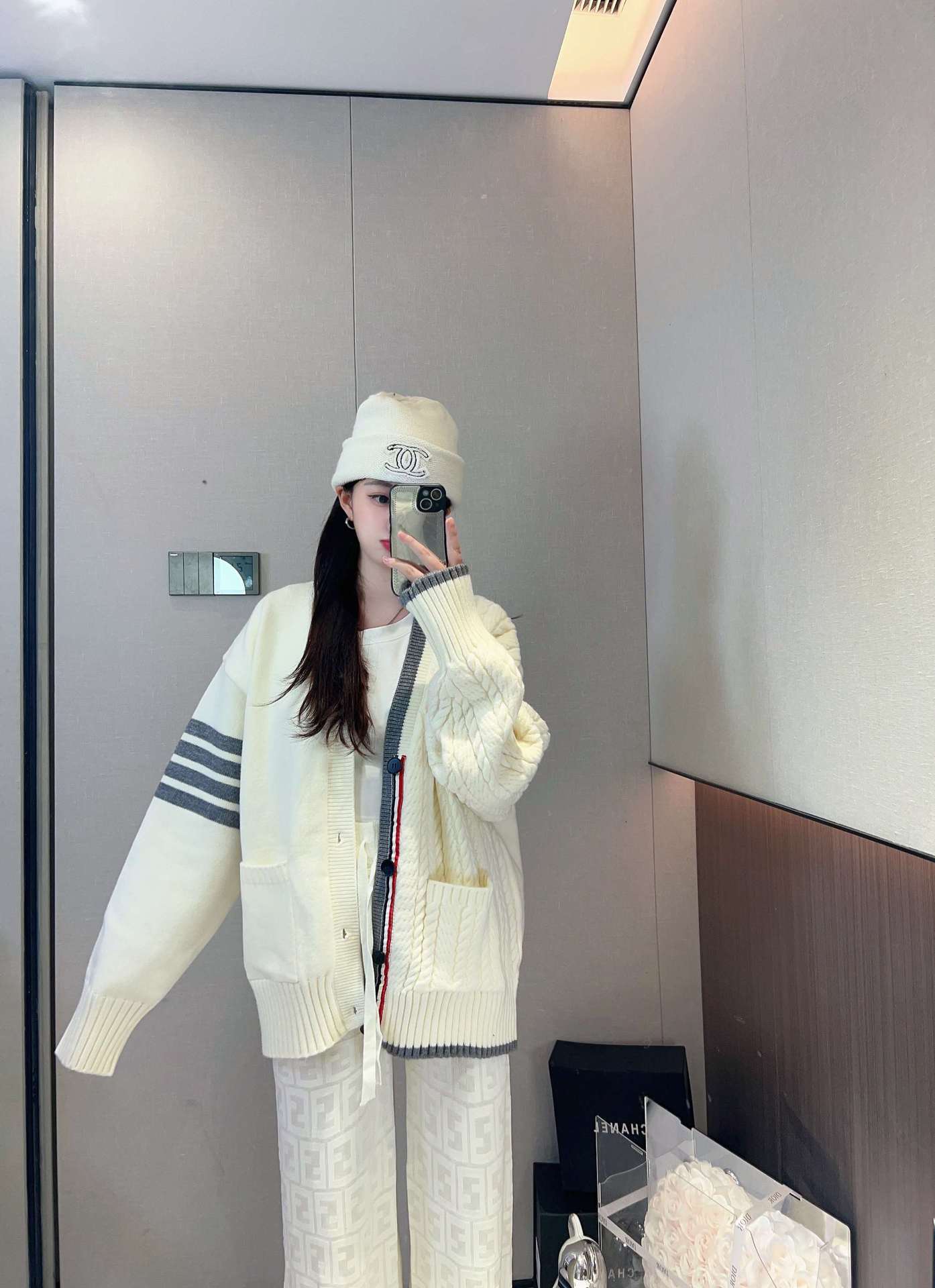 Cárdigan de Punto con Cuello en V de Color Contrastante para Mujer 2025 Principios de Otoño Nuevo Estilo Holgado y Relajado Chaqueta Suéter de Manga Larga