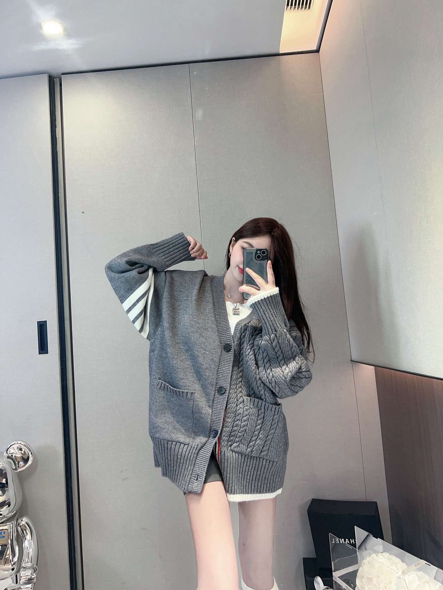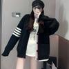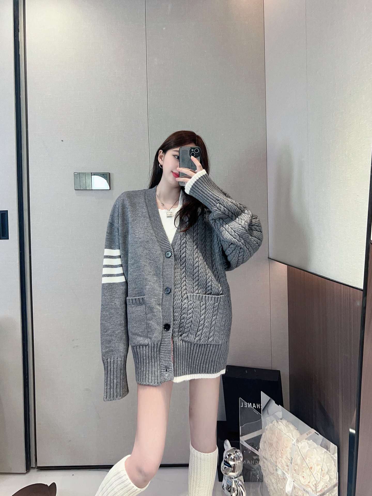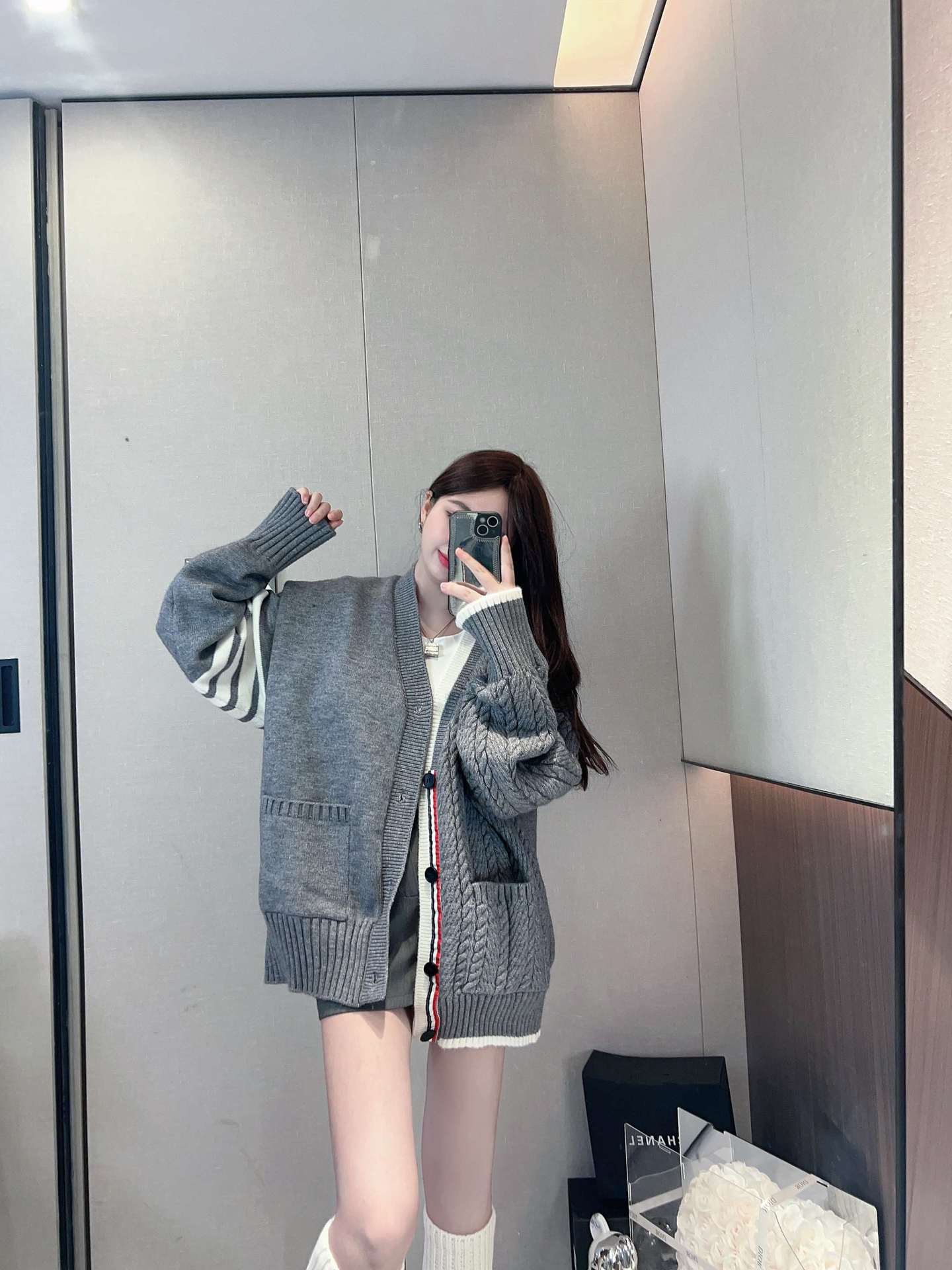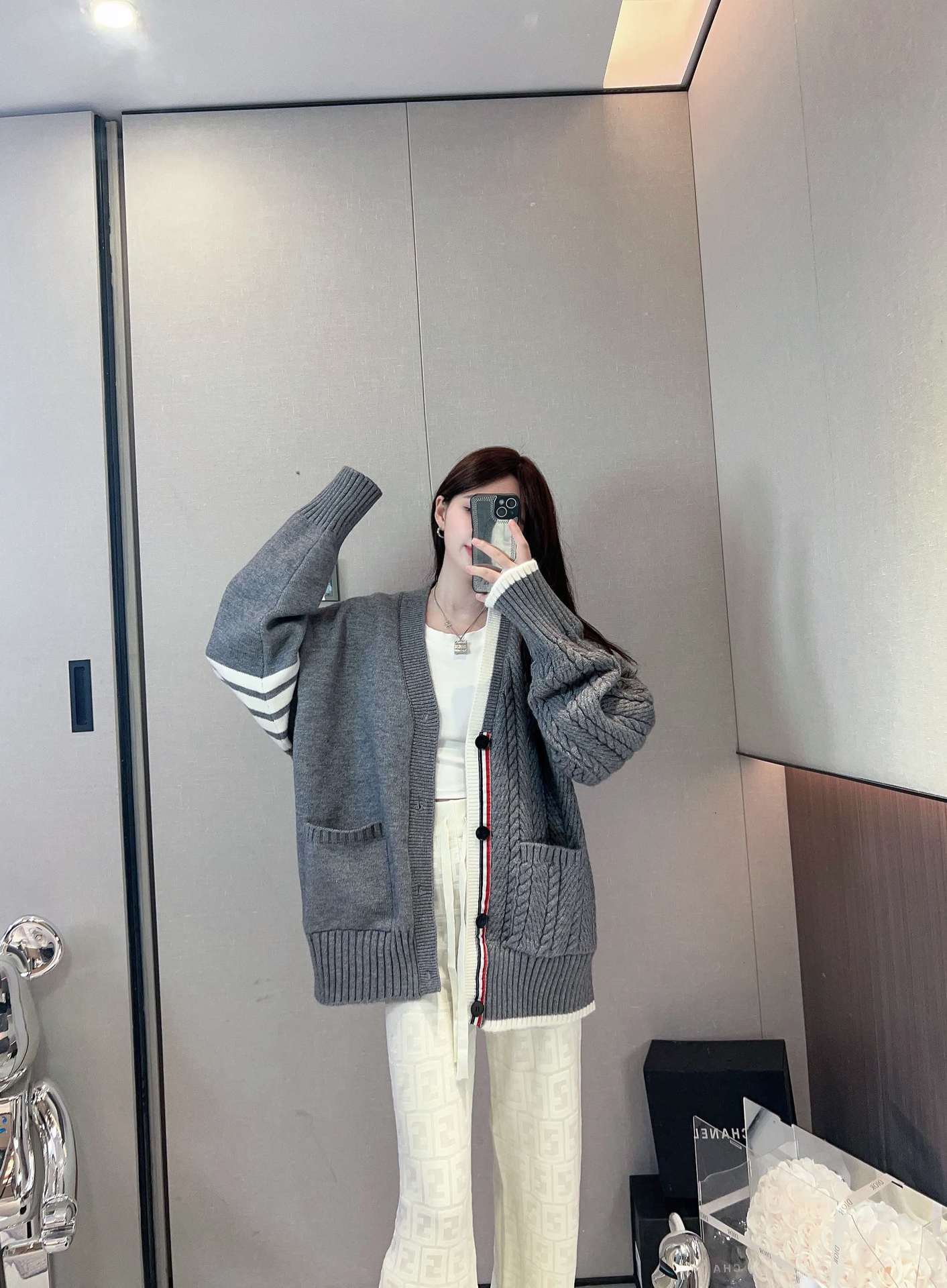 Cárdigan de Punto con Cuello en V de Color Contrastante para Mujer 2025 Principios de Otoño Nuevo Estilo Holgado y Relajado Chaqueta Suéter de Manga Larga