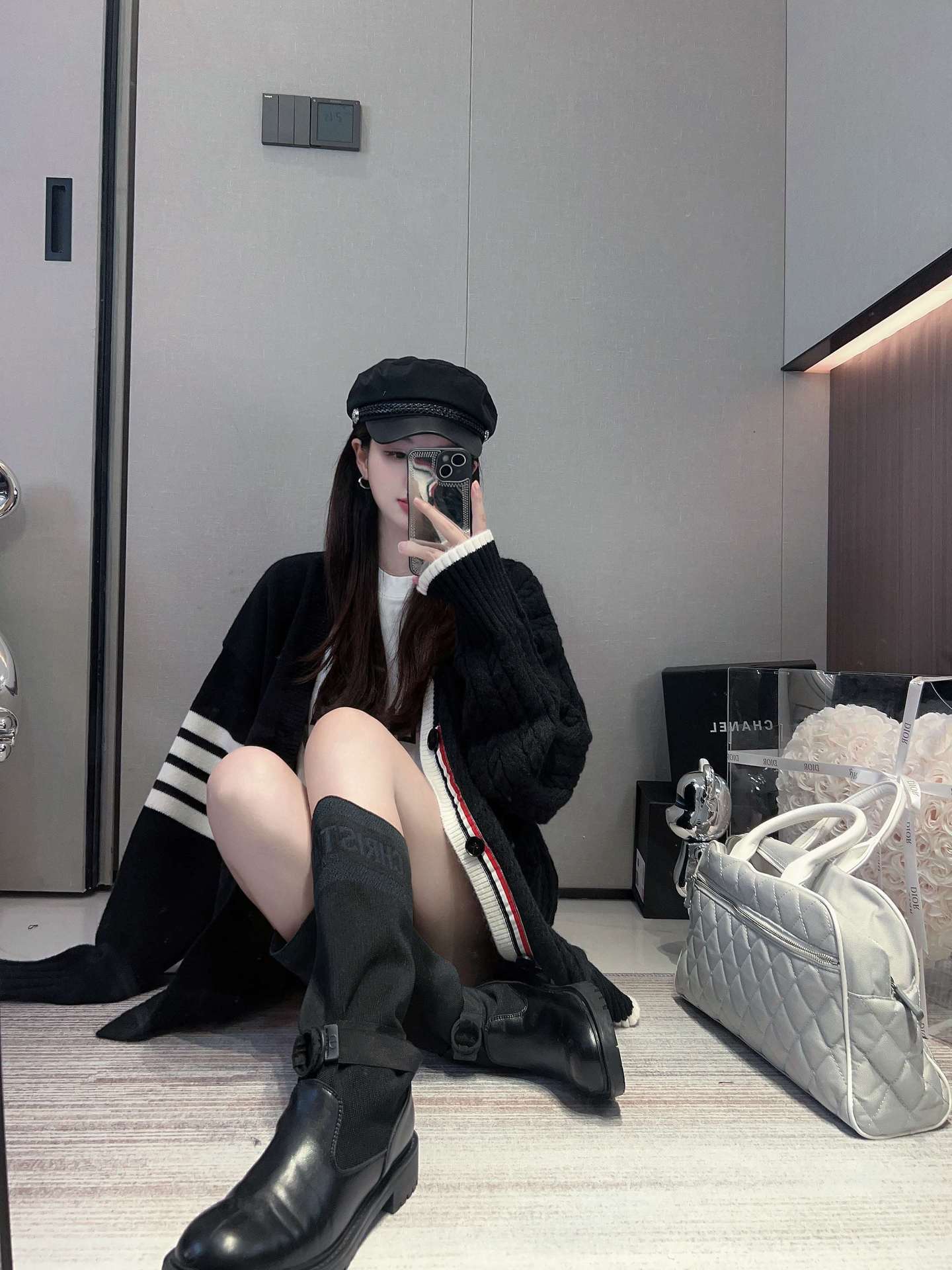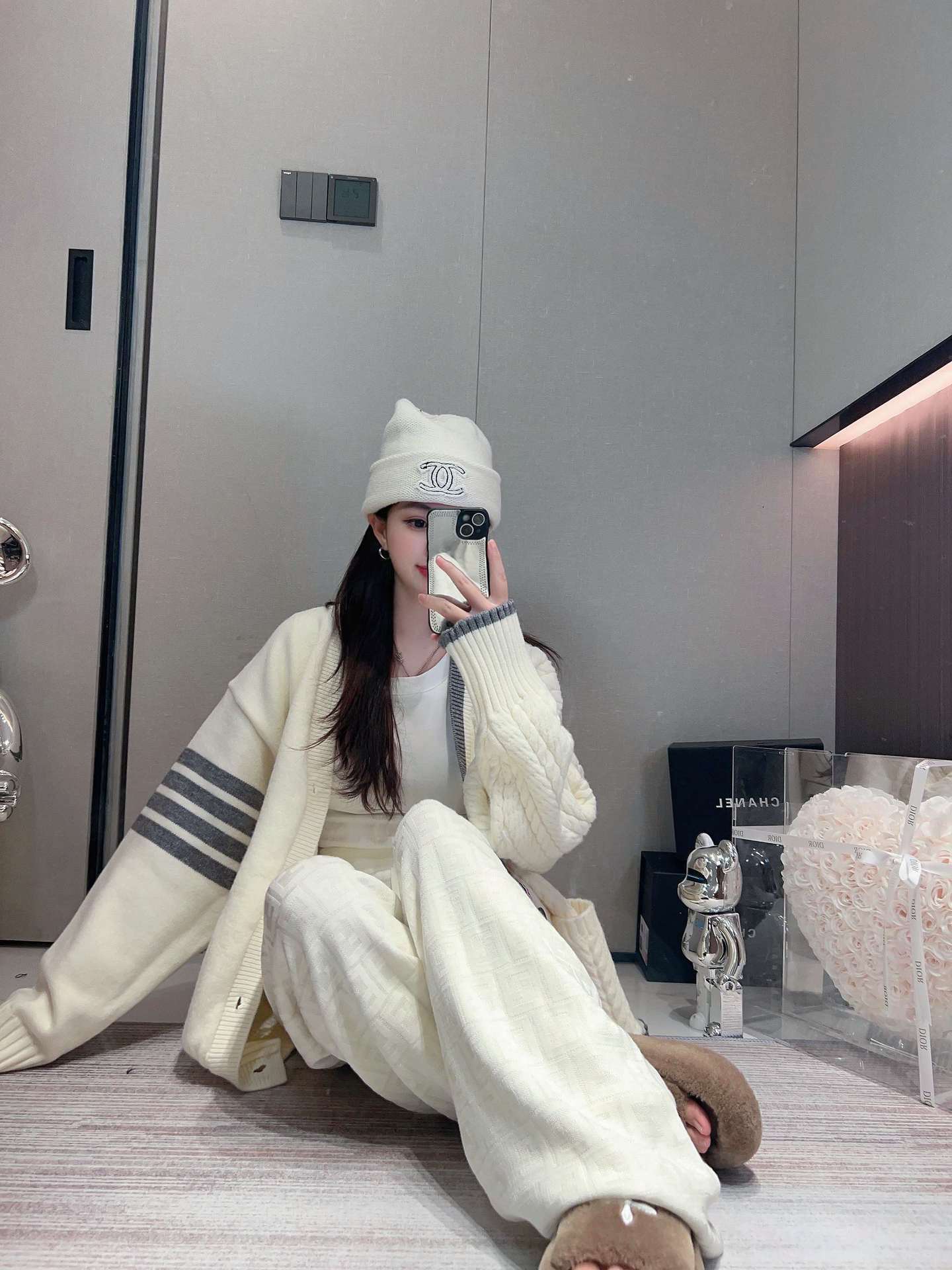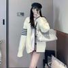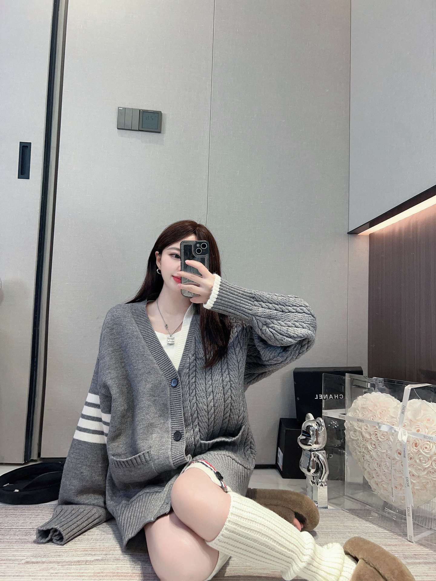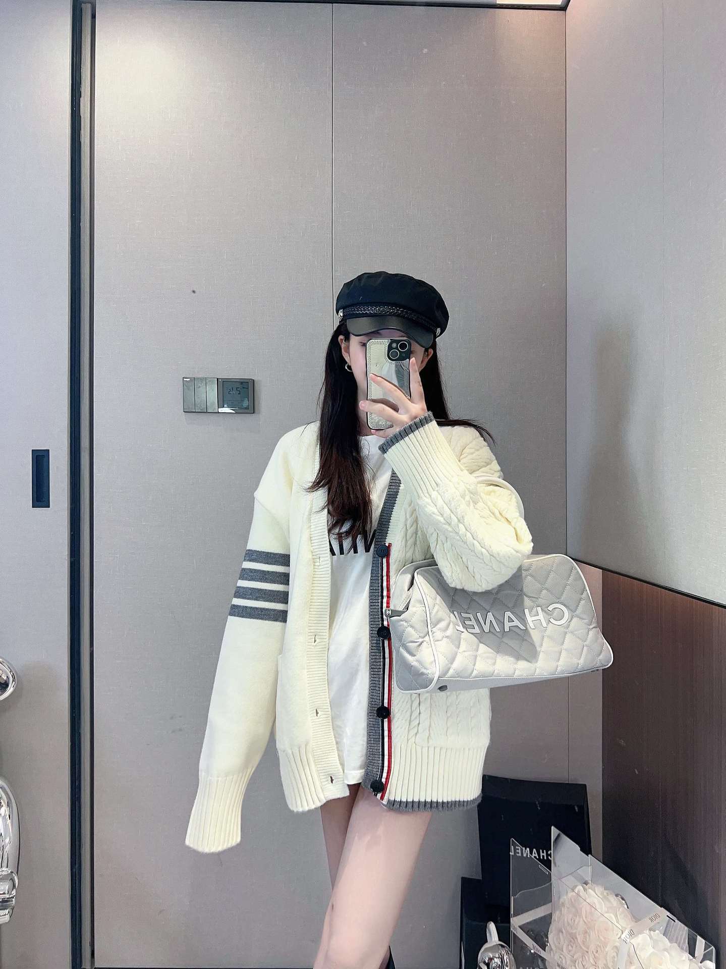 Cárdigan de Punto con Cuello en V de Color Contrastante para Mujer 2025 Principios de Otoño Nuevo Estilo Holgado y Relajado Chaqueta Suéter de Manga Larga
