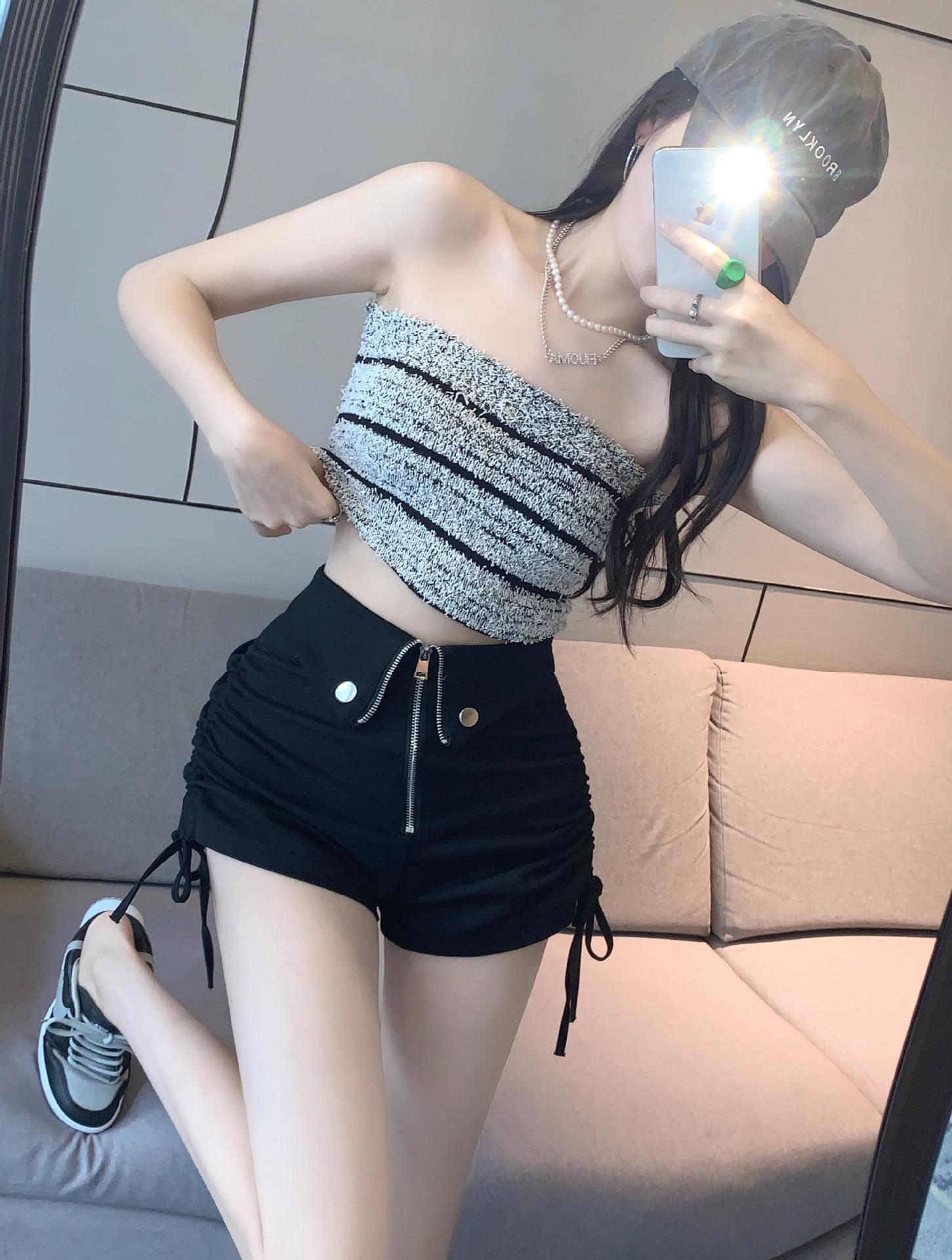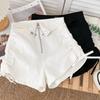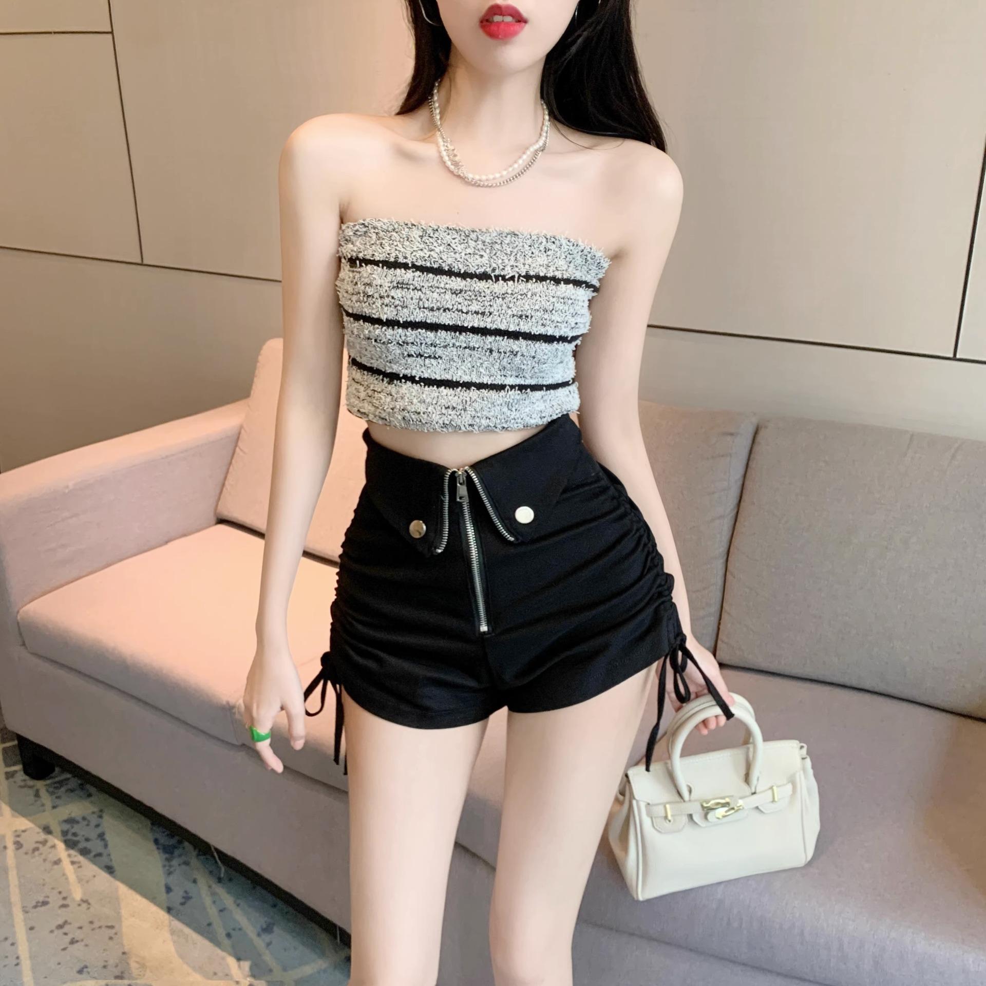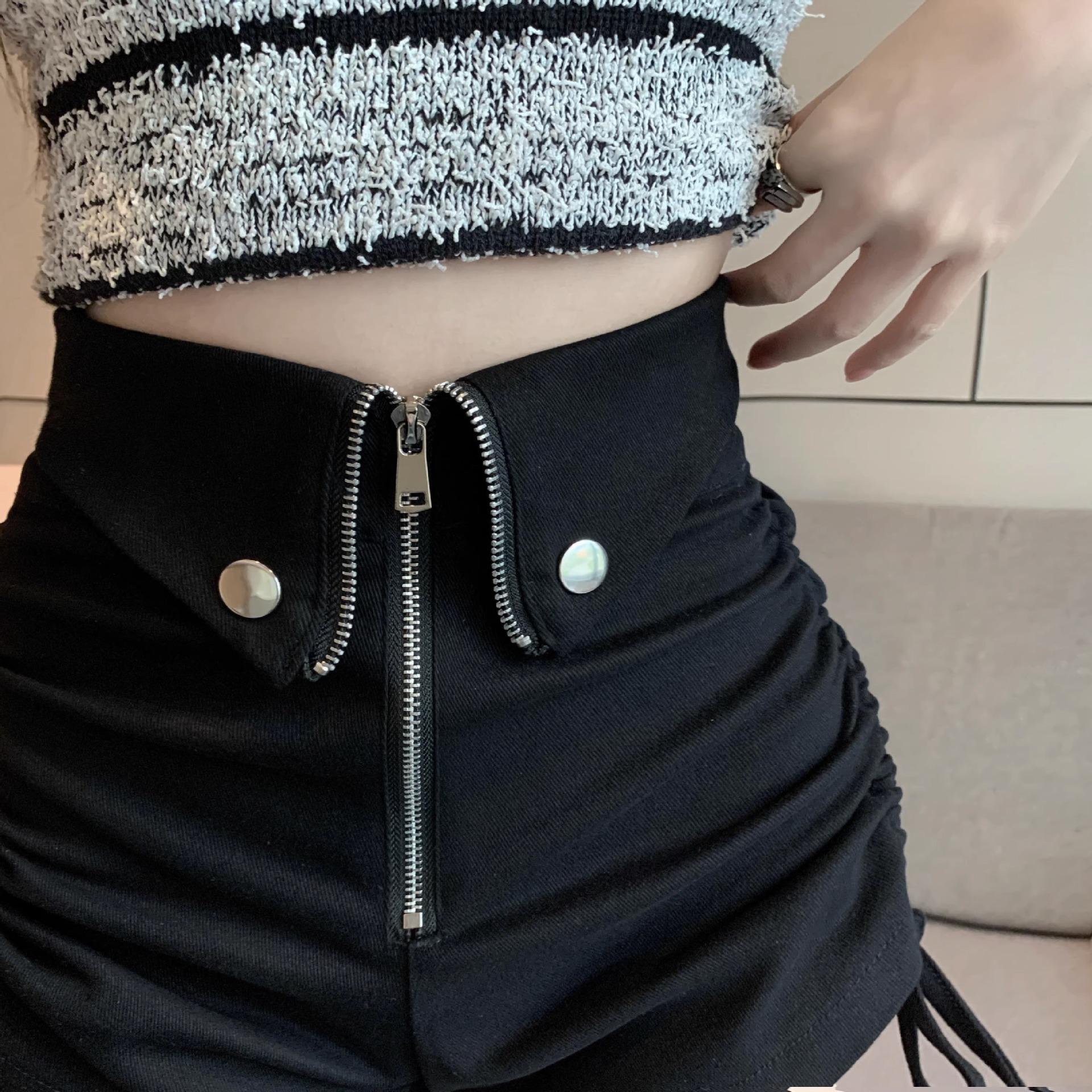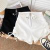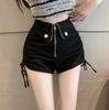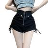 Shorts Negros de Cintura Alta con Cordón para Mujer 2025 Verano Diseño Chica Hot Nicho Petite A-Line Ultracortos