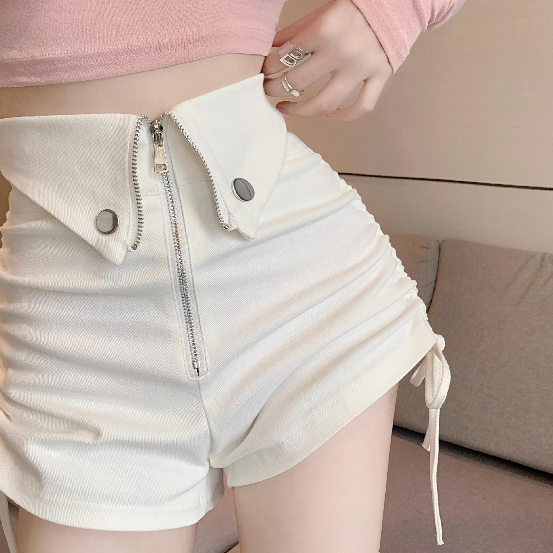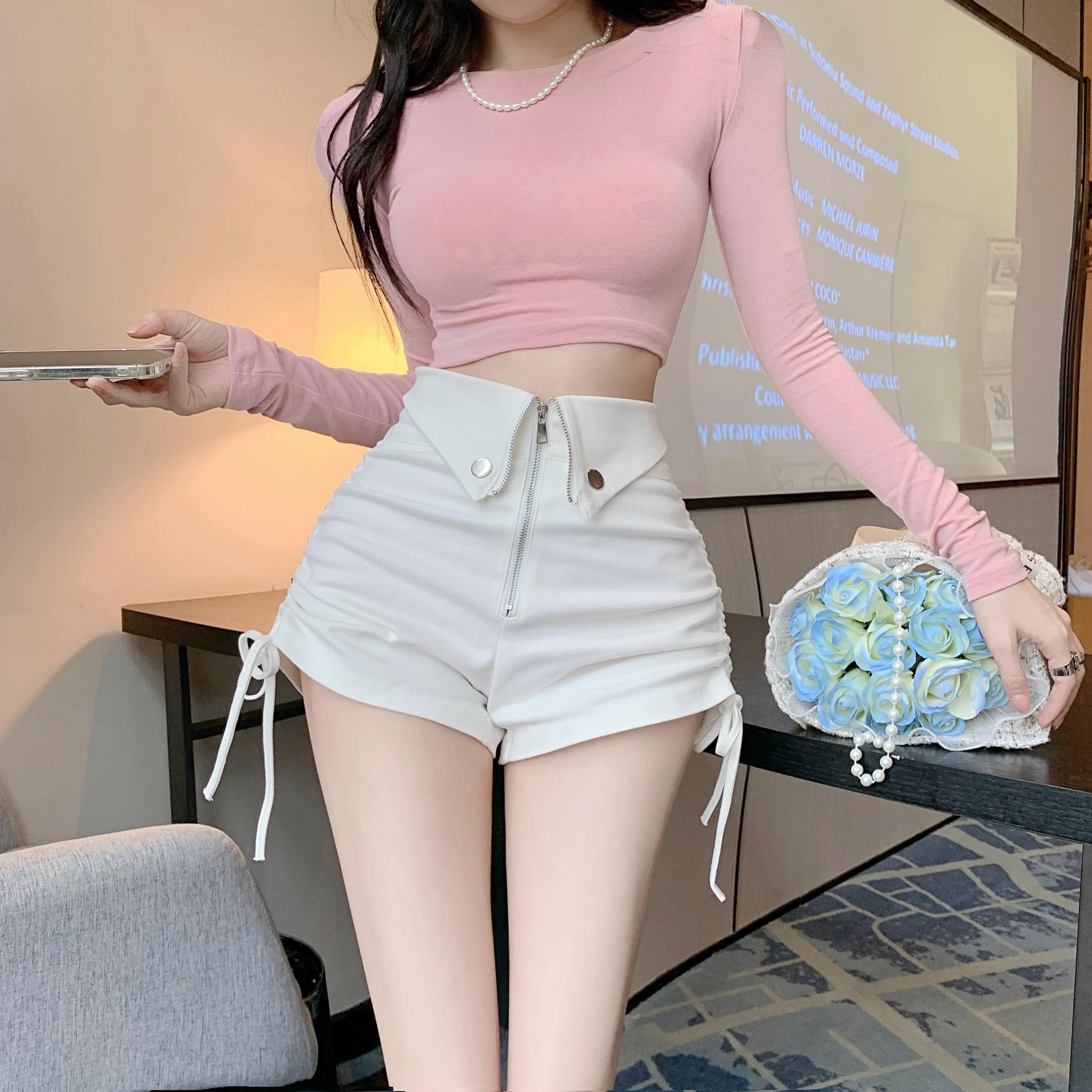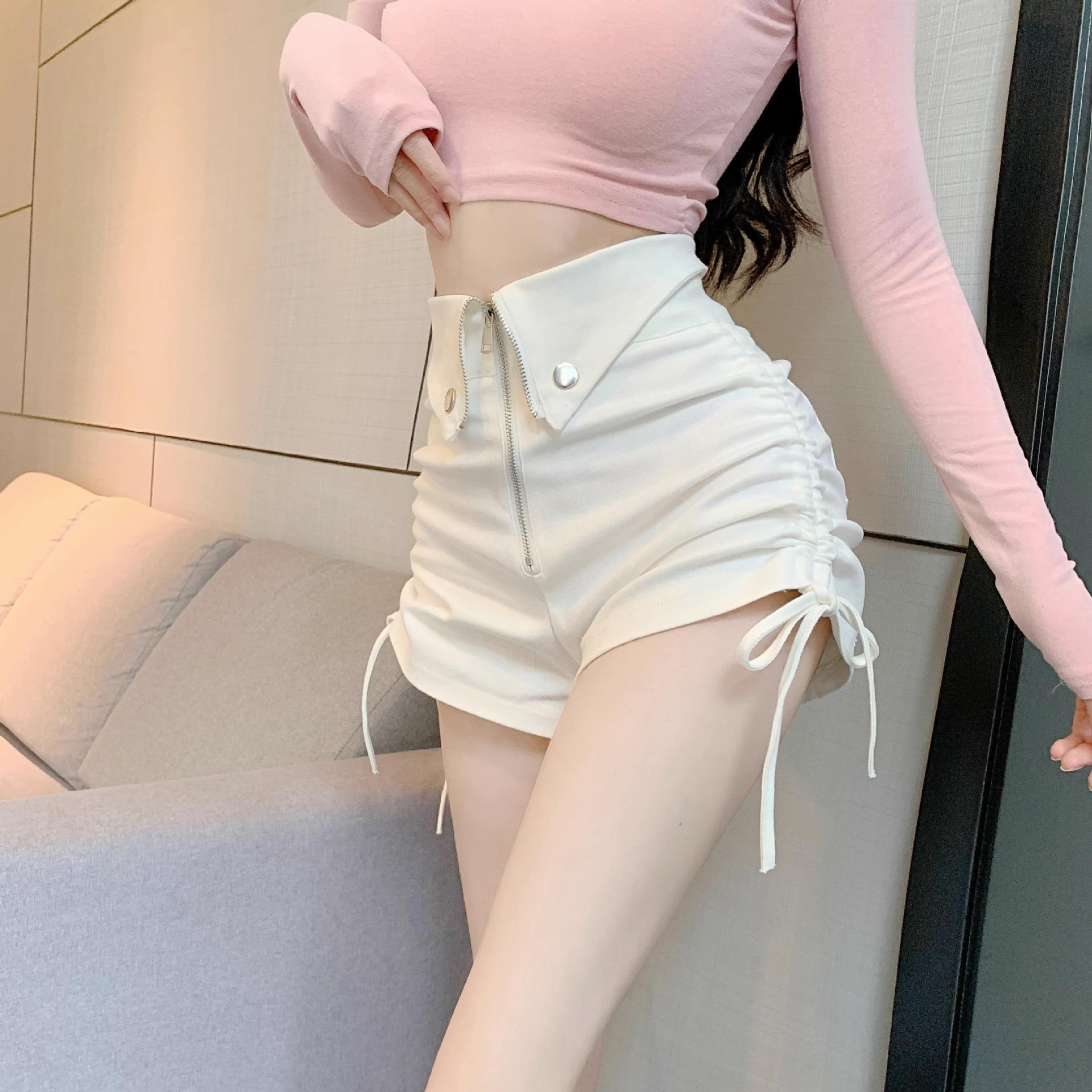 Shorts Negros de Cintura Alta con Cordón para Mujer 2025 Verano Diseño Chica Hot Nicho Petite A-Line Ultracortos