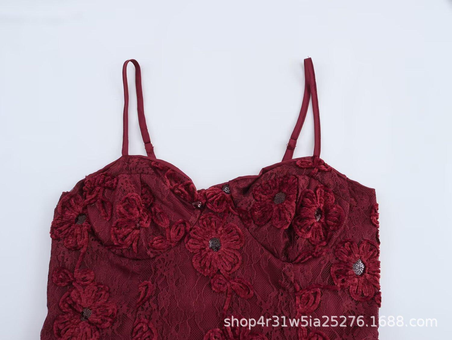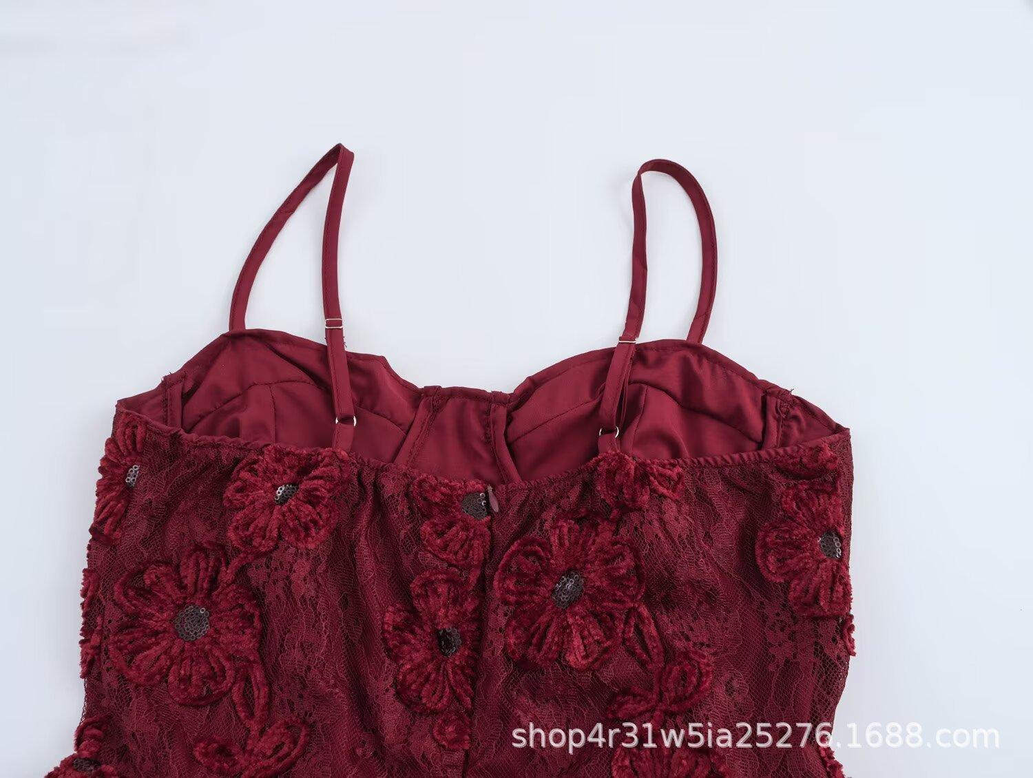 Amazon Aliexpress Exportación Transfronteriza Ropa de Mujer 2025 Verano Nuevo Vestido Sexy de Encaje con Tirantes
