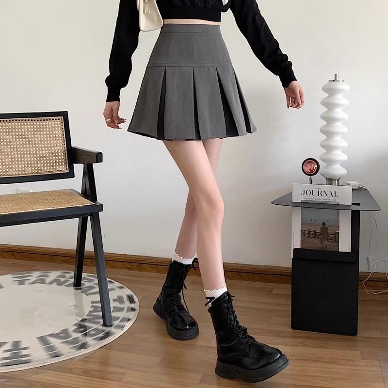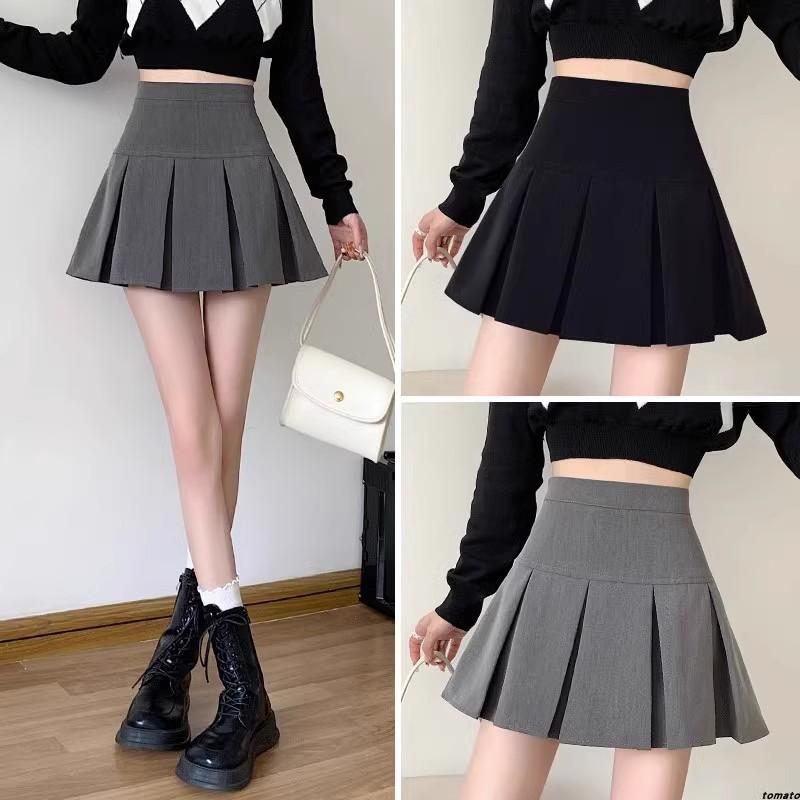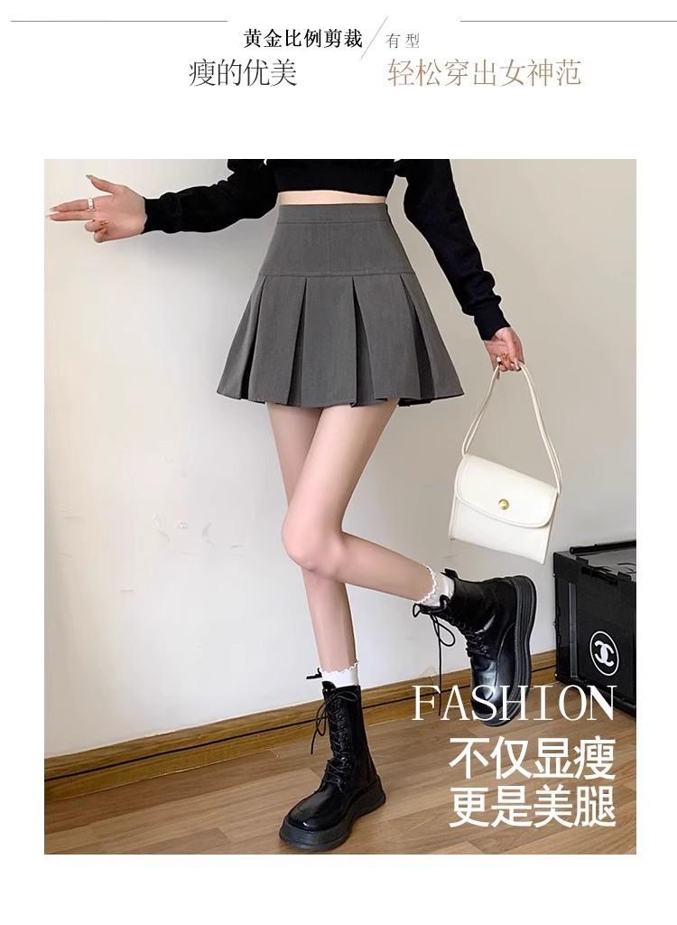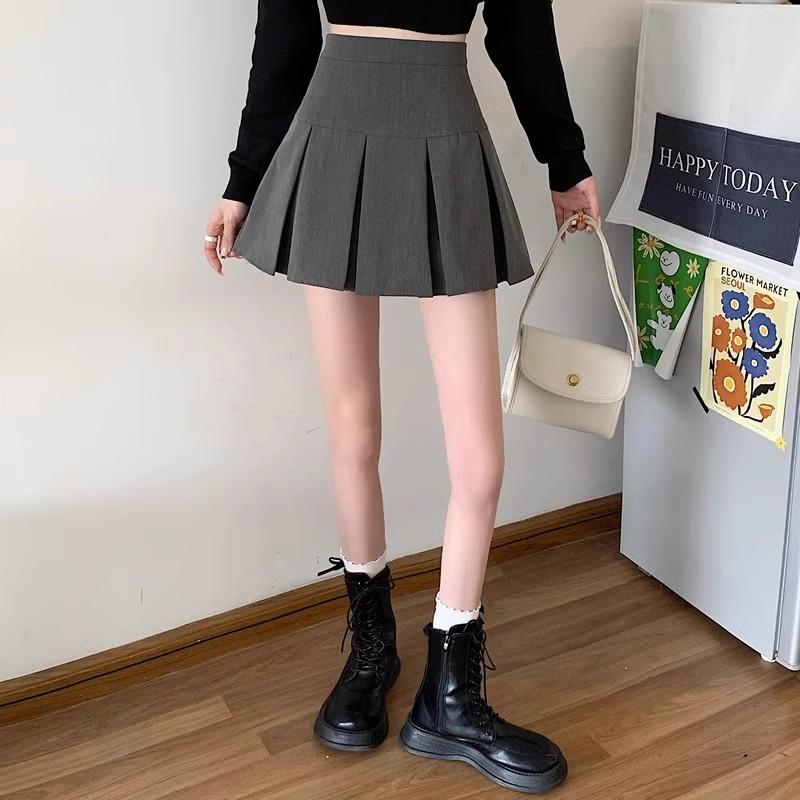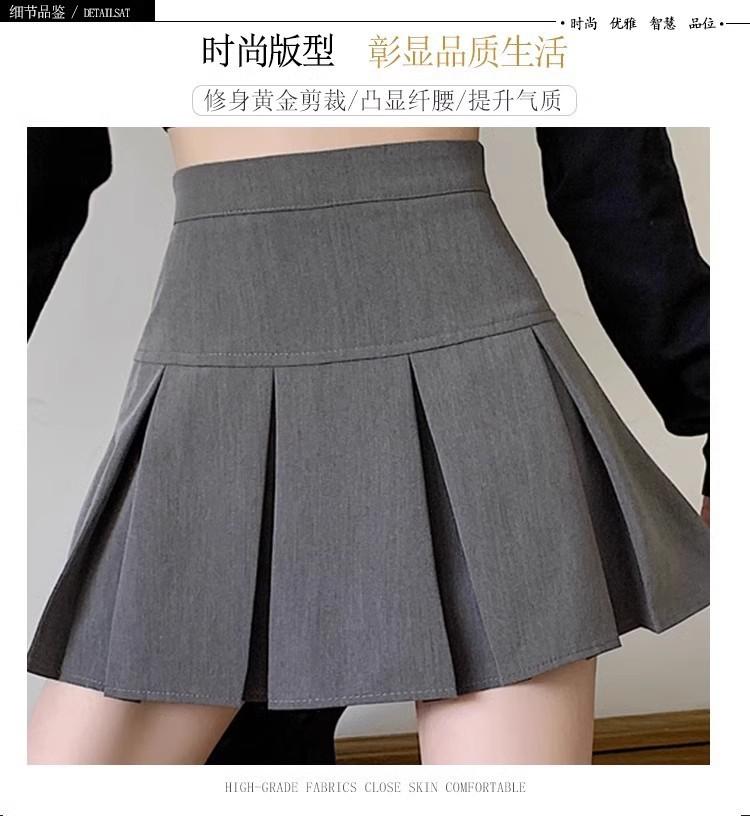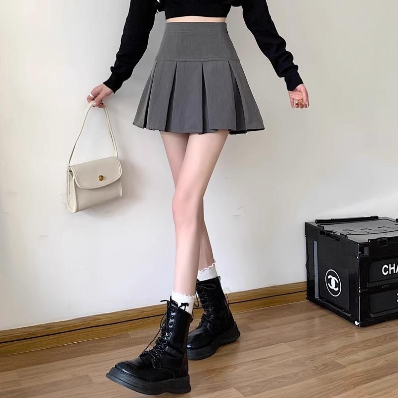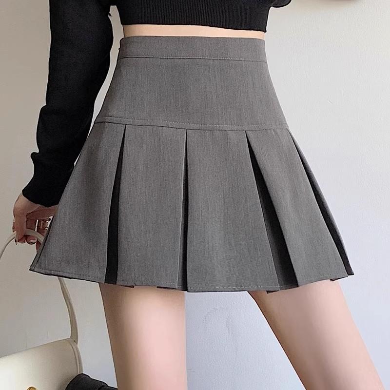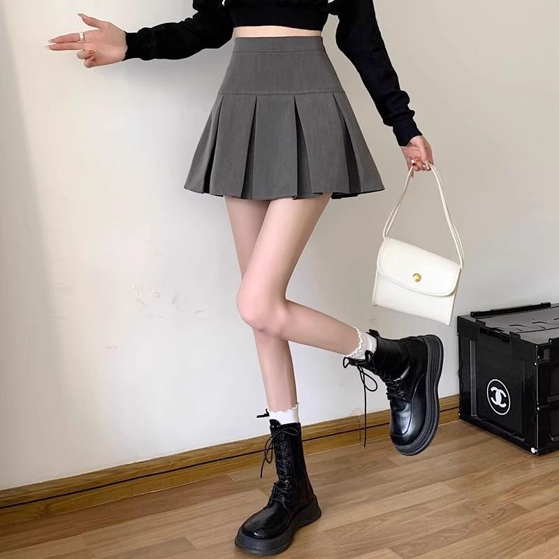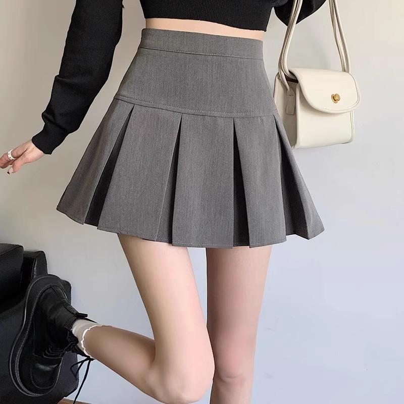2025 nueva falda corta línea A anti-exposición falda midi plisada gris mujer primavera verano adelgazante cintura alta falda paraguas abullonada