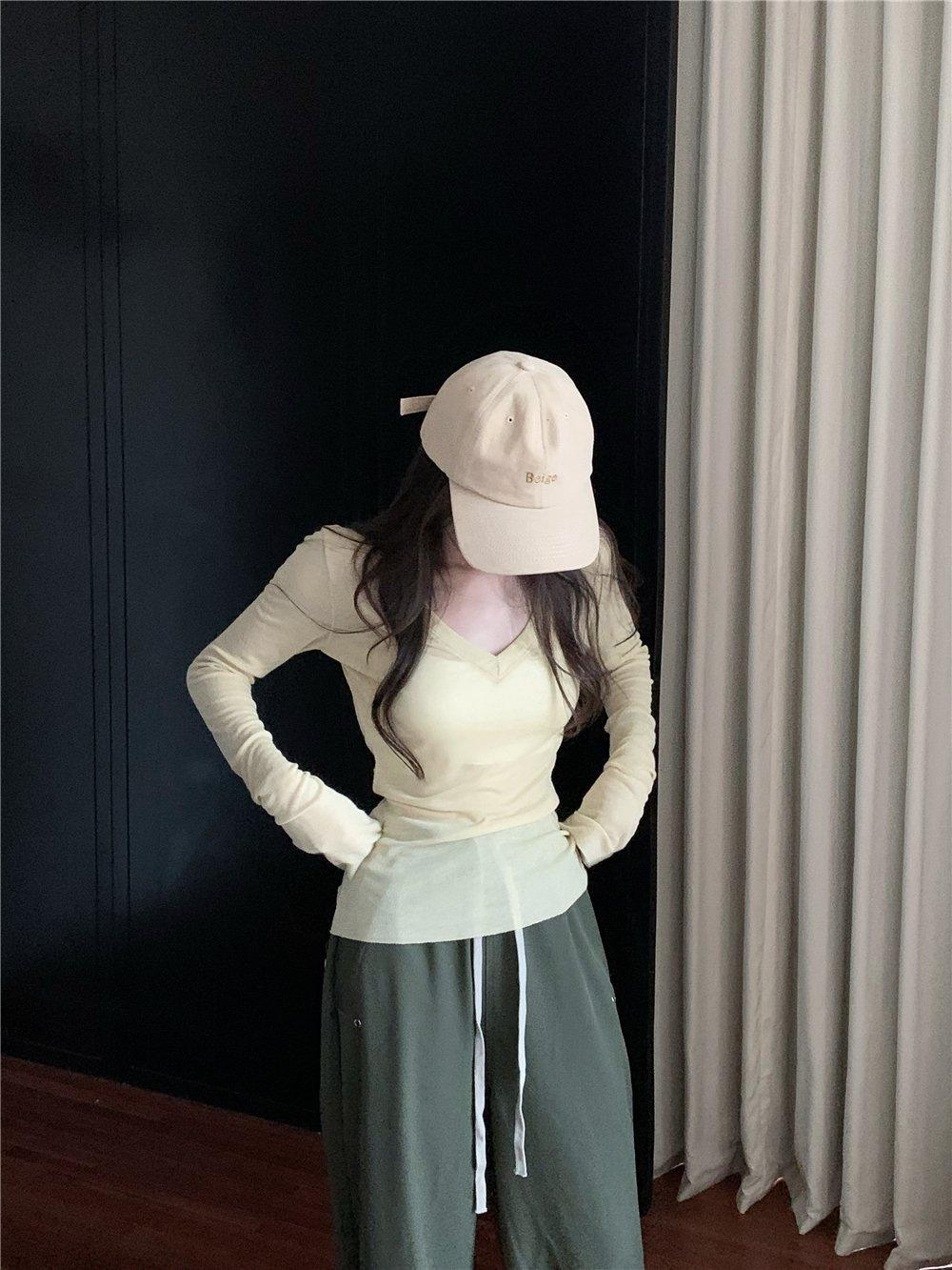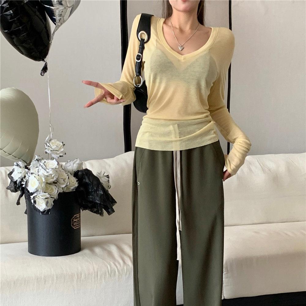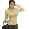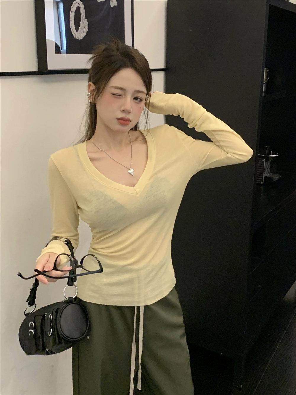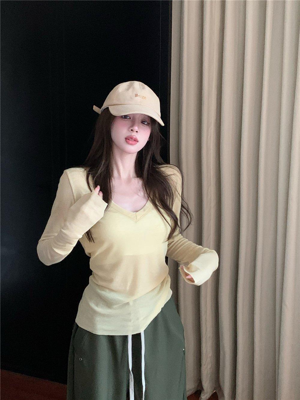 Chica Especia de Otoño Manga Larga Ajustado Cintura Ajustada Ropa Protectora del Sol Camiseta Combinable Deseo Puro Sexy Nicho Moda Top