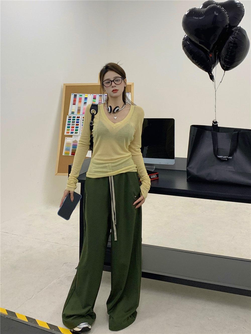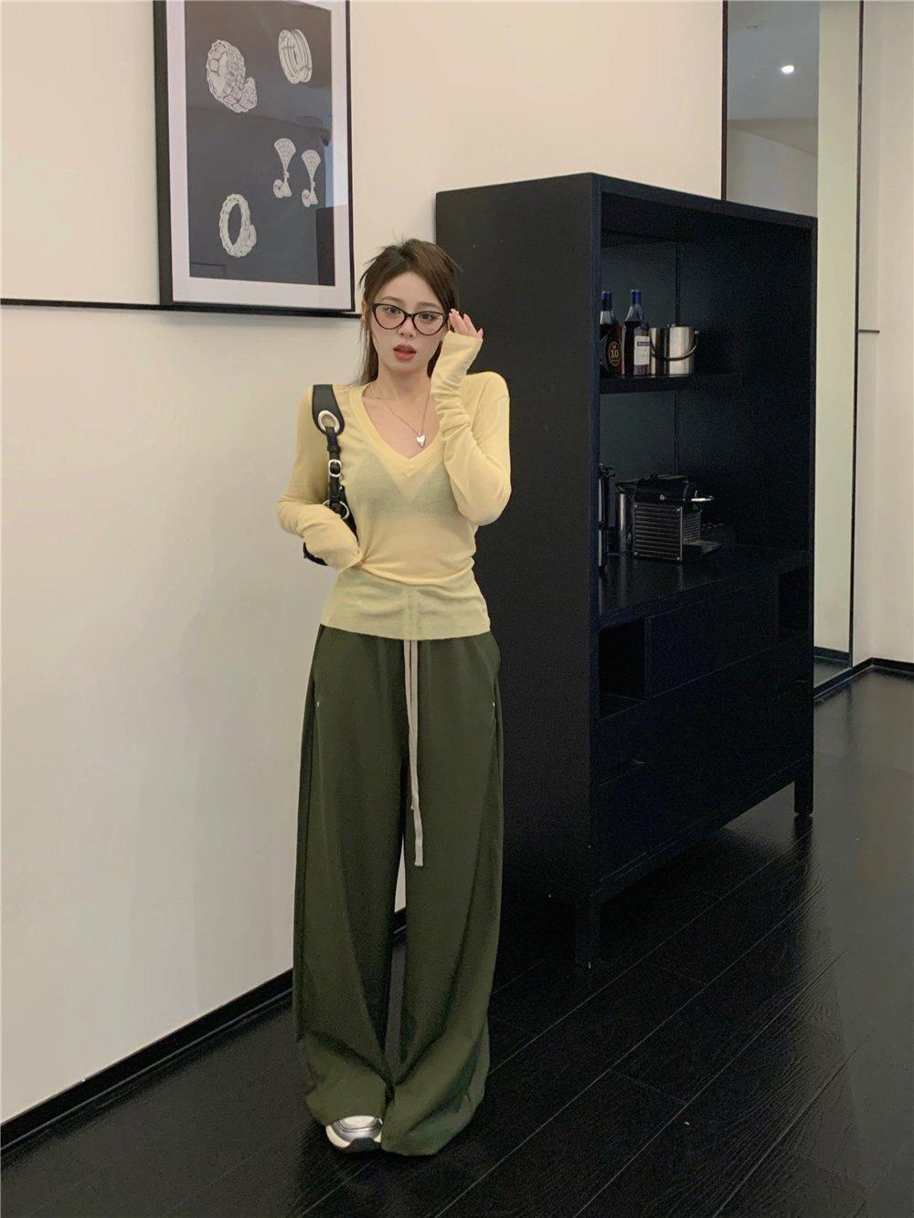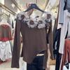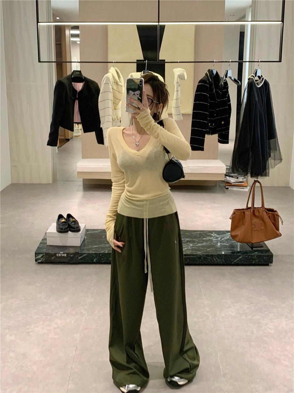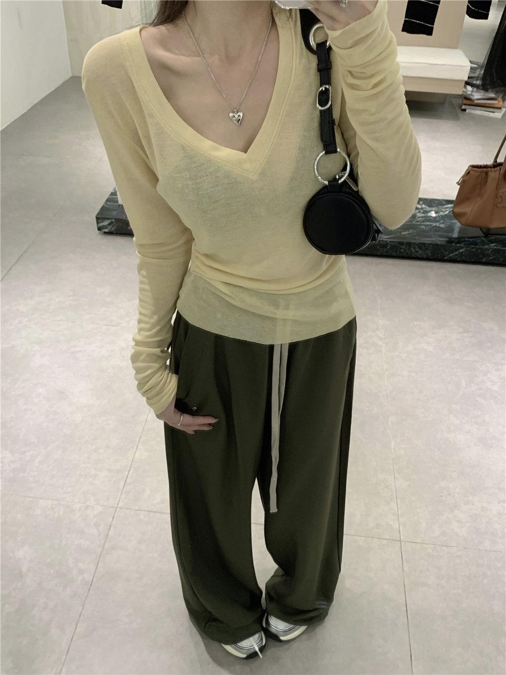 Chica Especia de Otoño Manga Larga Ajustado Cintura Ajustada Ropa Protectora del Sol Camiseta Combinable Deseo Puro Sexy Nicho Moda Top