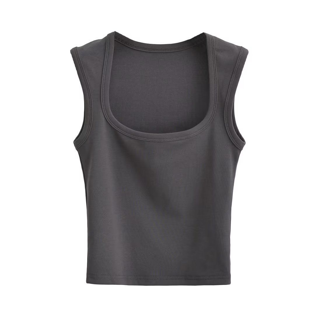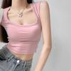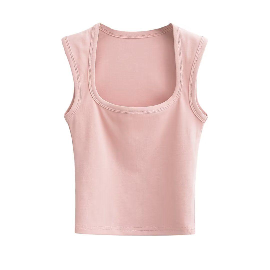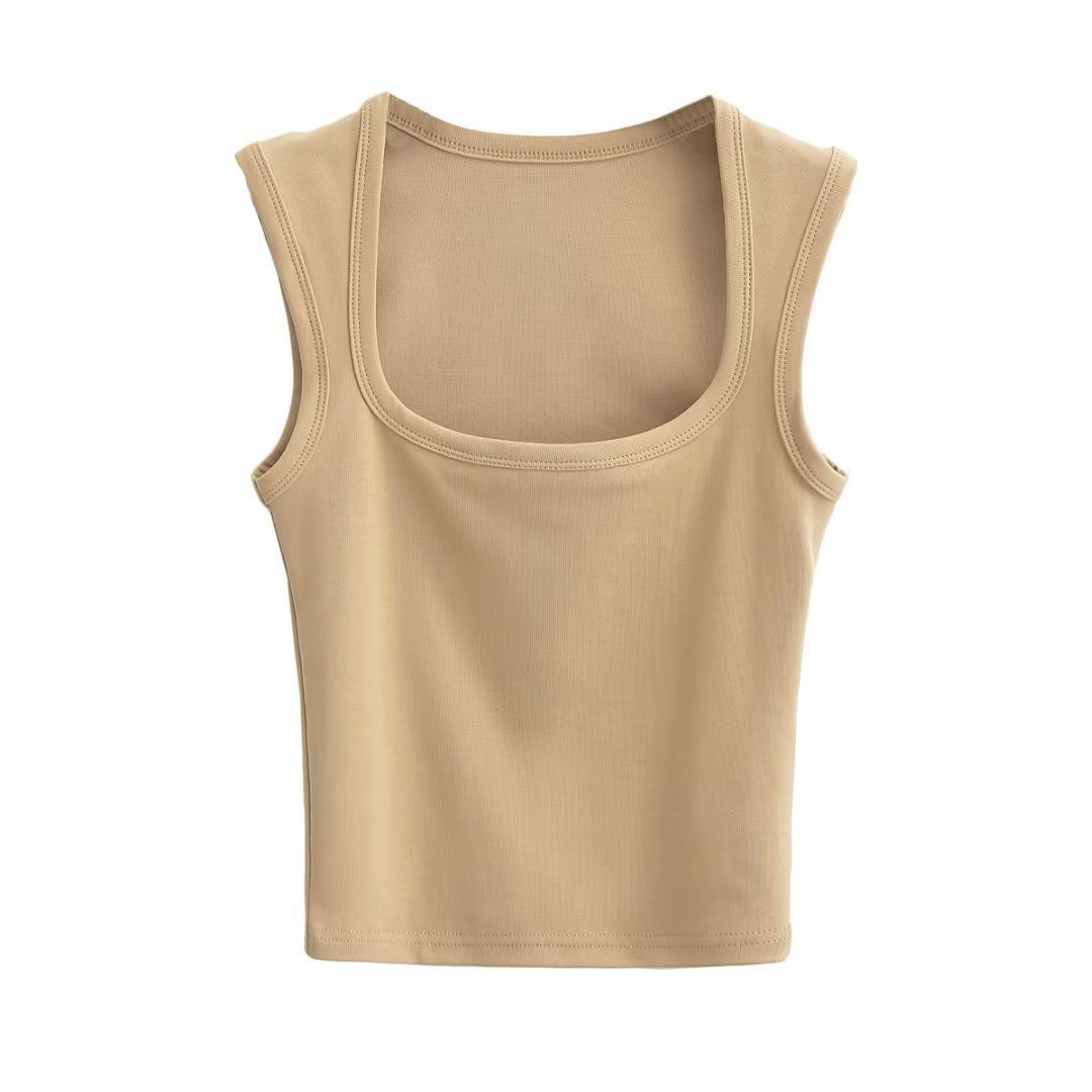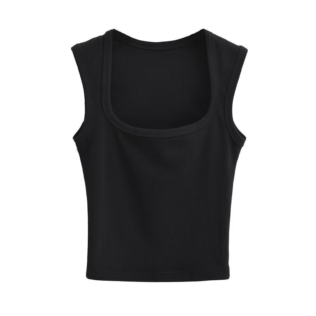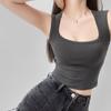 2025 Nuevo Americano Retro Cuello Cuadrado Profundo Tirantes Anchos Camisola Slim Corto Top Chica Caliente Capa Base