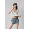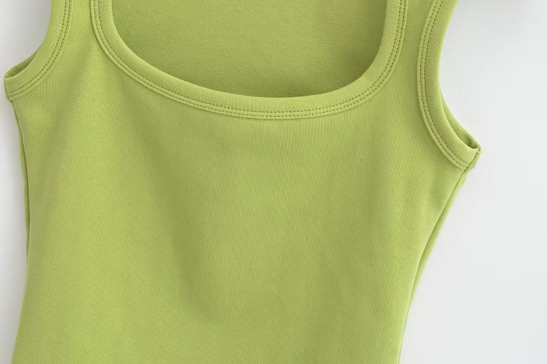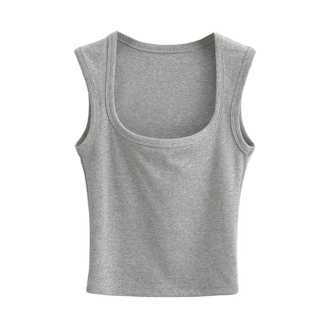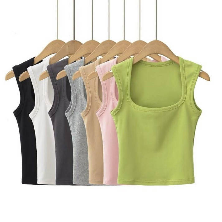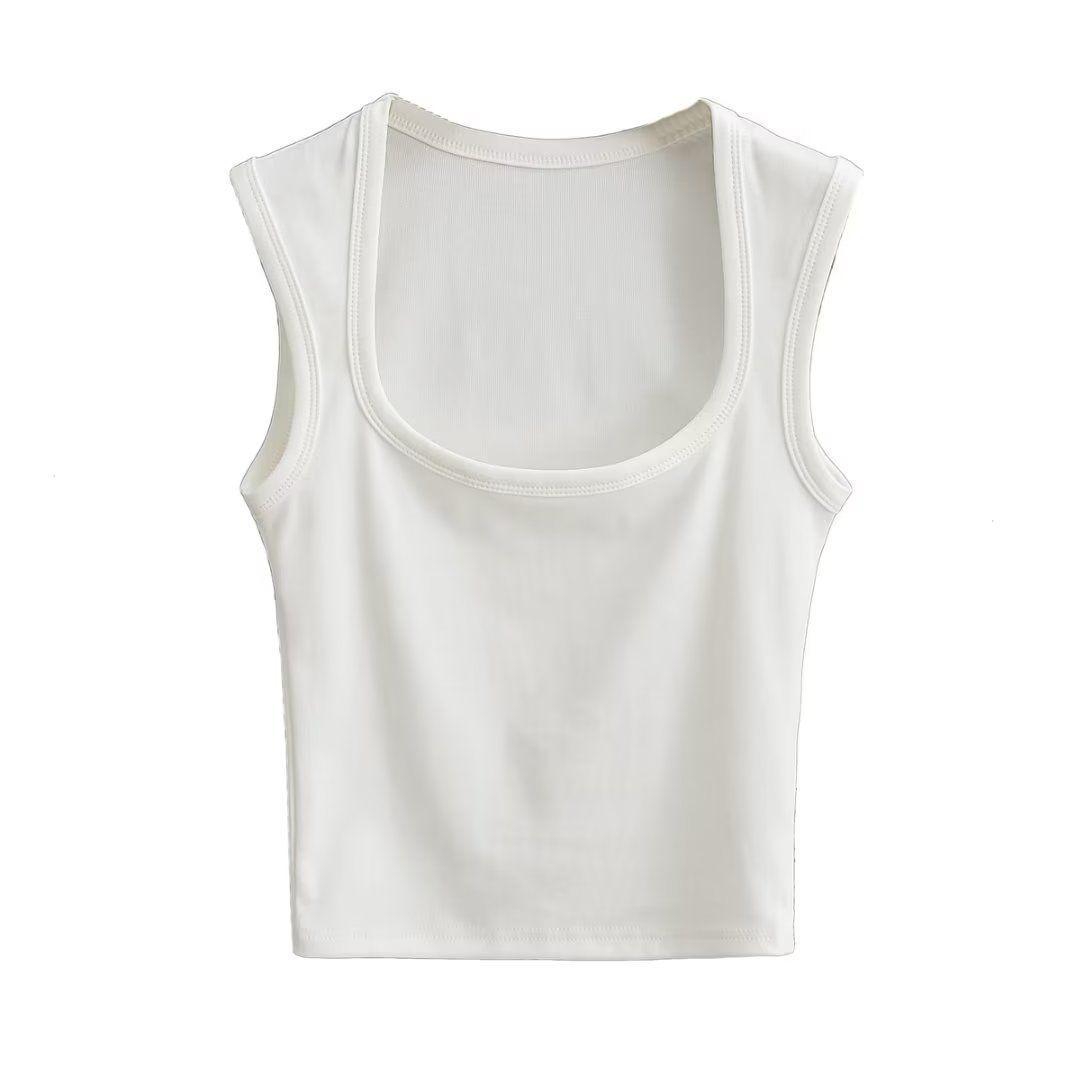 2025 Nuevo Americano Retro Cuello Cuadrado Profundo Tirantes Anchos Camisola Slim Corto Top Chica Caliente Capa Base