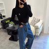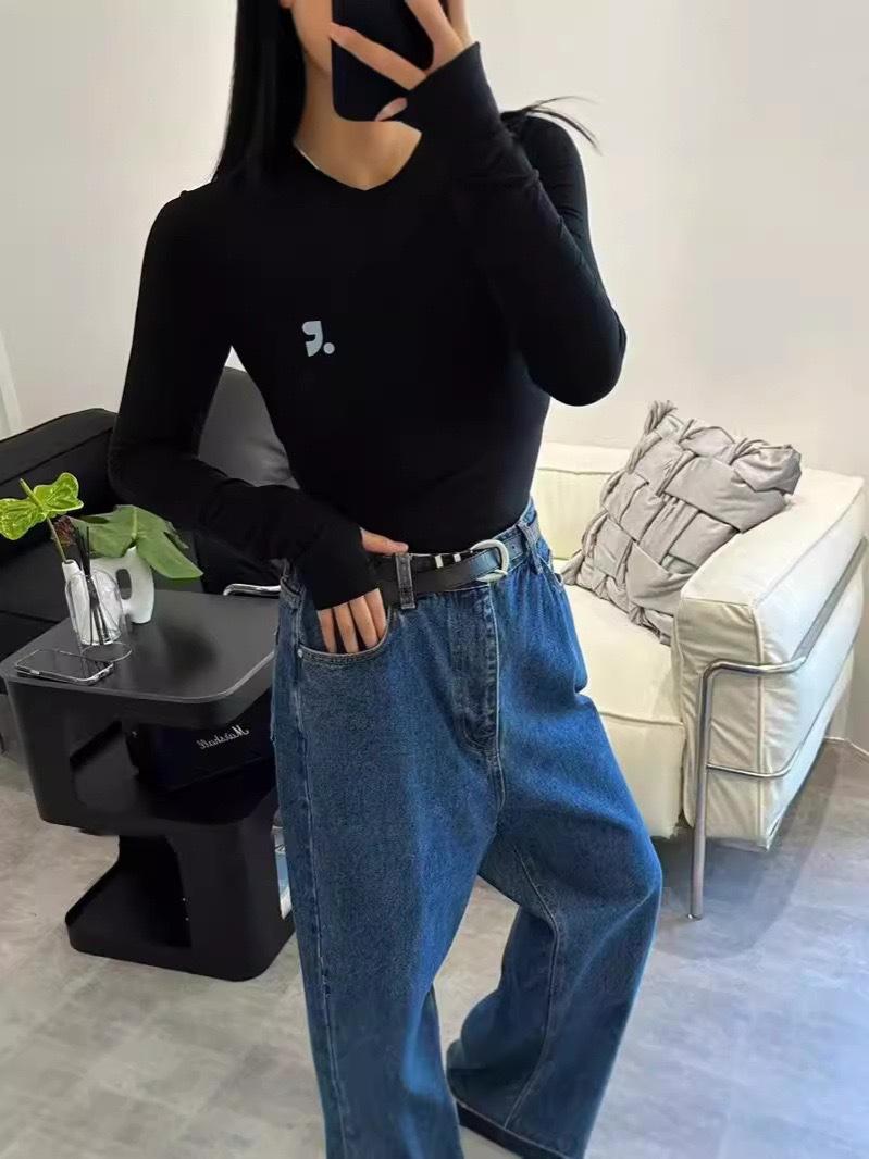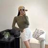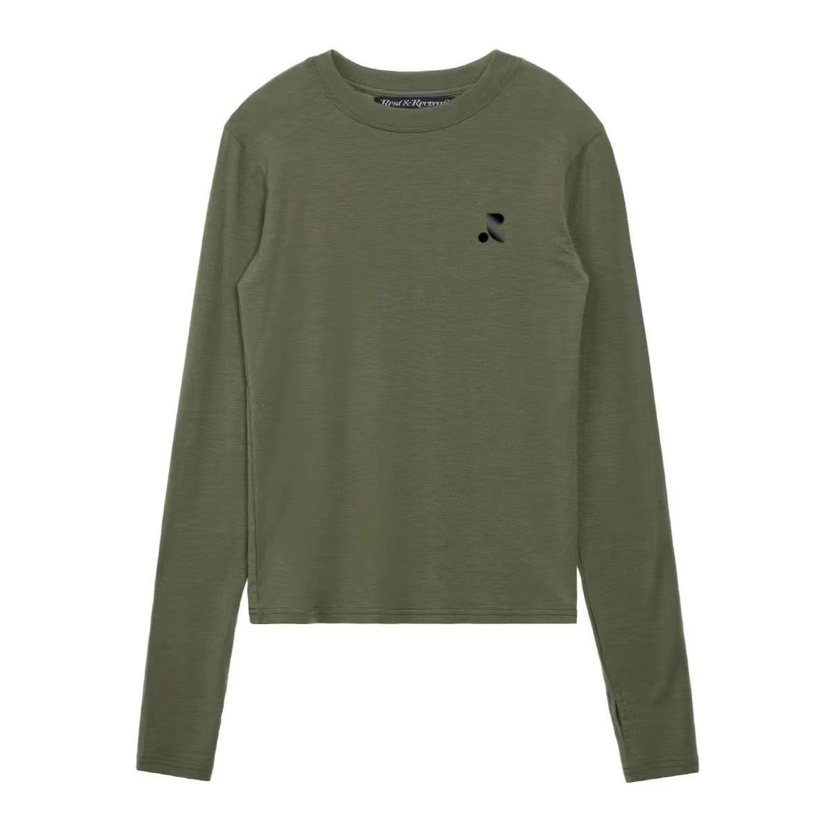 Camiseta de Manga Larga Ajustada para Mujer Estilo Zhao Lusi con Estampado de Letra Rr, Camisa de Protección Solar, Estilo Casual Japonés y Coreano