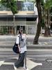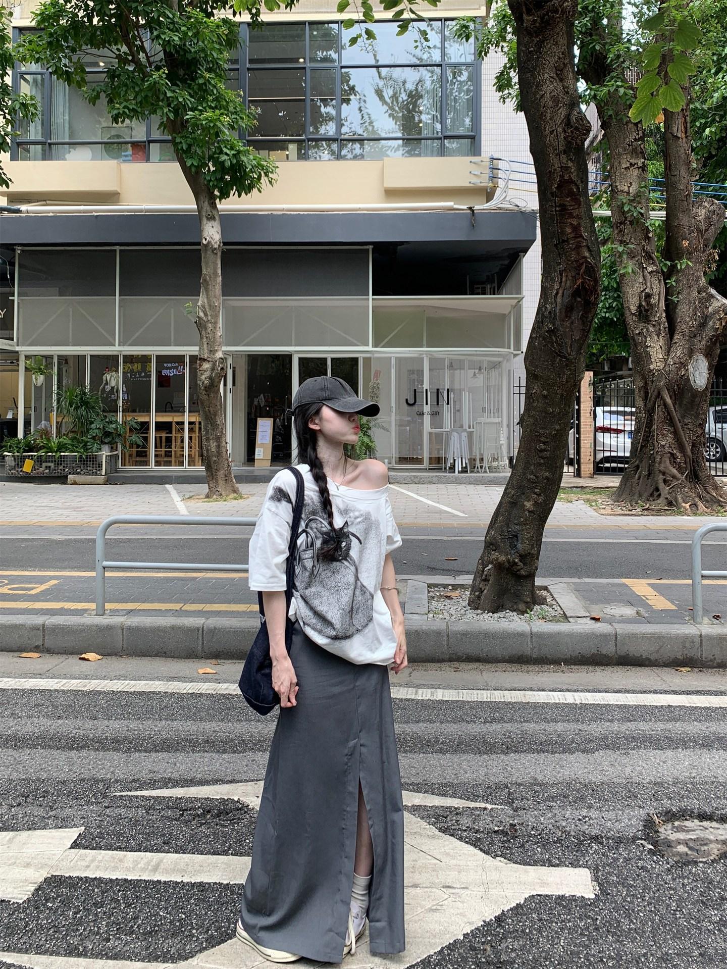 Kitten off-shoulder short sleeves, Gray skirt
