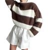 Suéter Corto Rayado Mujer 2025 Otoño/Invierno Nuevo Camiseta Base Cintura Alta Top Petite