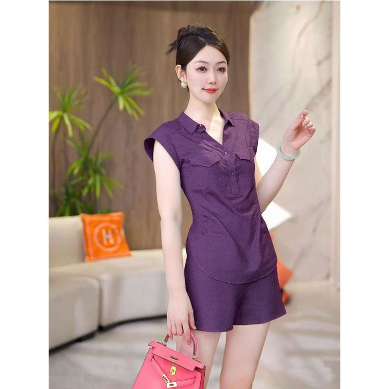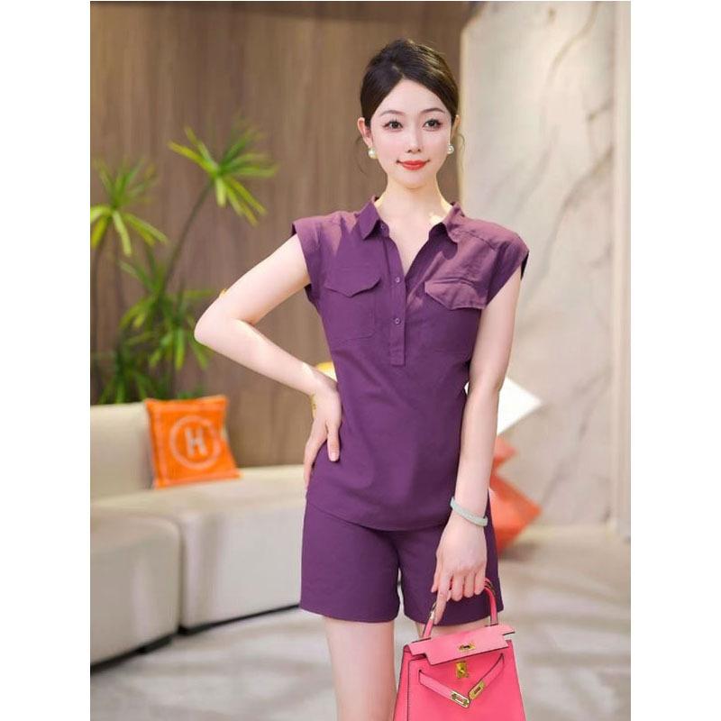 Estación Europea 2025 Verano Nuevo Conjunto de Moda de Dos Piezas para Mujer Color Sólido Camisa sin Mangas con Cuello Cuadrado + Shorts de Pierna Ancha