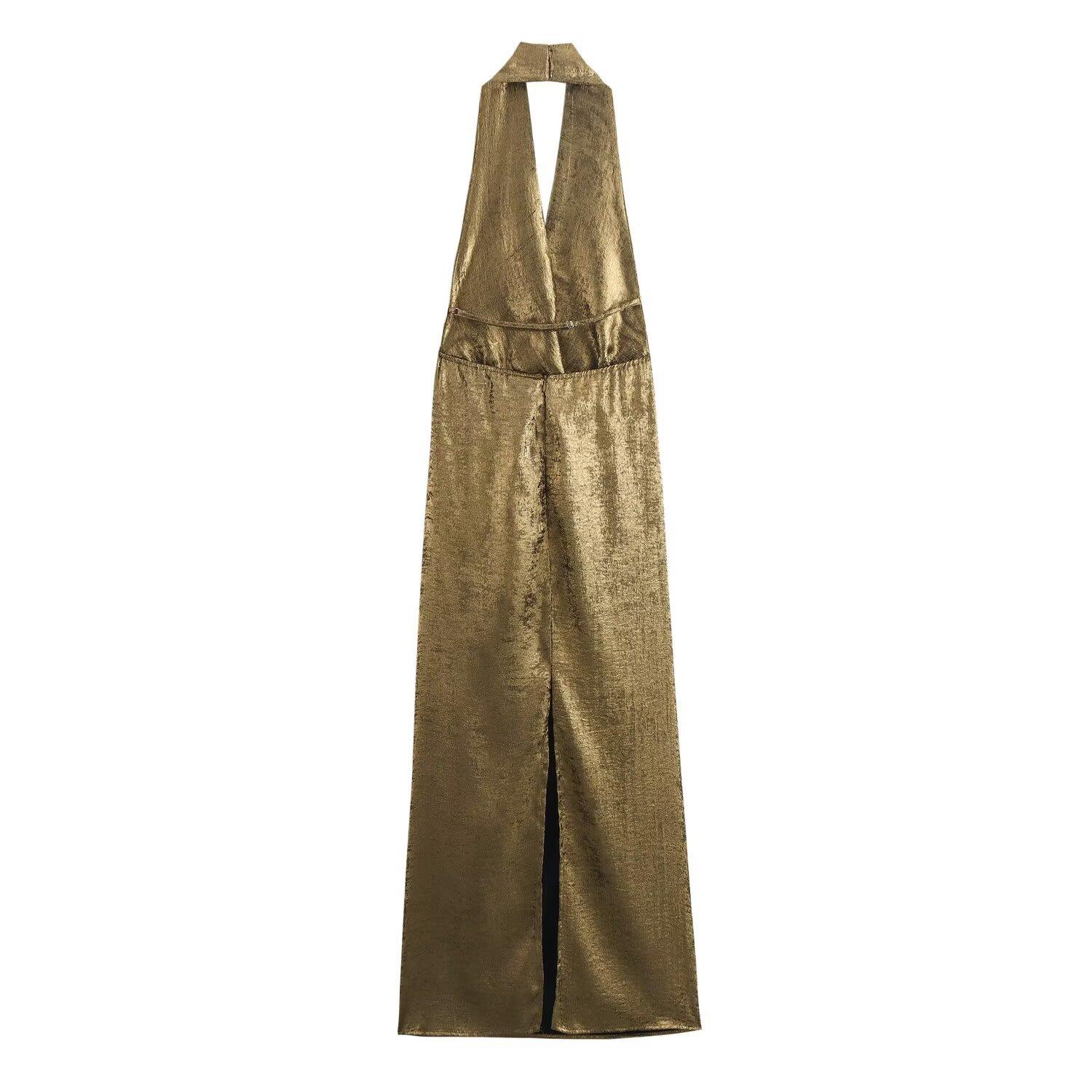 Ropa de Otoño para Mujer 2024 Nuevo Estilo Europeo y Americano Moda Slim Halter Cuello Vestido Sexy