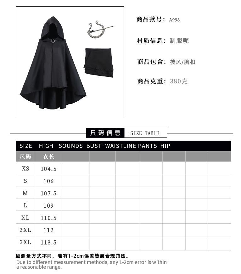 Capa Medieval Transfronteriza Disfraz Cos Halloween Capa con Capucha Capa Retro Disfraz de Personaje para Actuación Escénica