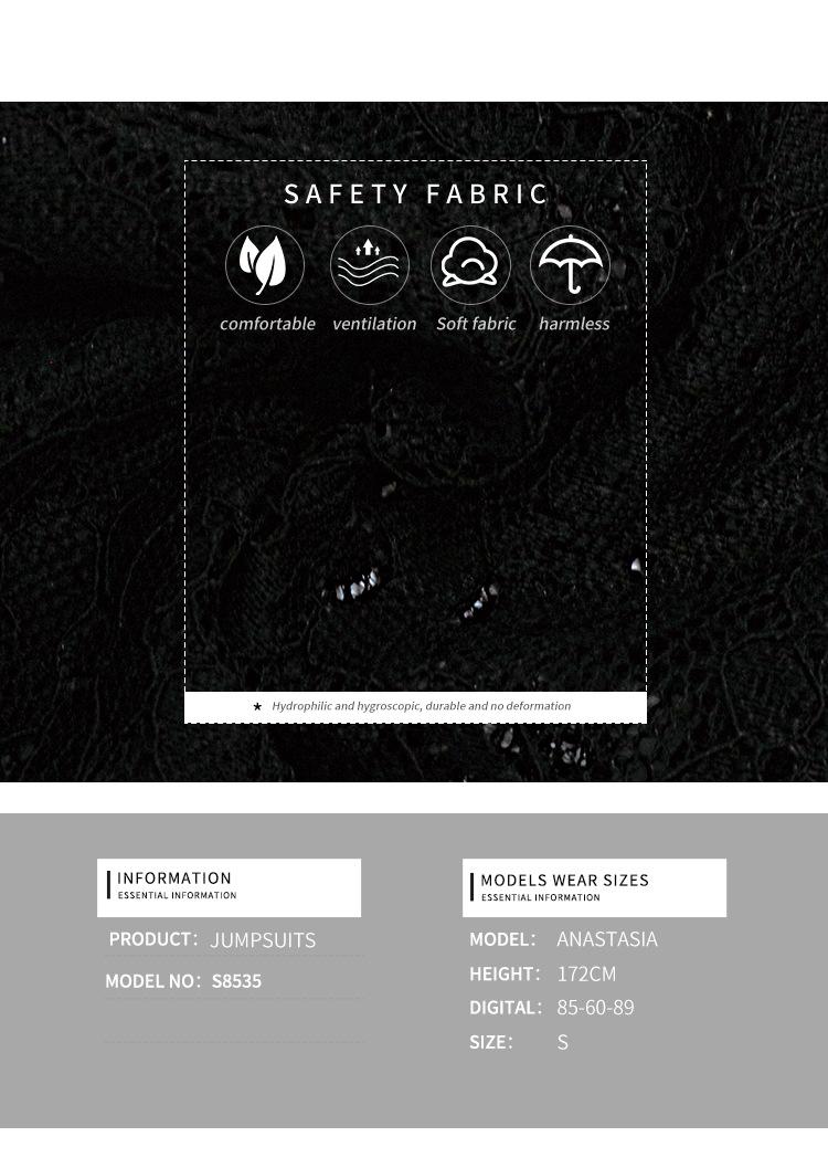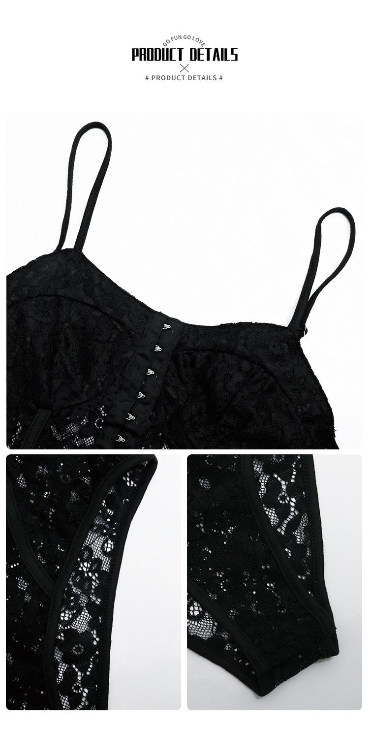 Amazon Europa y América Ropa de Mujer Transfronteriza Chica Caliente Encaje Body Transparente Sexy Tirantes Espagueti Encaje Patchwork Mono