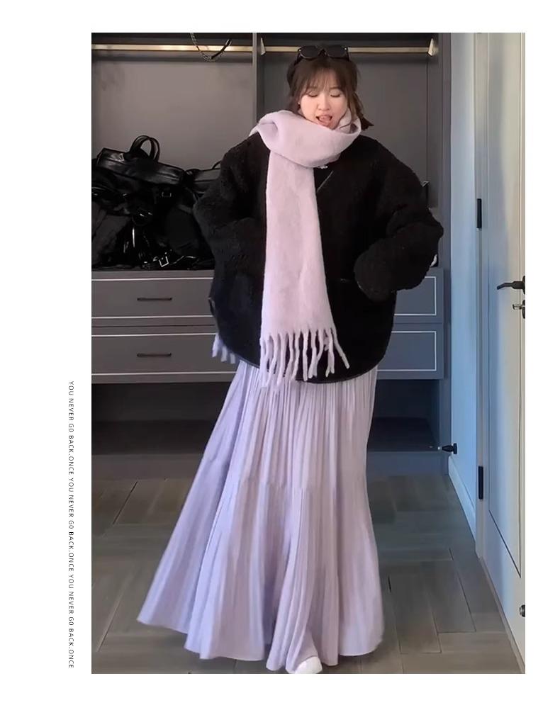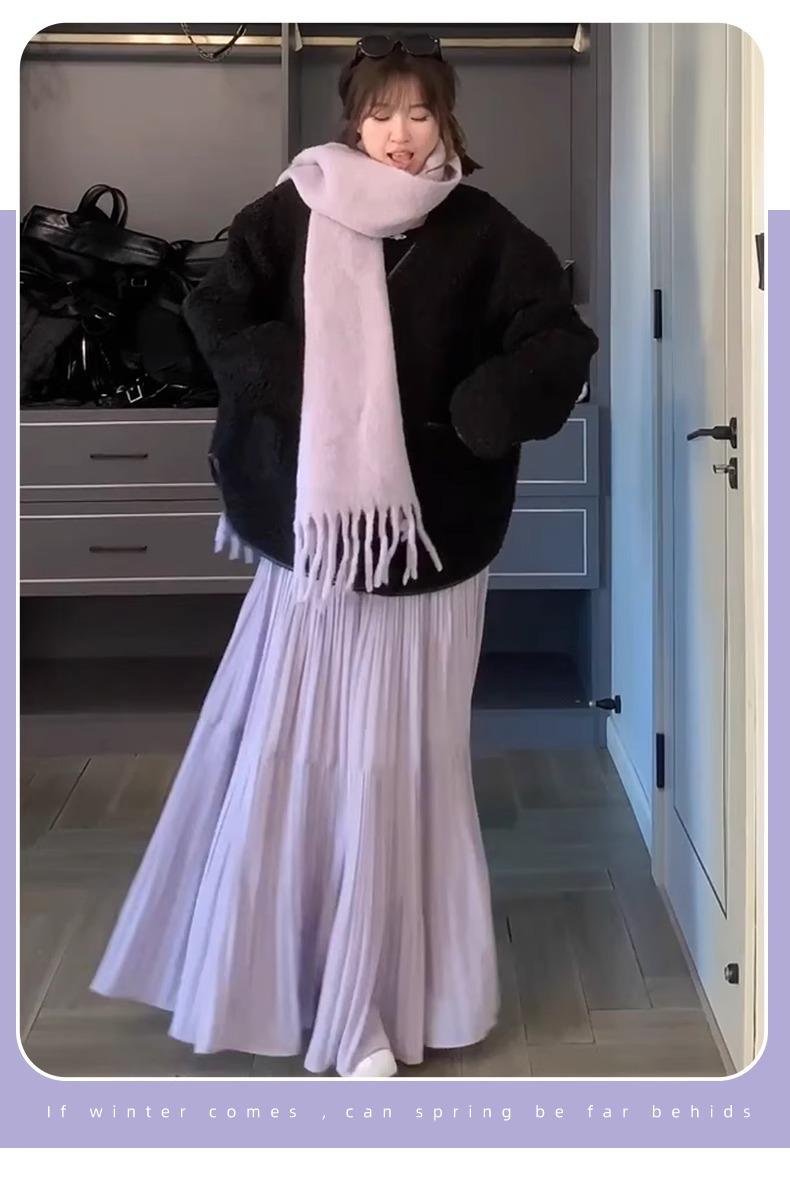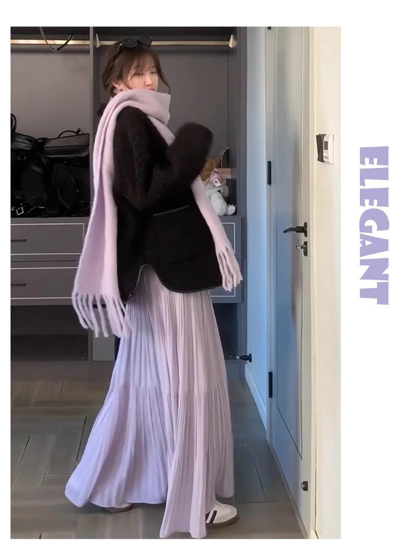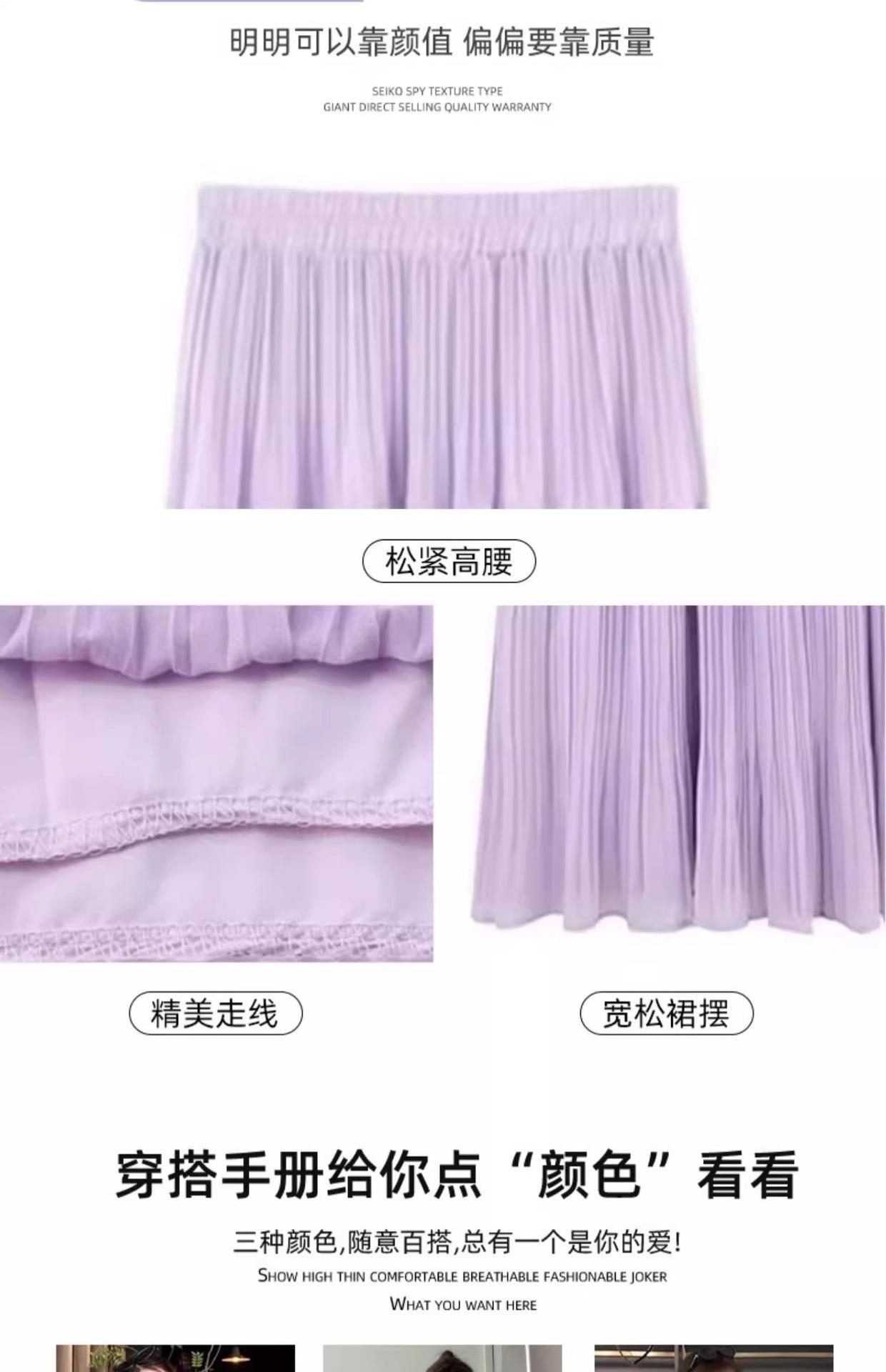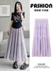 Falda Morada Mujer 2025 Verano Nueva Falda Plisada Midi Pequeña Cintura Alta Hada Línea A Falda Grande de Vuelo