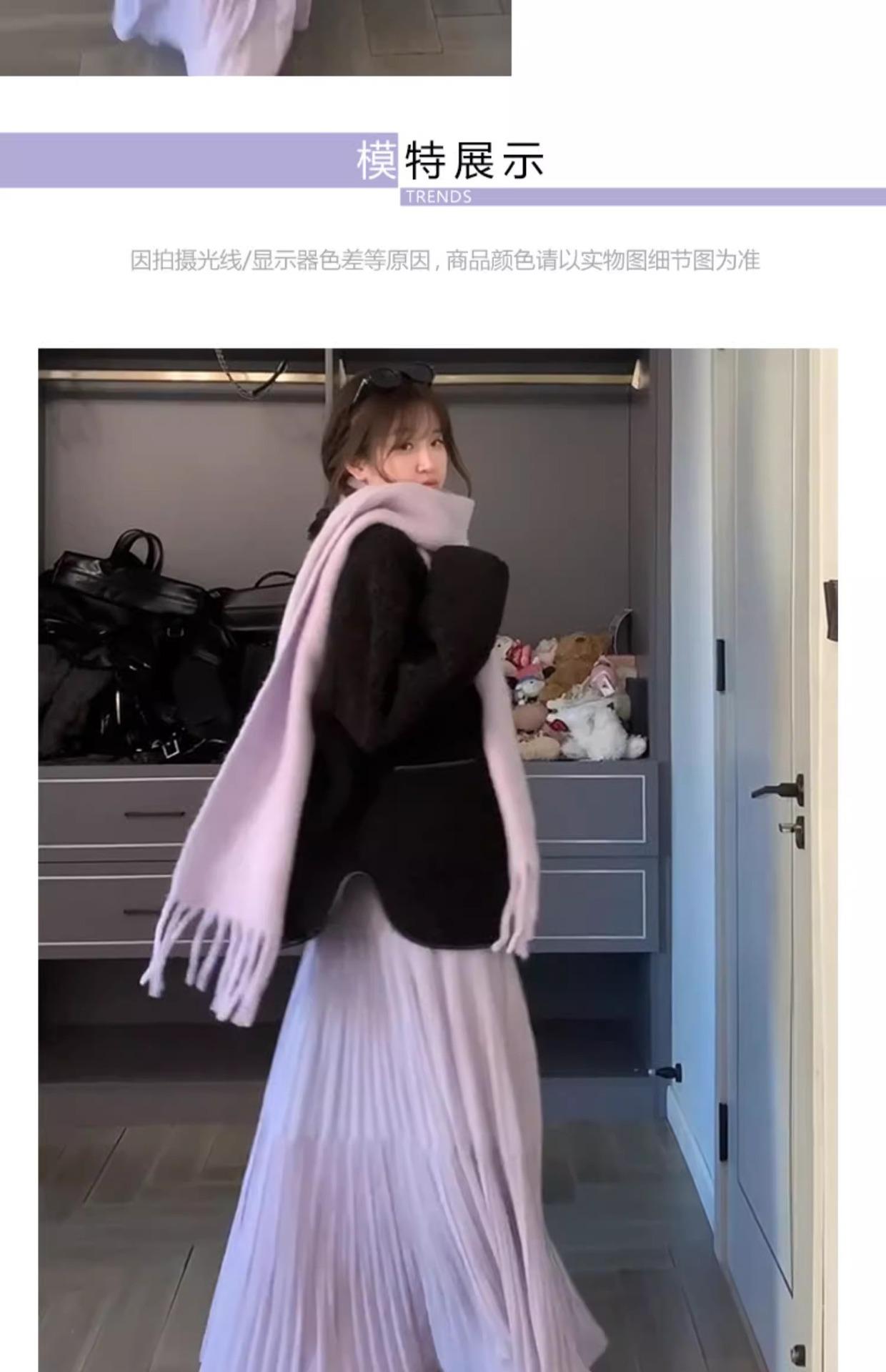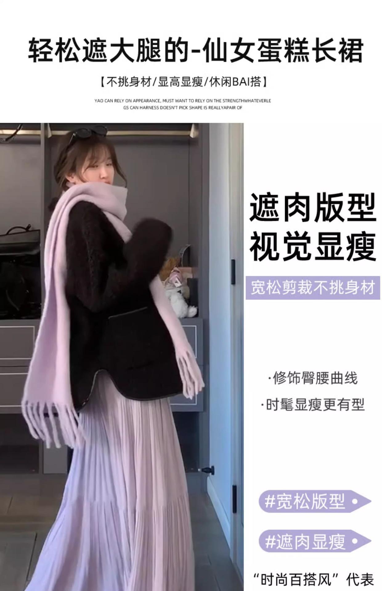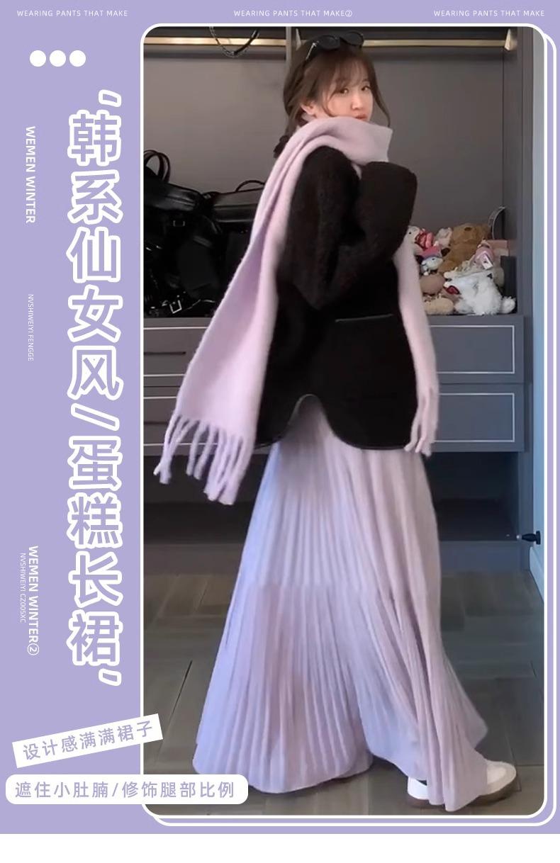Falda Morada Mujer 2025 Verano Nueva Falda Plisada Midi Pequeña Cintura Alta Hada Línea A Falda Grande de Vuelo