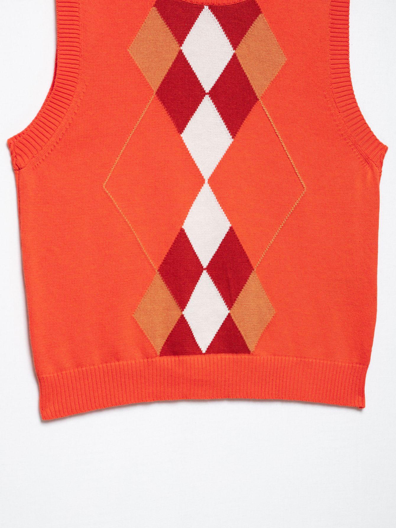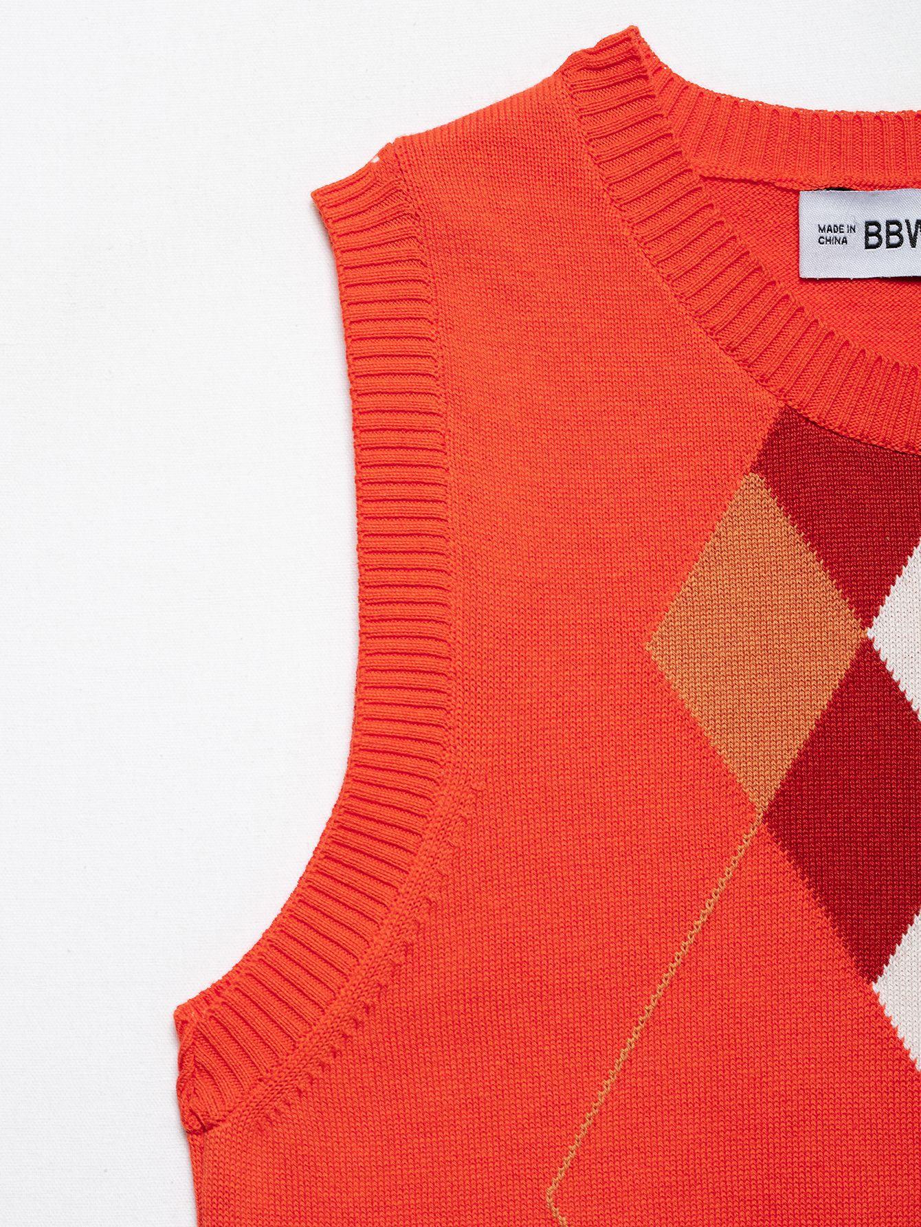 Chaleco de Punto Rombos Estilo Retro Británico Popular Europeo y Americano Transfronterizo Reductor de Edad