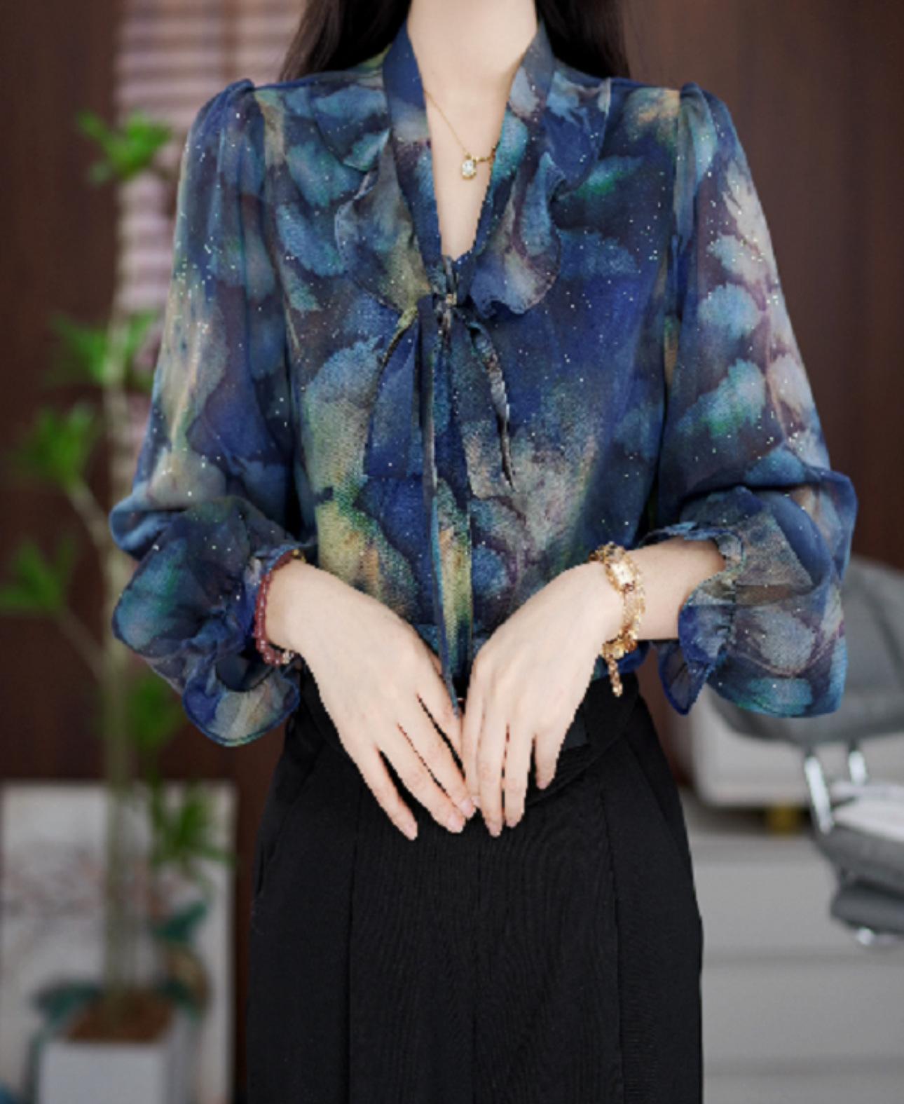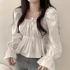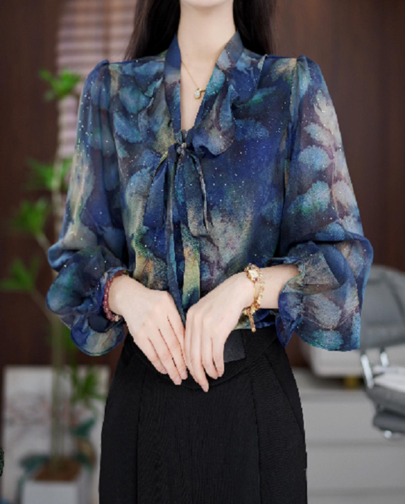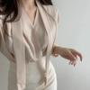 2025 Verano Nuevo Estilo Francés Elegante Elegante Lazo Delgada Camisa de Gasa Dulce Top Combinable para Mujer Trendy