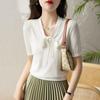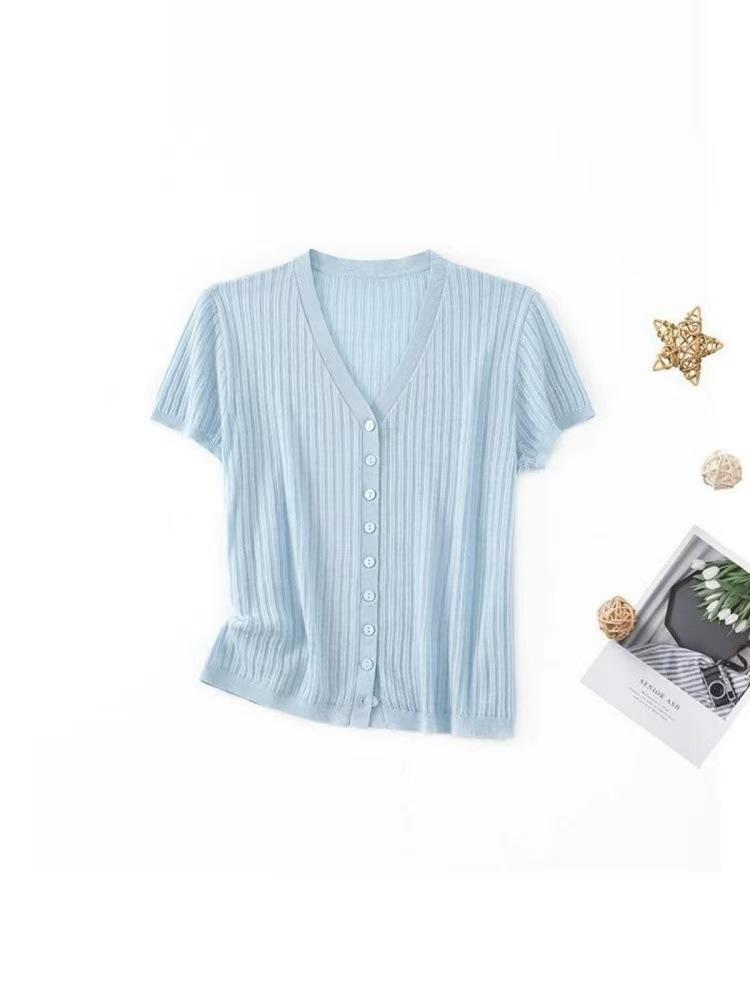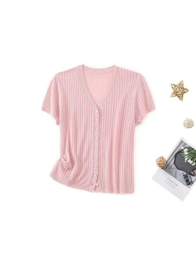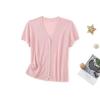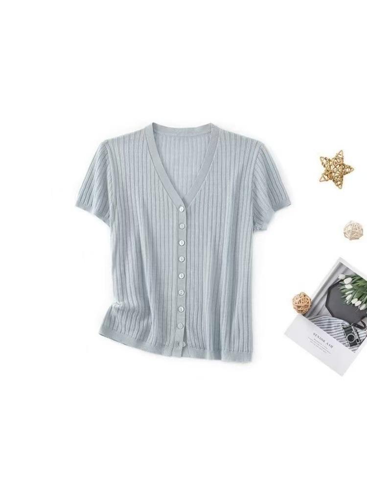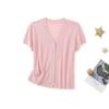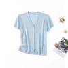 Cárdigan de Verano de Tencel + Seda de Morera con Cuello en V Delgado de Manga Corta para Mujer 2025 Nuevo Versátil y Elegante Look Adelgazante Top de Color Puro