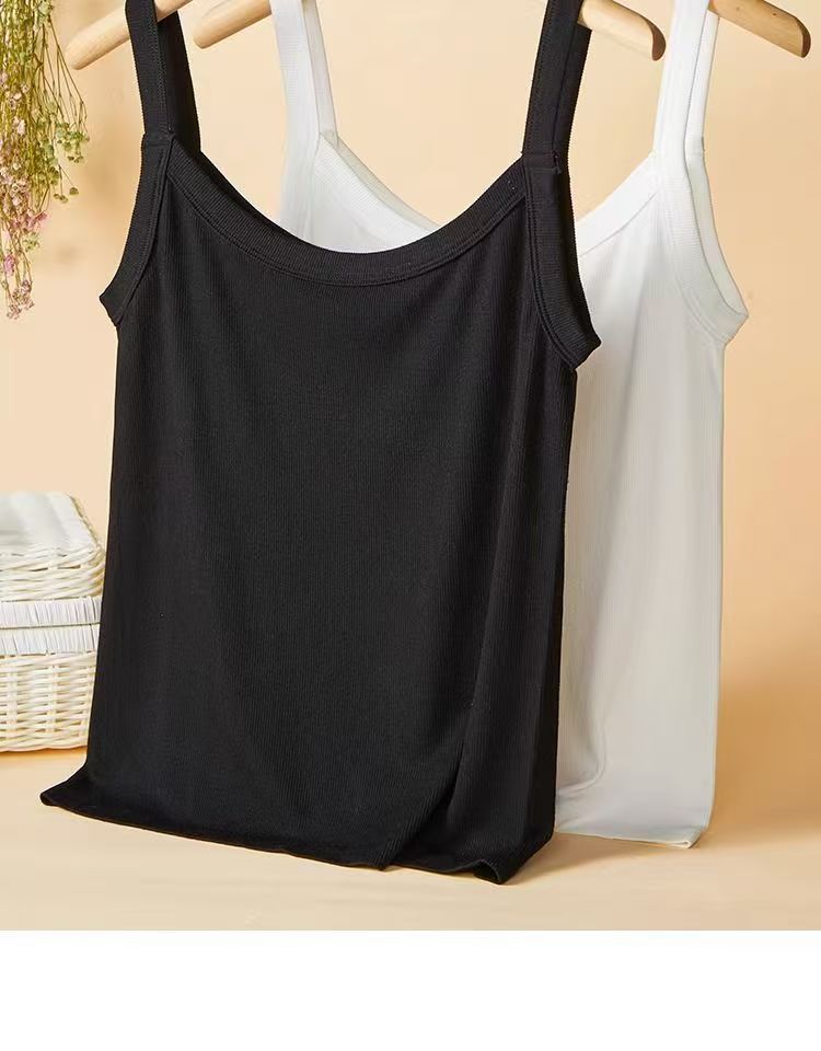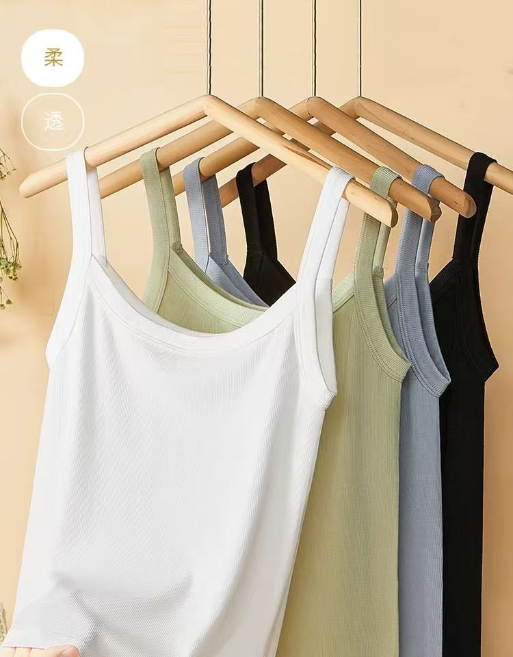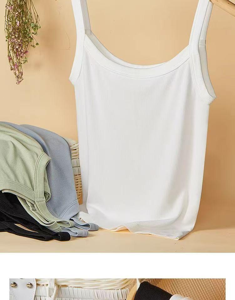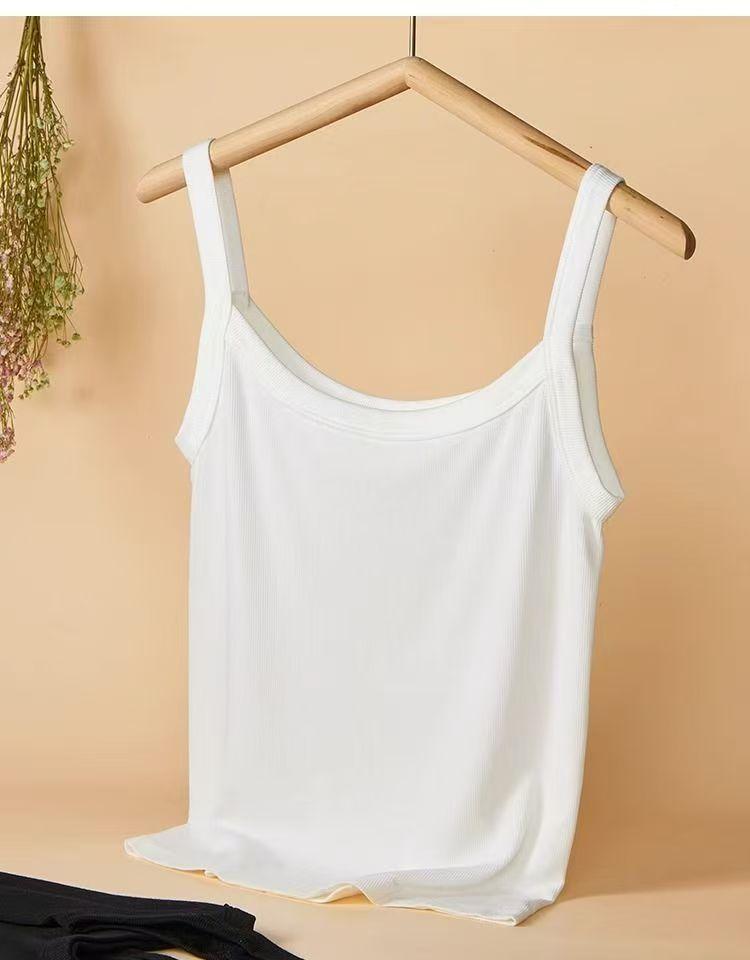 Nueva Camisola Blanca de Cuello Cuadrado con Hilo para Mujer con Tirantes Anchos para Ropa Interior para Cubrir el Busto y Ropa Exterior Top Delgado sin Mangas para Verano