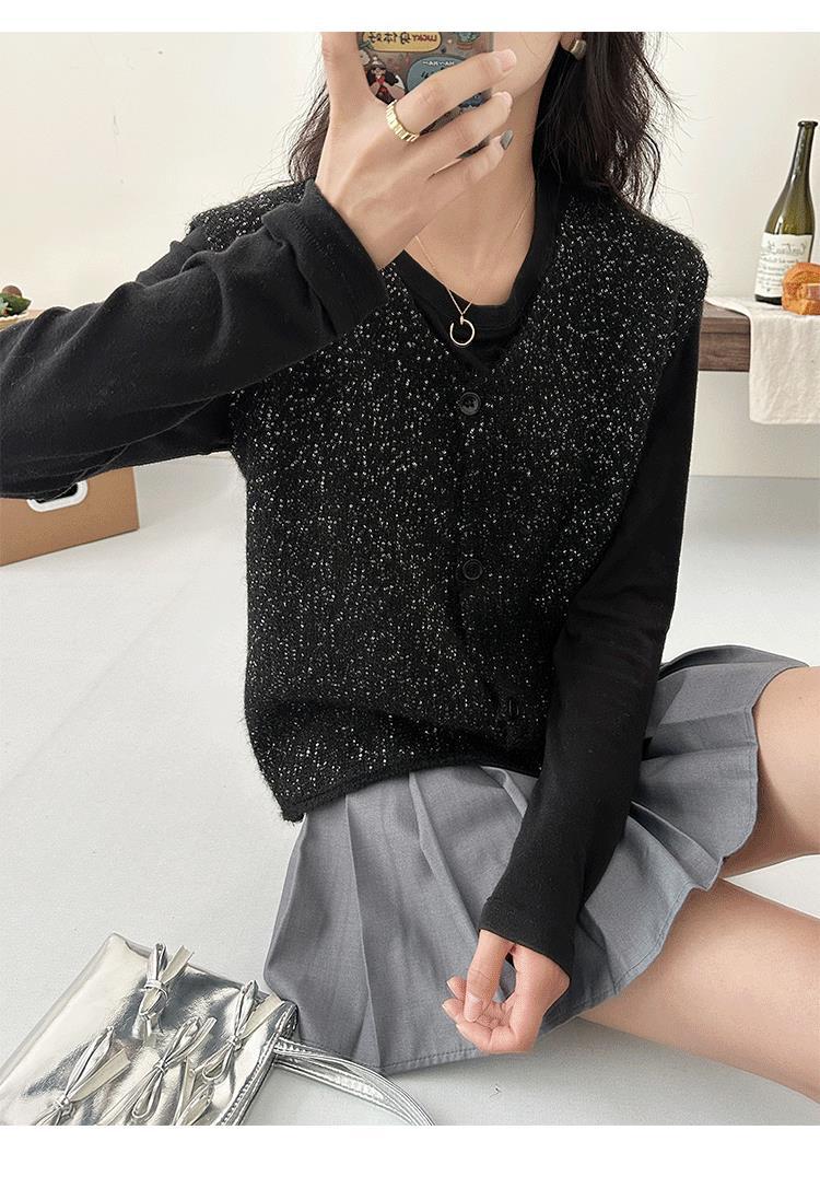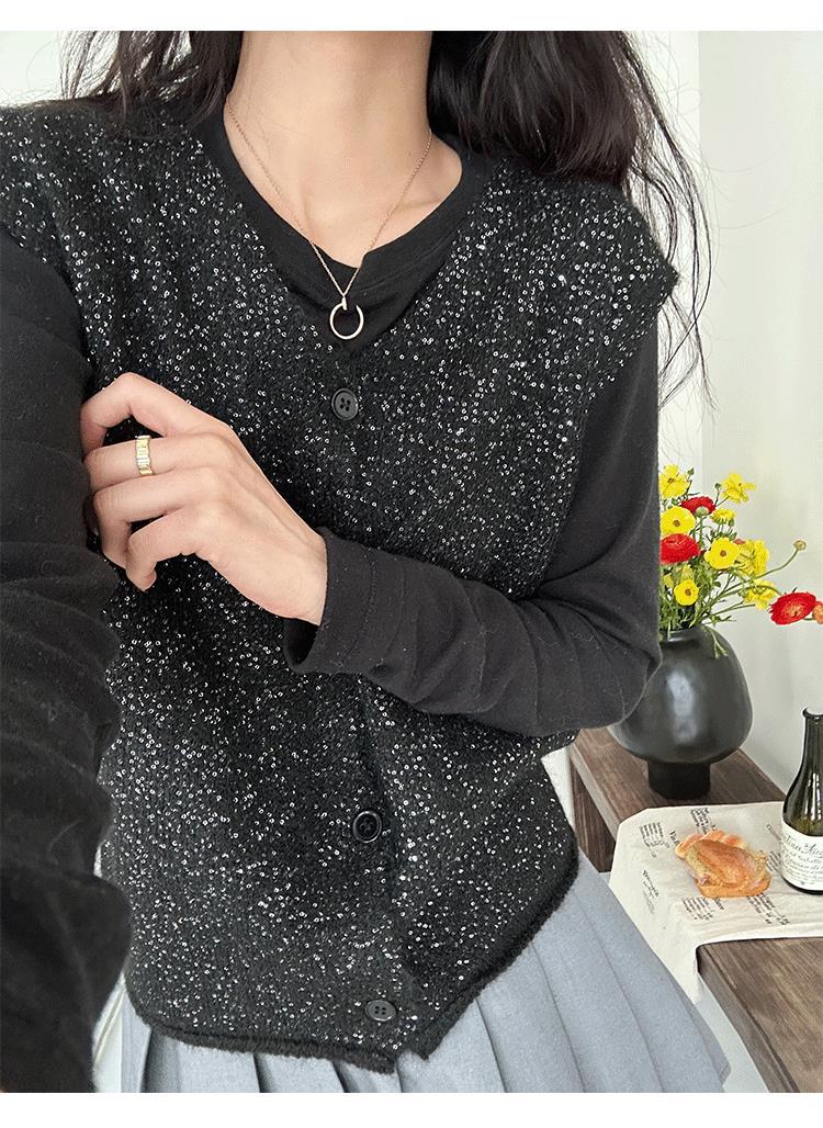 Chaleco de Punto con Lentejuelas con Sentido del Diseño para Mujer 2025 Nuevo Primavera Estilo Coreano Holgado Chaleco Chaleco Top