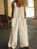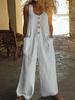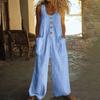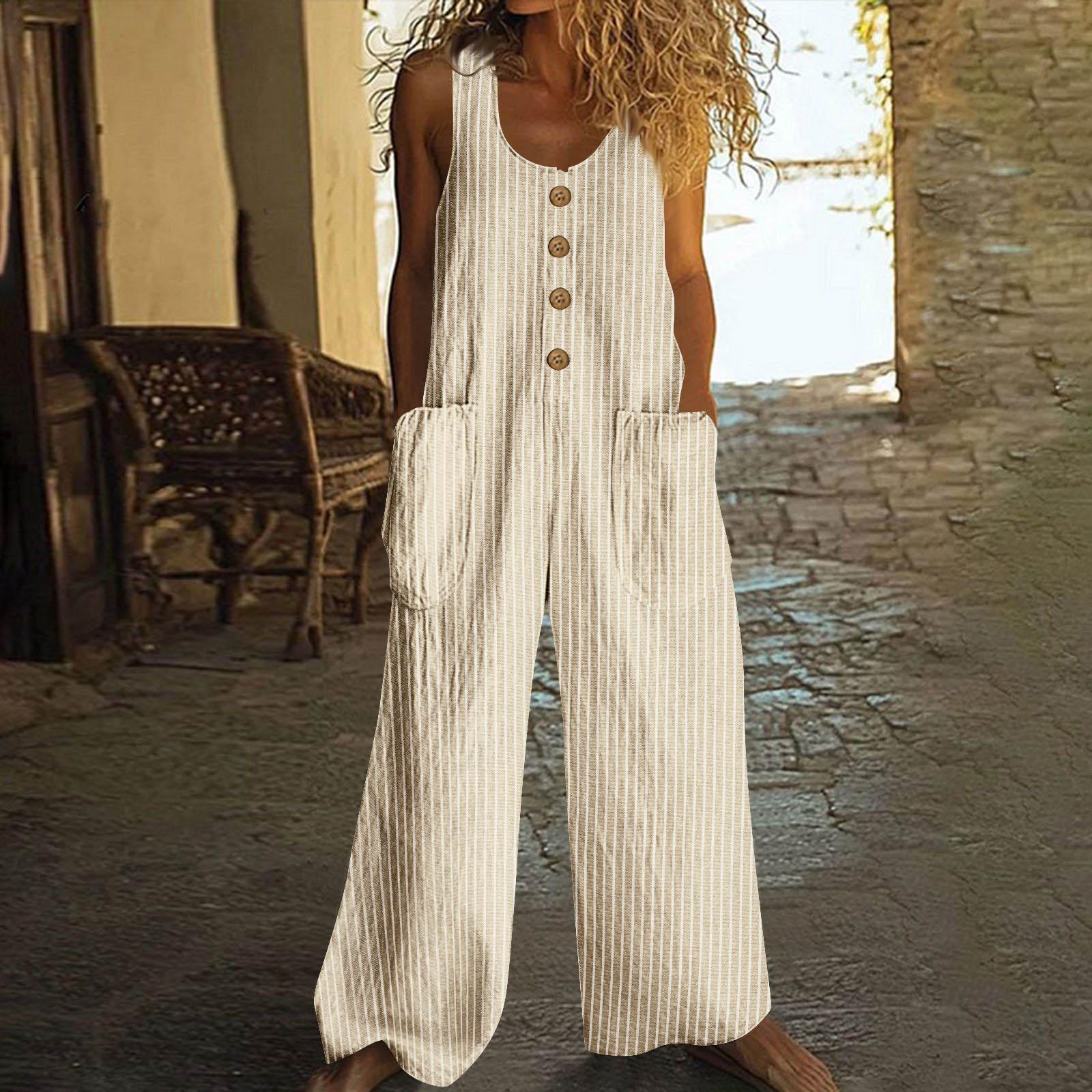 2025 Amazon Estación Independiente Transfronterizo Bolsillo con Botón Suelto Casual Rayado Algodón y Lino Mono con Tirantes para Mujer