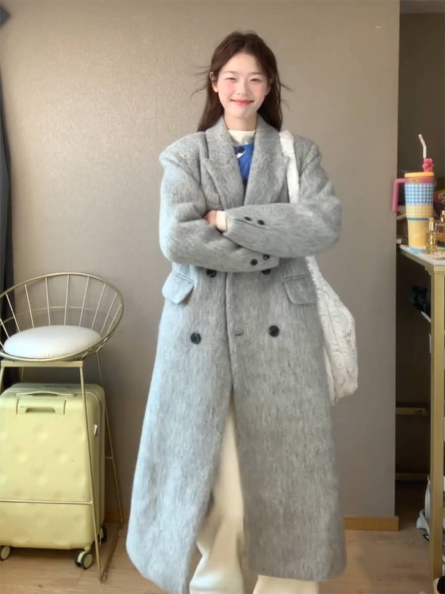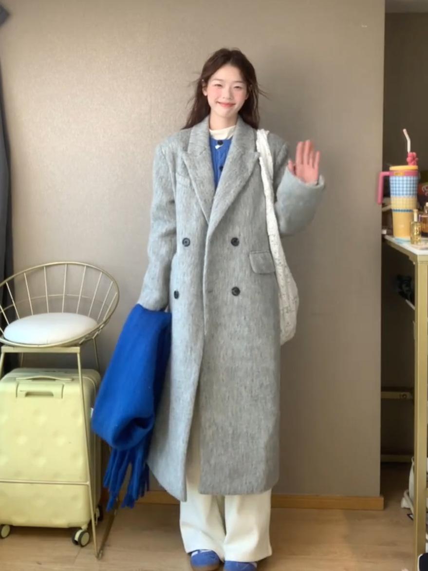 Abrigo de Lana para Mujer 2025 Otoño e Invierno Nuevo de Alta Gama Estilo Coreano Petite Estilo Hepburn Abrigo de Lana Engrosado