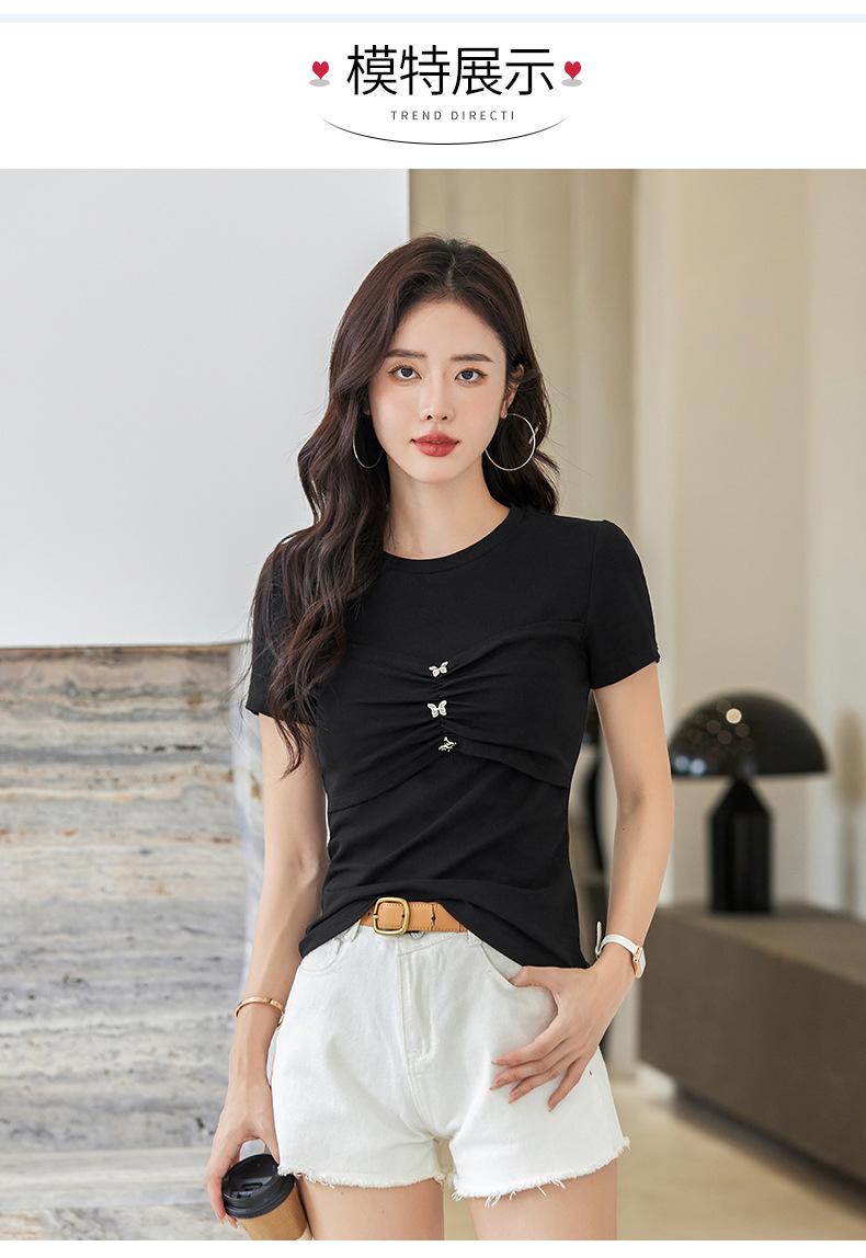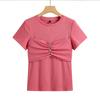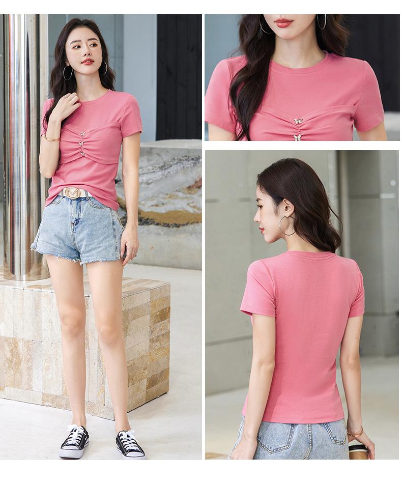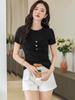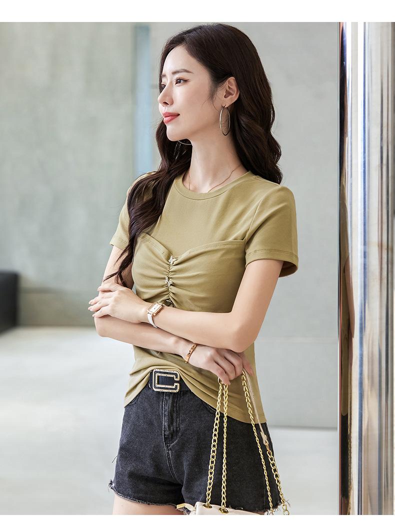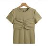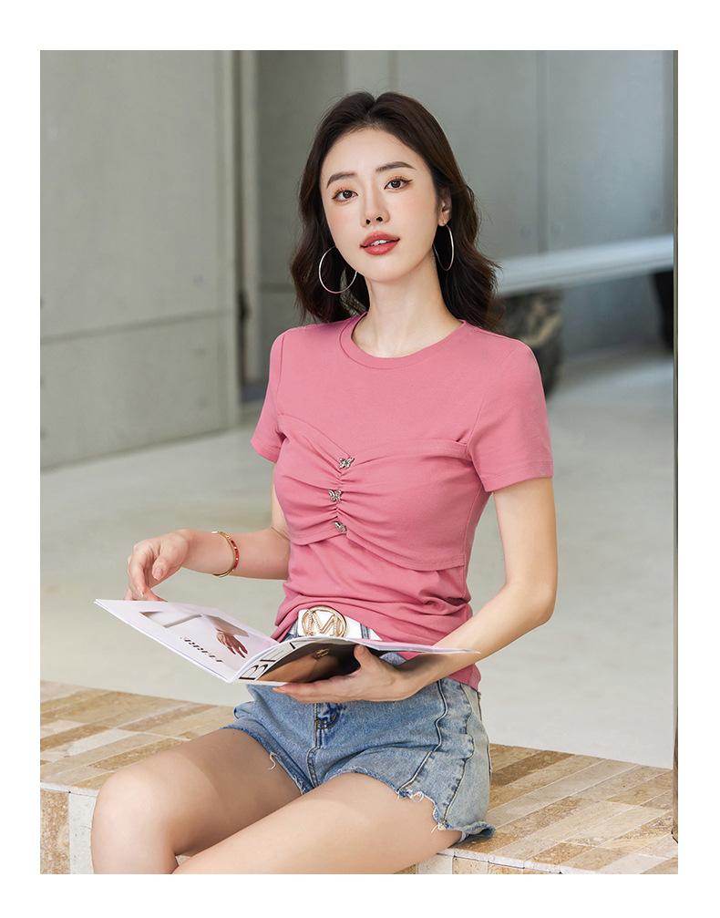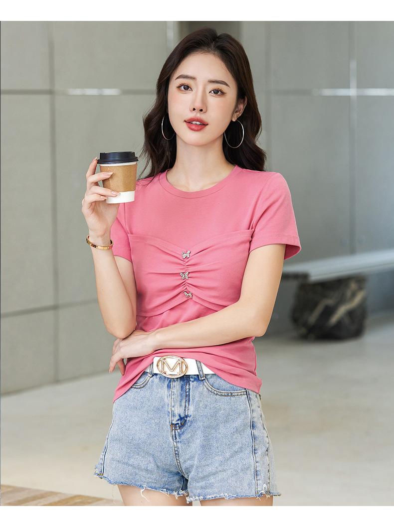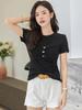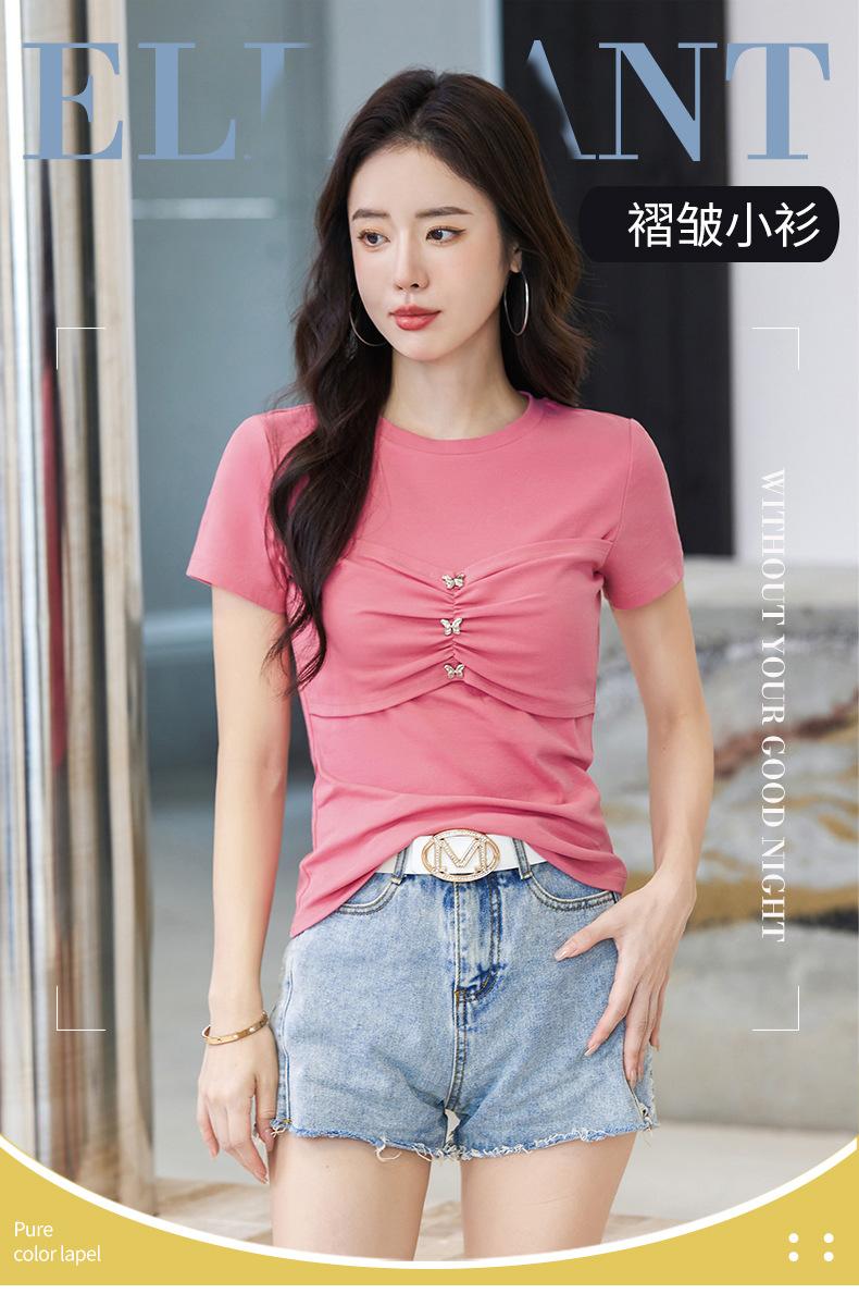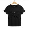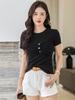Suéter Slim-fit Adelgazante de Hombros Manga Corta Camiseta de Algodón para Mujer Diseño Nicho con Costuras Top de Algodón Tridimensional para Mujer