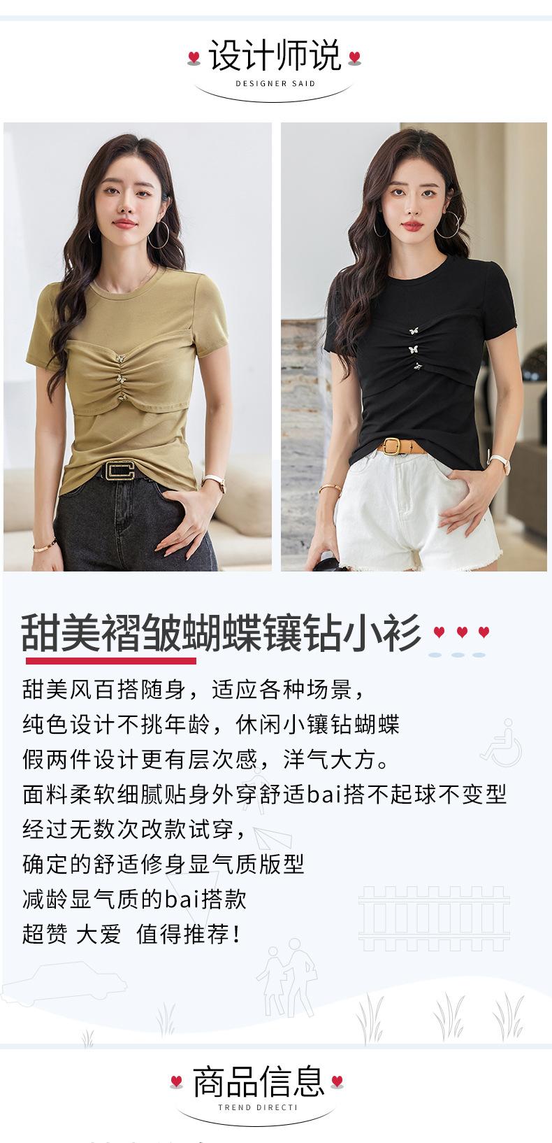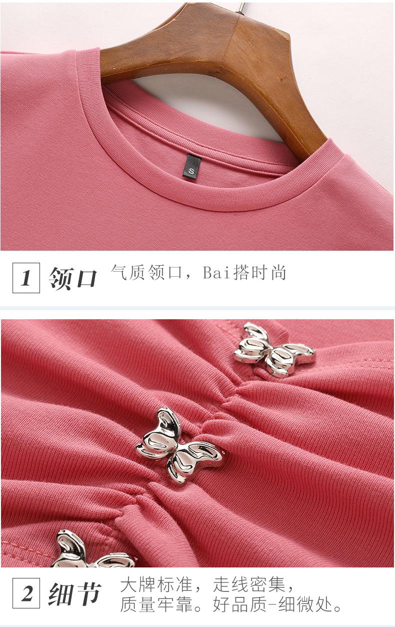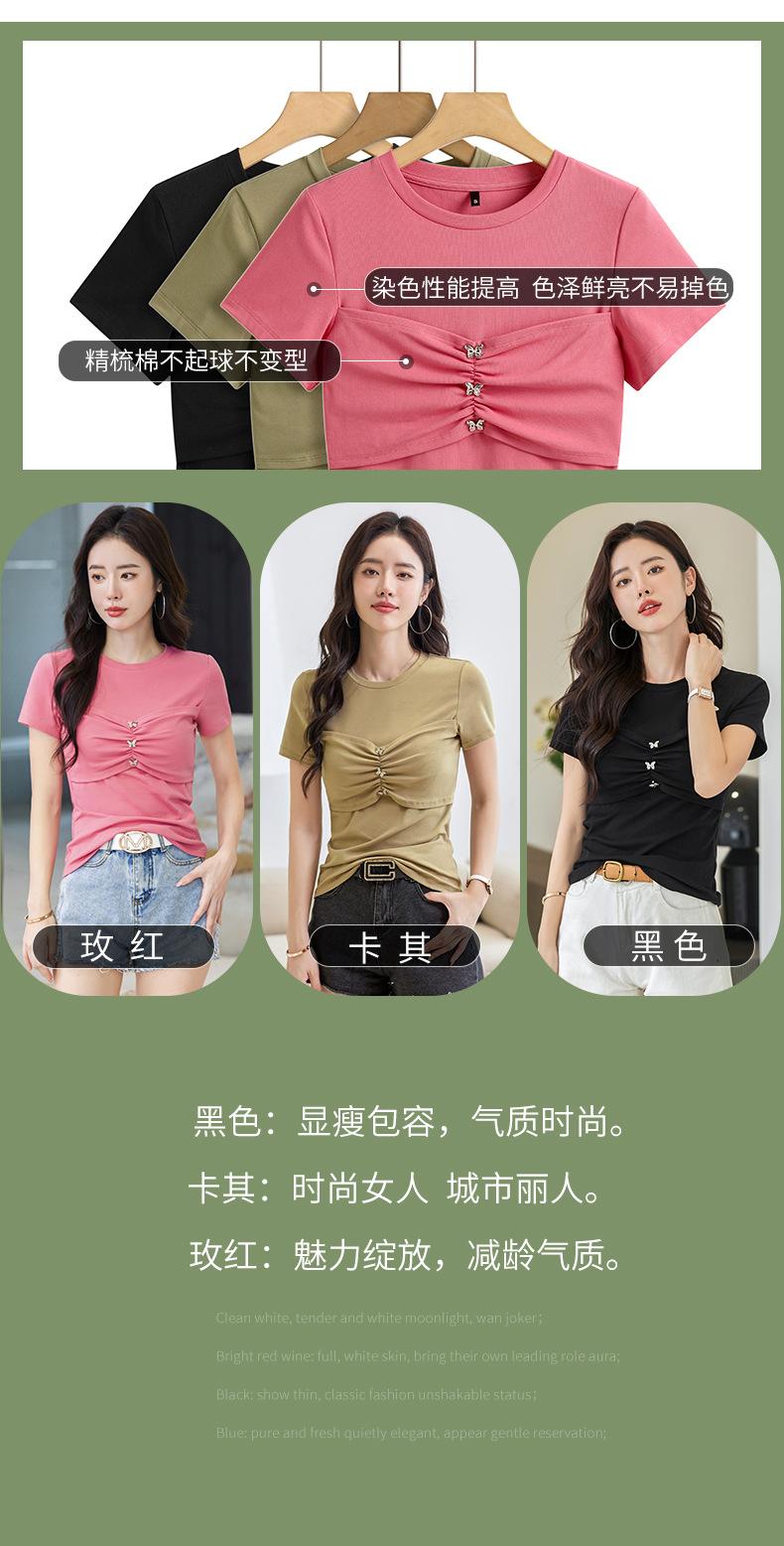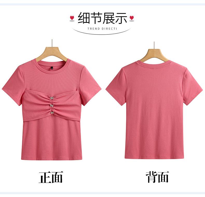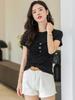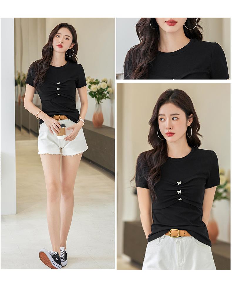 Suéter Slim-fit Adelgazante de Hombros Manga Corta Camiseta de Algodón para Mujer Diseño Nicho con Costuras Top de Algodón Tridimensional para Mujer