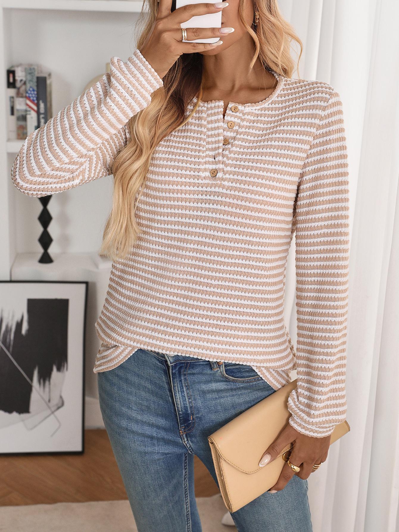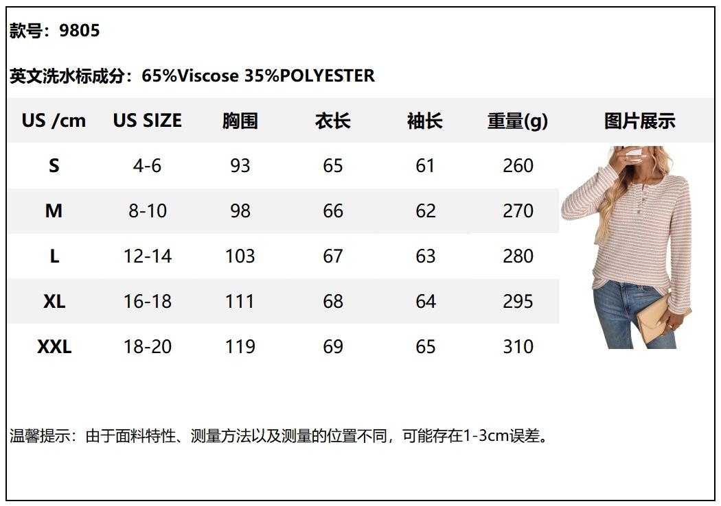 2025 Amazon Otoño e Invierno Nuevo Transfronterizo Europeo y Americano Cuadrículas de Piña Casual Botón Cuello Redondo Camiseta Tejida Manga Larga